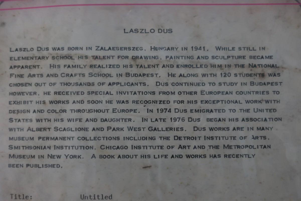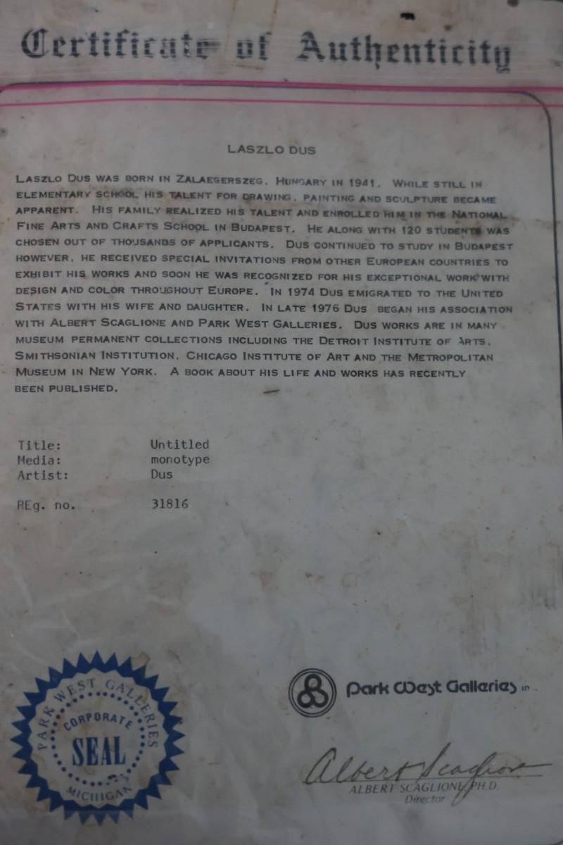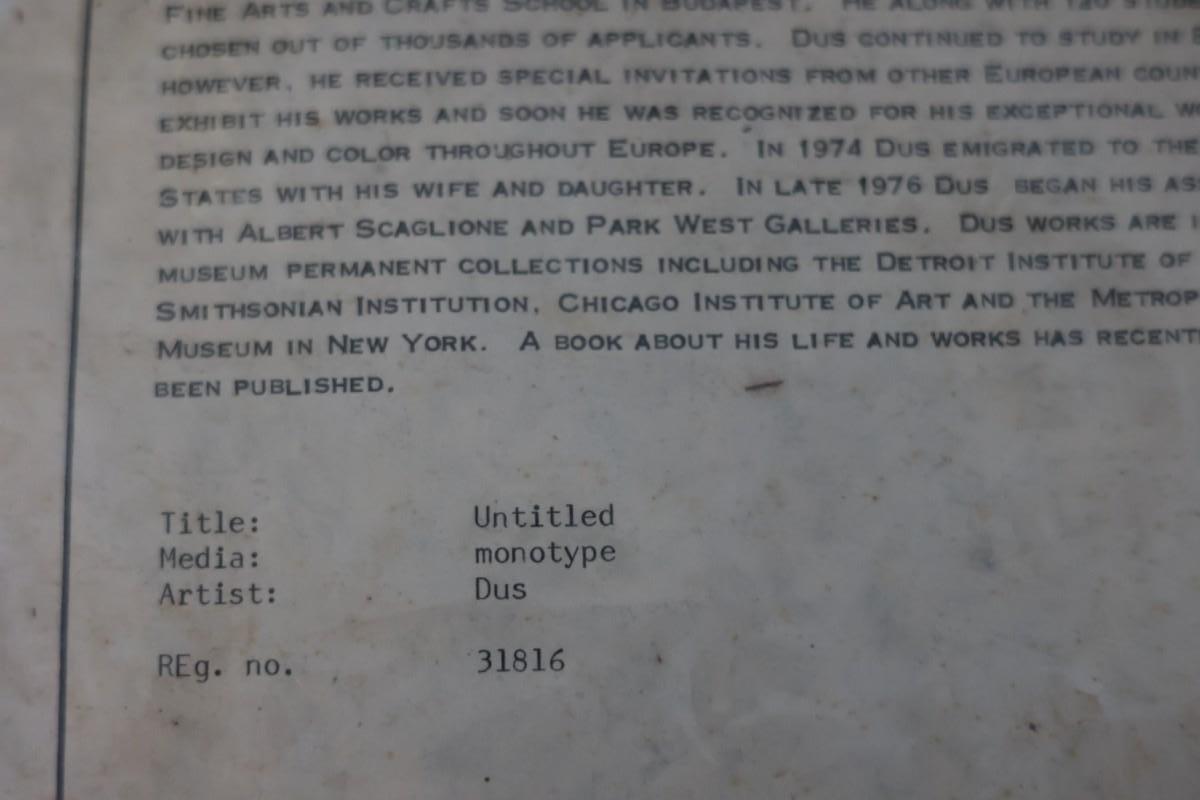 Laszlo Dus Abstract Monotype, Framed – With Certificate of Authenticity