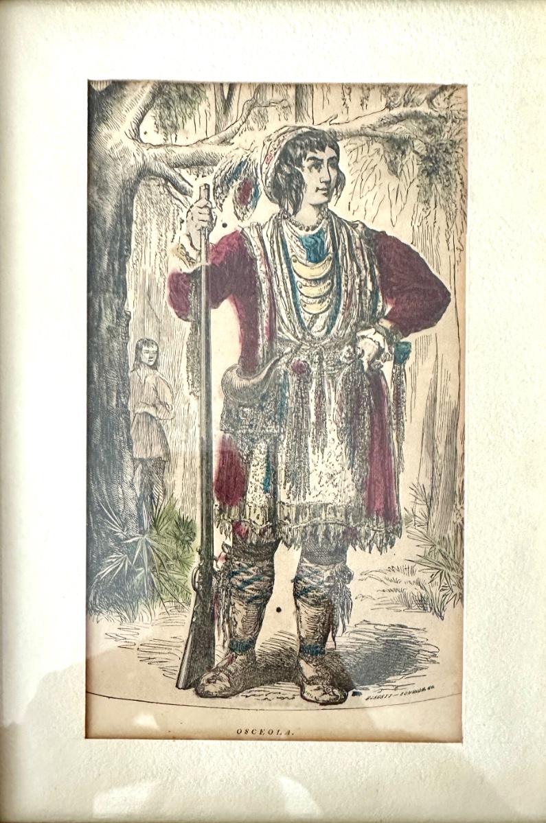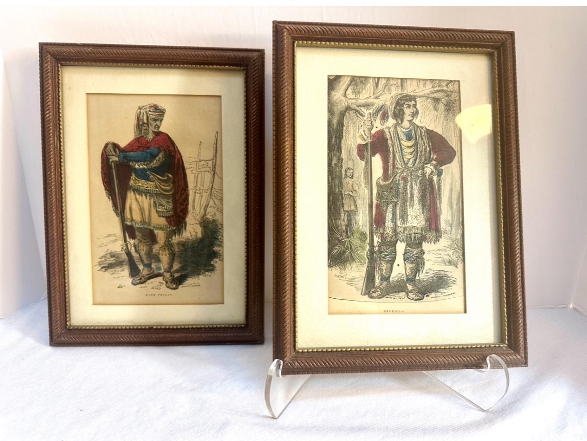 Leaders engravings. King Phillip and Osceola. Steel engraved and then hand painted. Age is late 1800's. In beautiful condition.