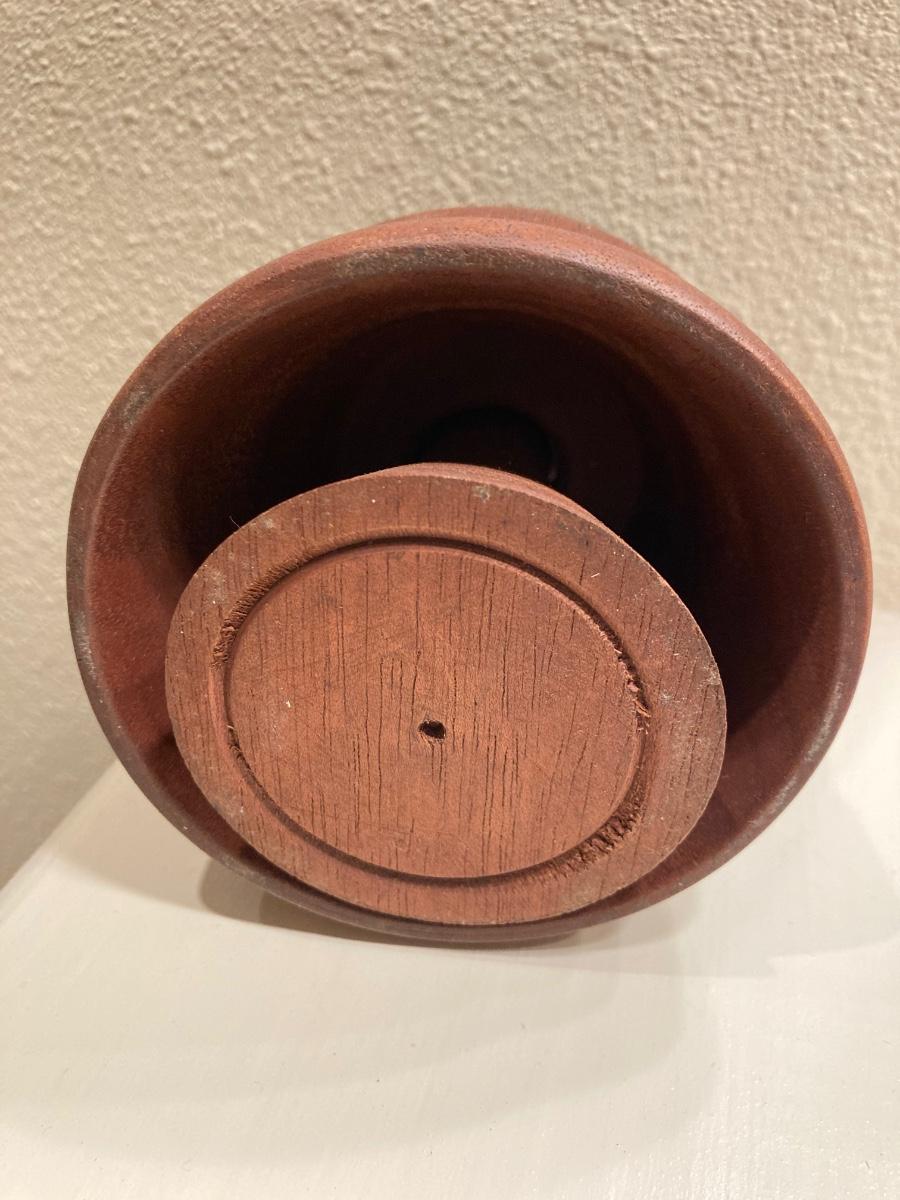 Late 1800’s-Early 1900’s Wooden Butter Mold. Stamp has circle with a dot . 3 3/4 diameter X 5 tall. Excellent shape.