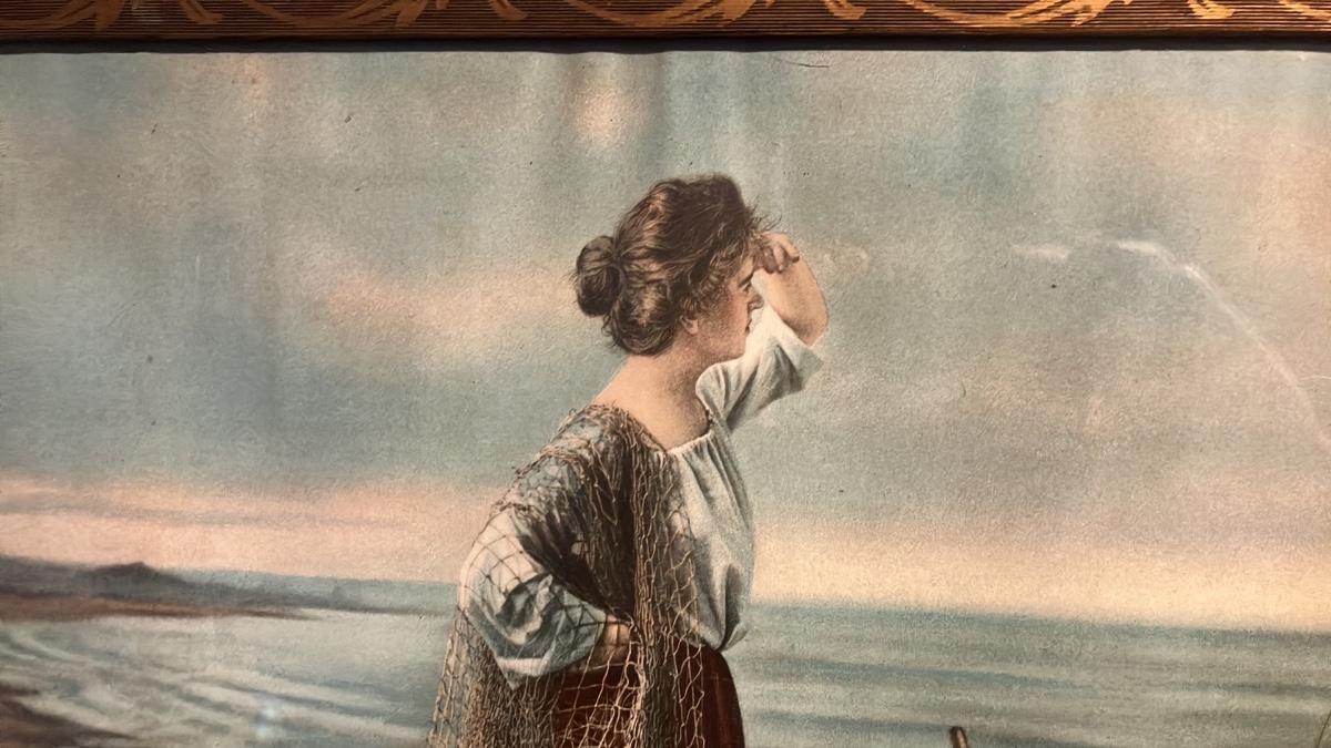 This piece evokes the romantic aesthetic of late 19th-century interiors and would make a lovely addition to traditional, cottagecore, or eclectic decor. Offered in as-found condition; ready to hang.