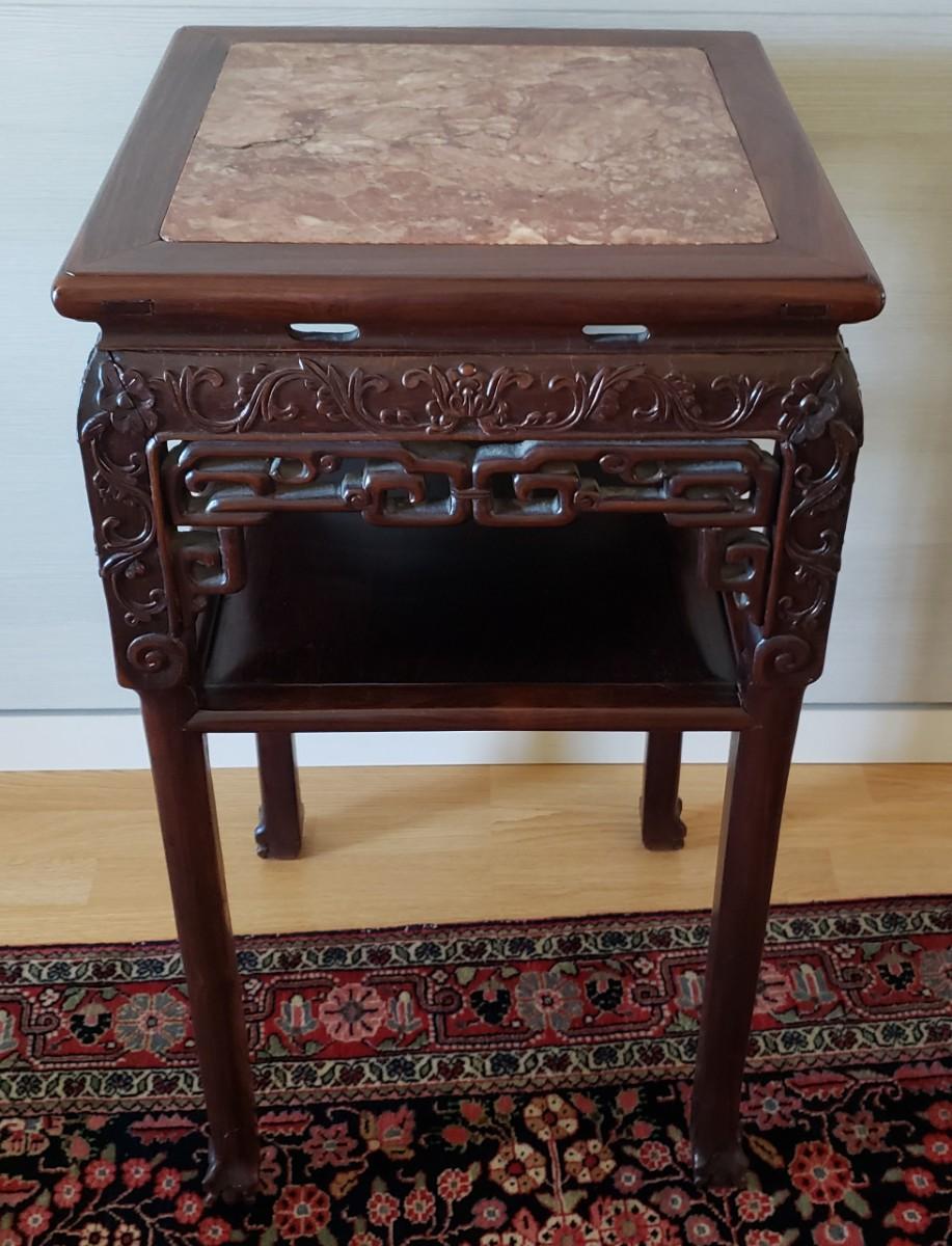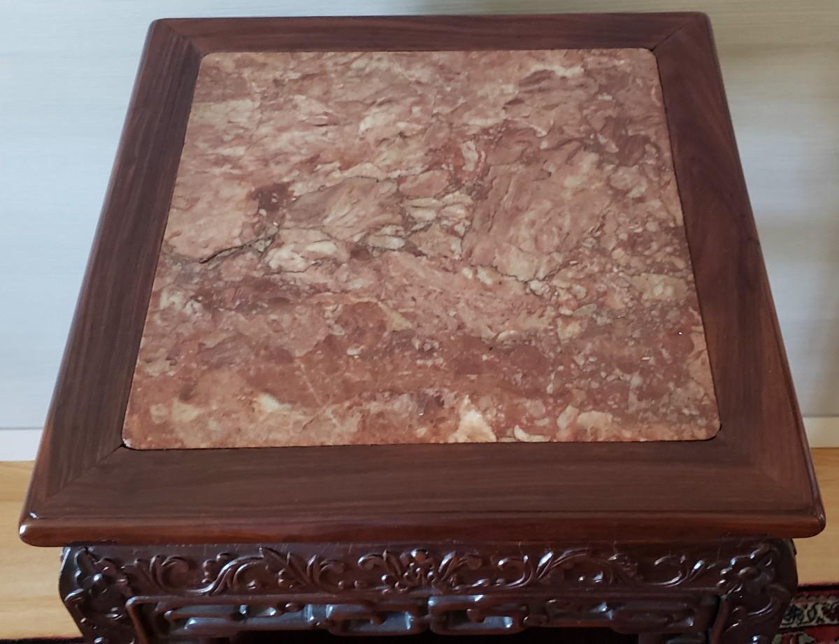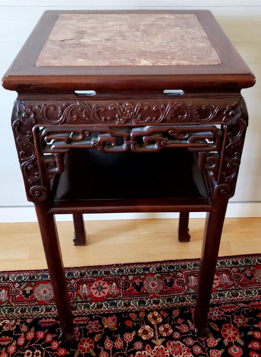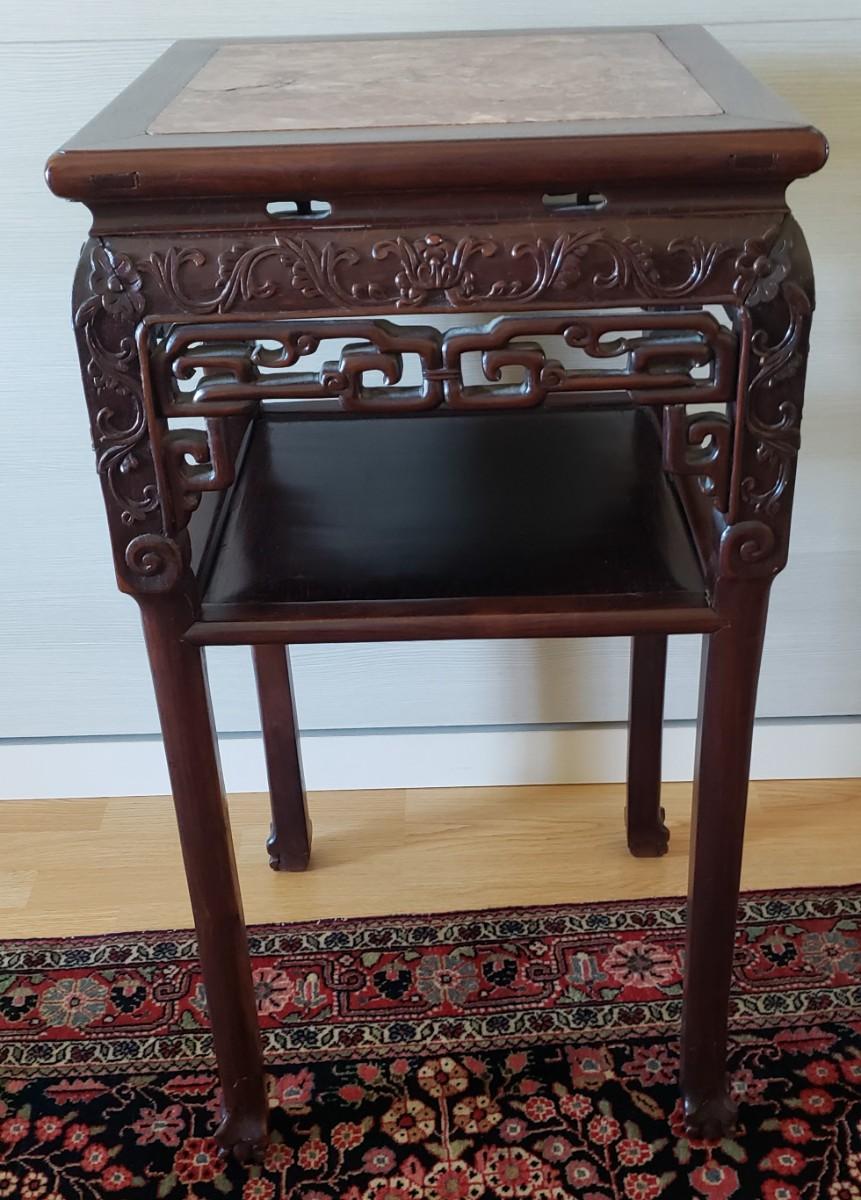 Late 19th Century Tall Chinese Carved Rosewood Stand with Marble Top
