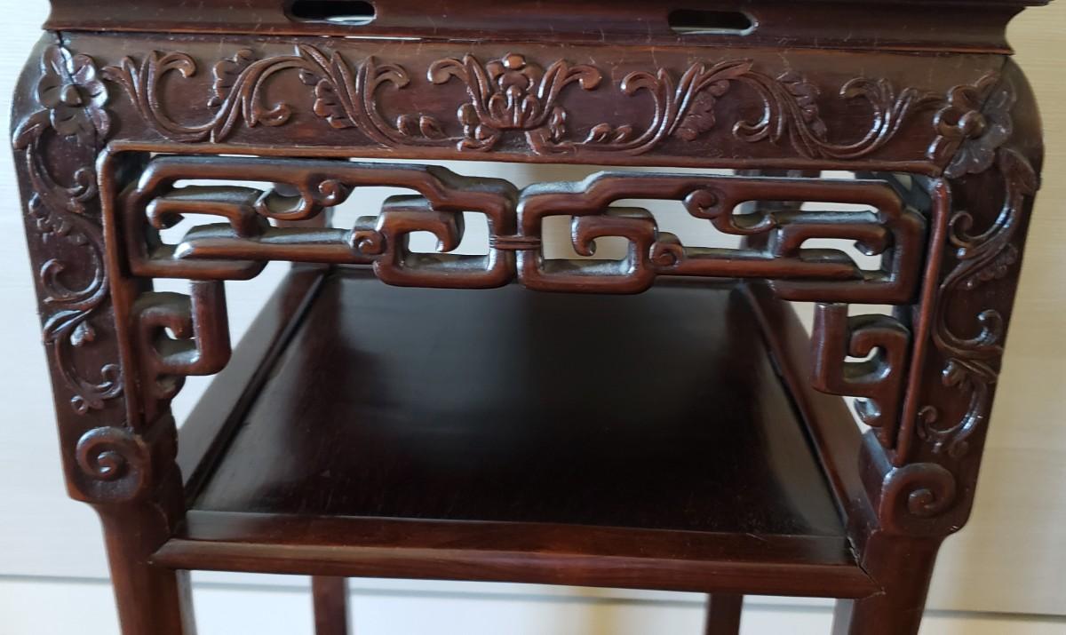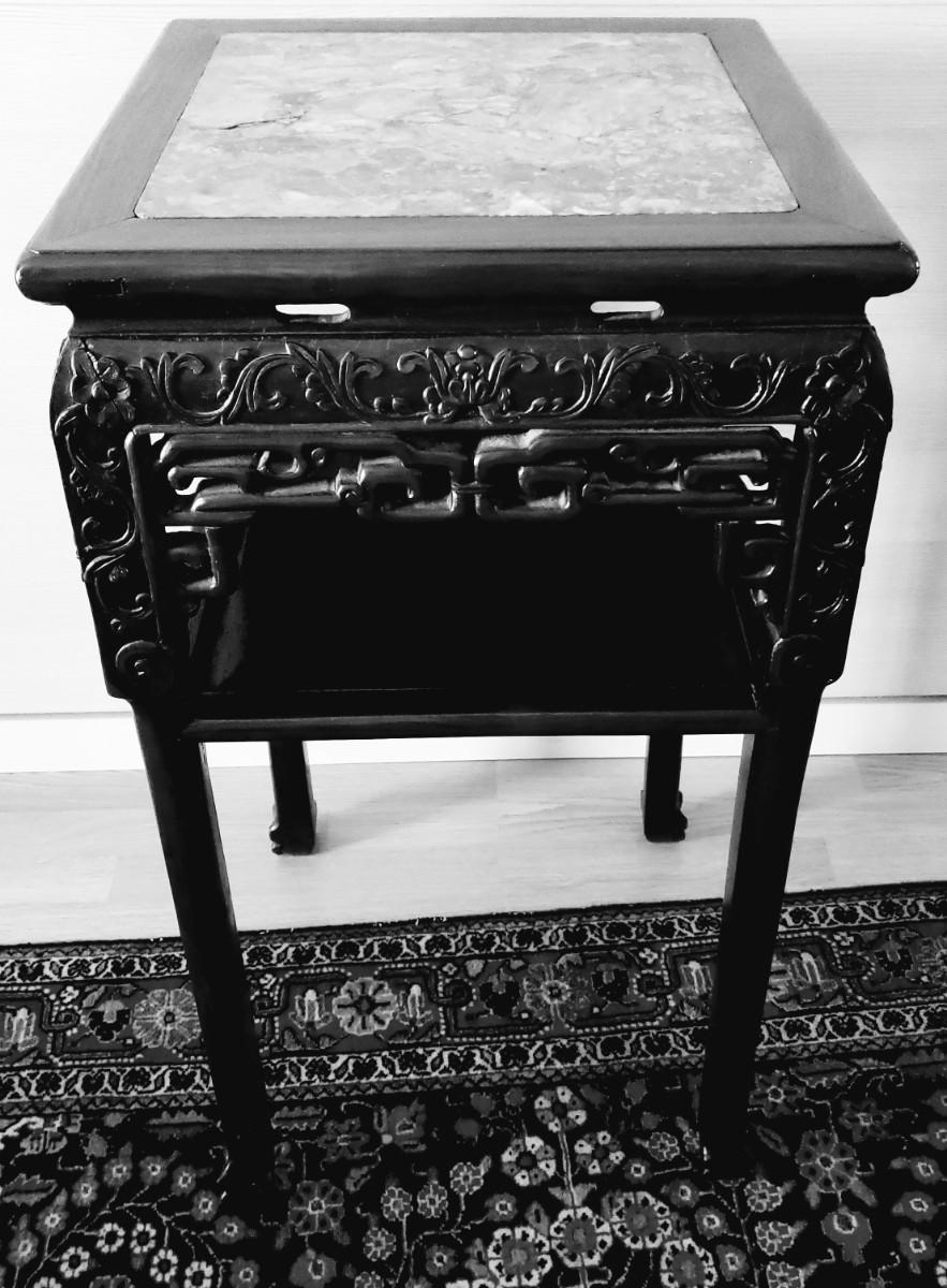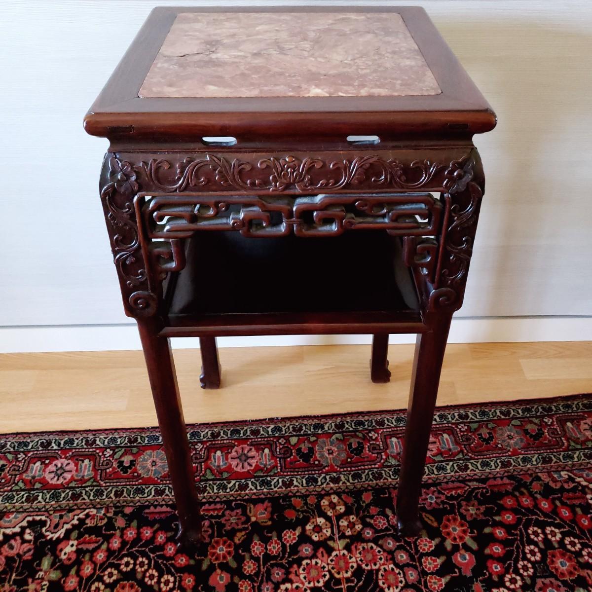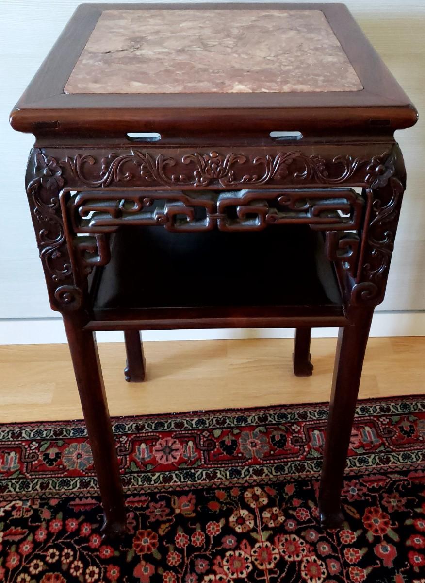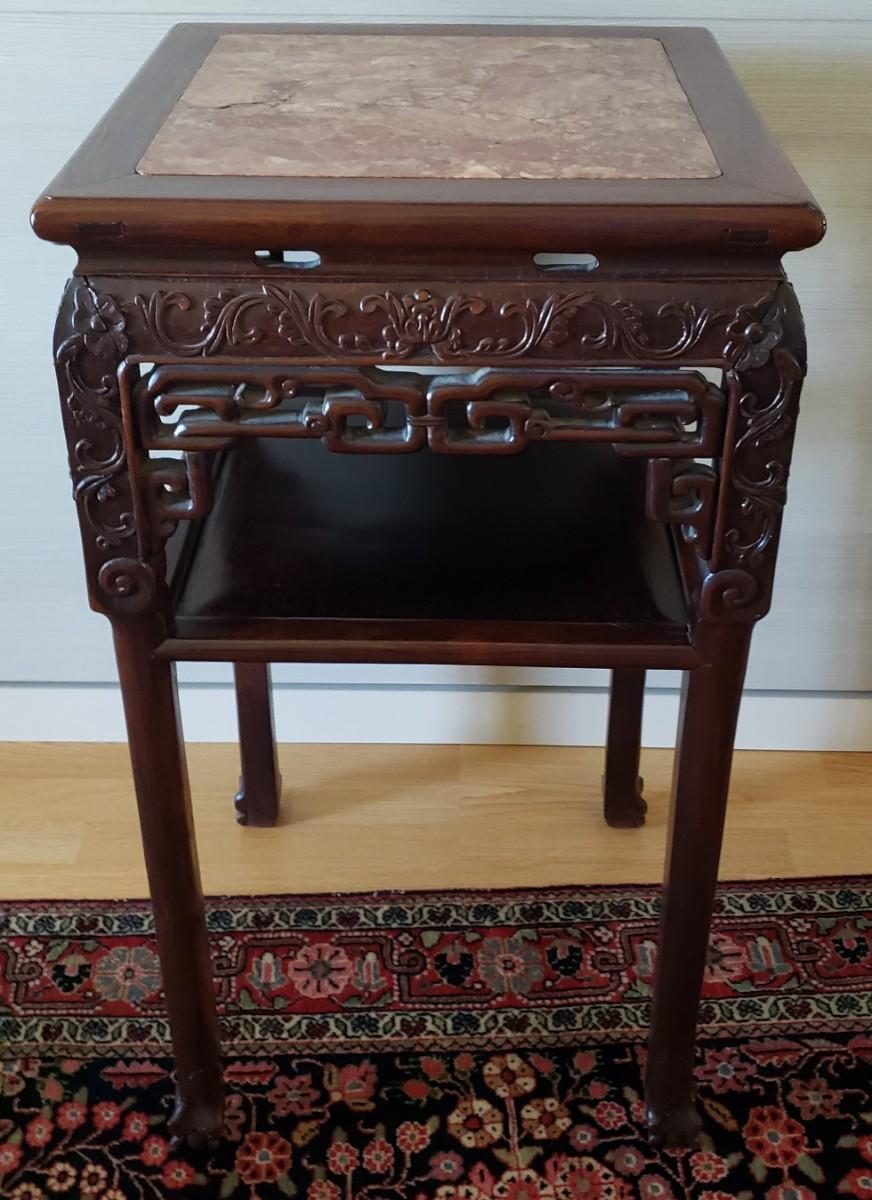 Late 19th Century Tall Chinese Carved Rosewood Stand with Marble Top