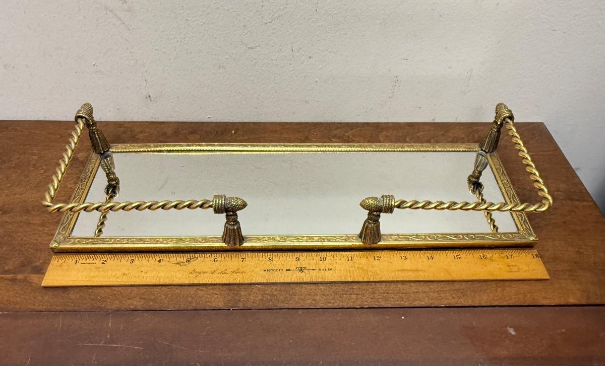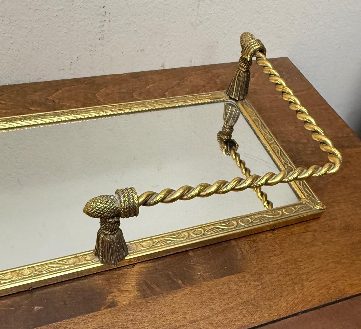 Late 20th Century Hollywood Regency Stylebuilt Rope Tassel Glass Vanity Tray