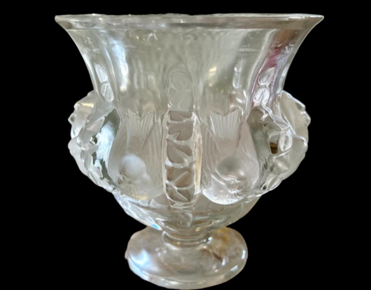 Beautiful Small Lalique Urn with frosted bird detailing. Good condition, some scratching on inner rim and underside of base, refer tp pictures. Vase is usable as is. Scratches could possibly be buffed out. Lalique is high end and considered fine crystal, price reflects imperfections.