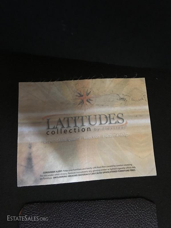 Chair is in excellent lightly used condition no wear or damage. One of 2 Available, Latitudes made by Flexsteel. 100% leather upholstery. Latitudes Brown Leather Chair & Ottoman Mint Condition 1of2