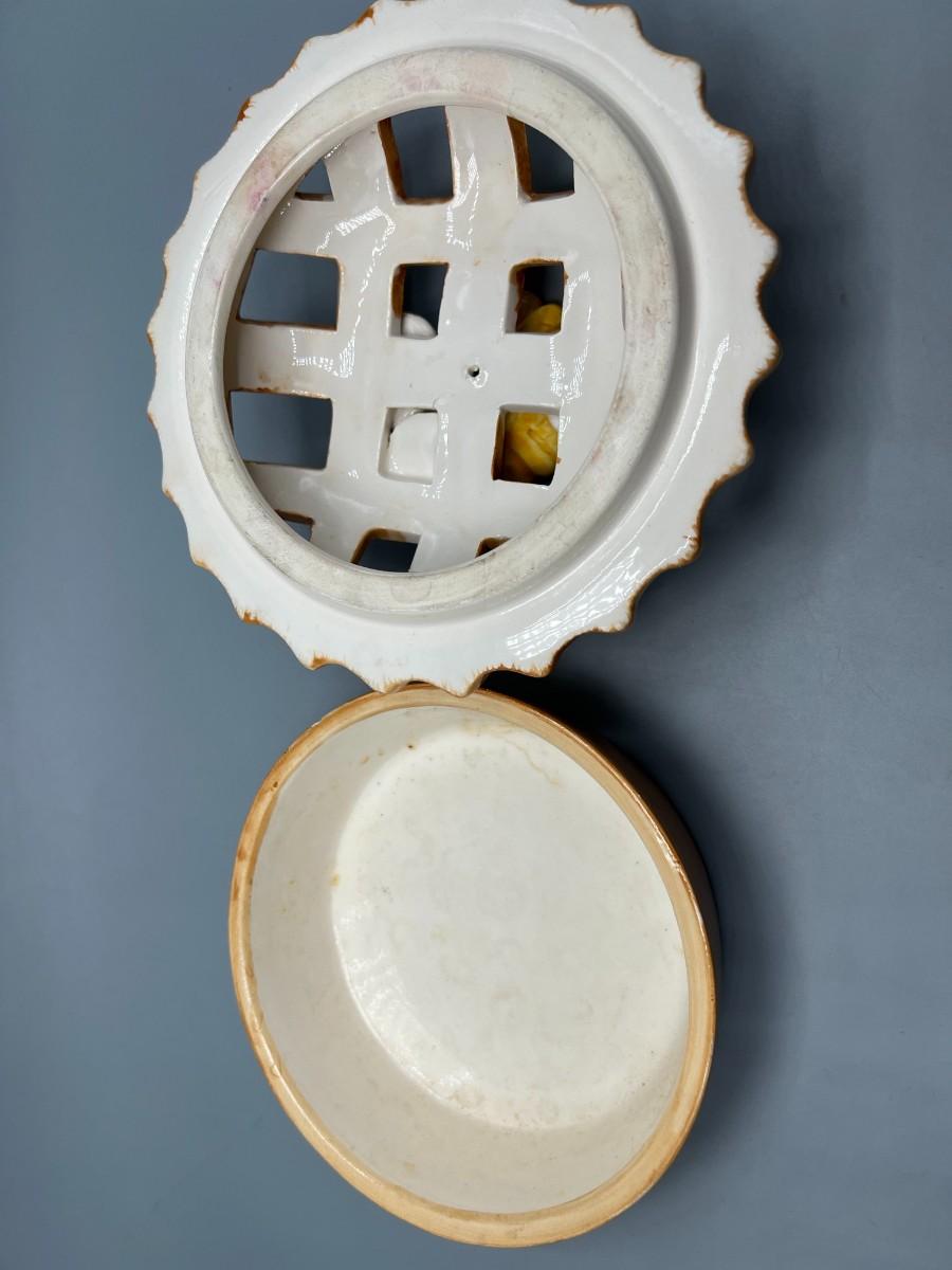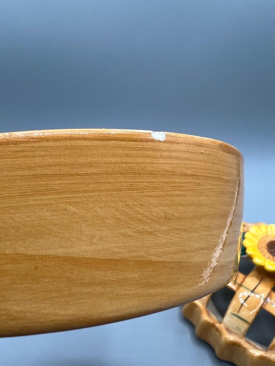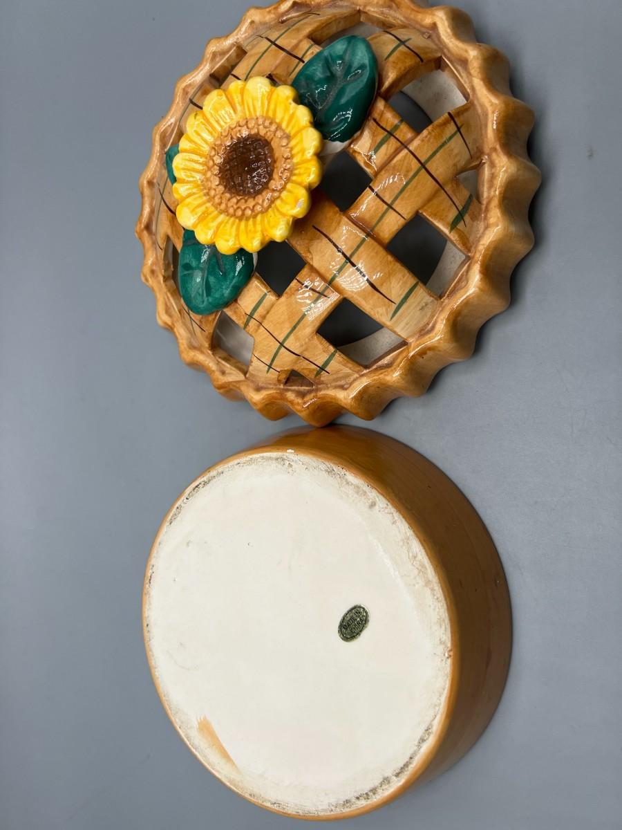 Lattice Pie Ceramic Dish with Sunflower on Top. About 5" diameter. Great for display or as a trinket dish. Small chip along the edge.