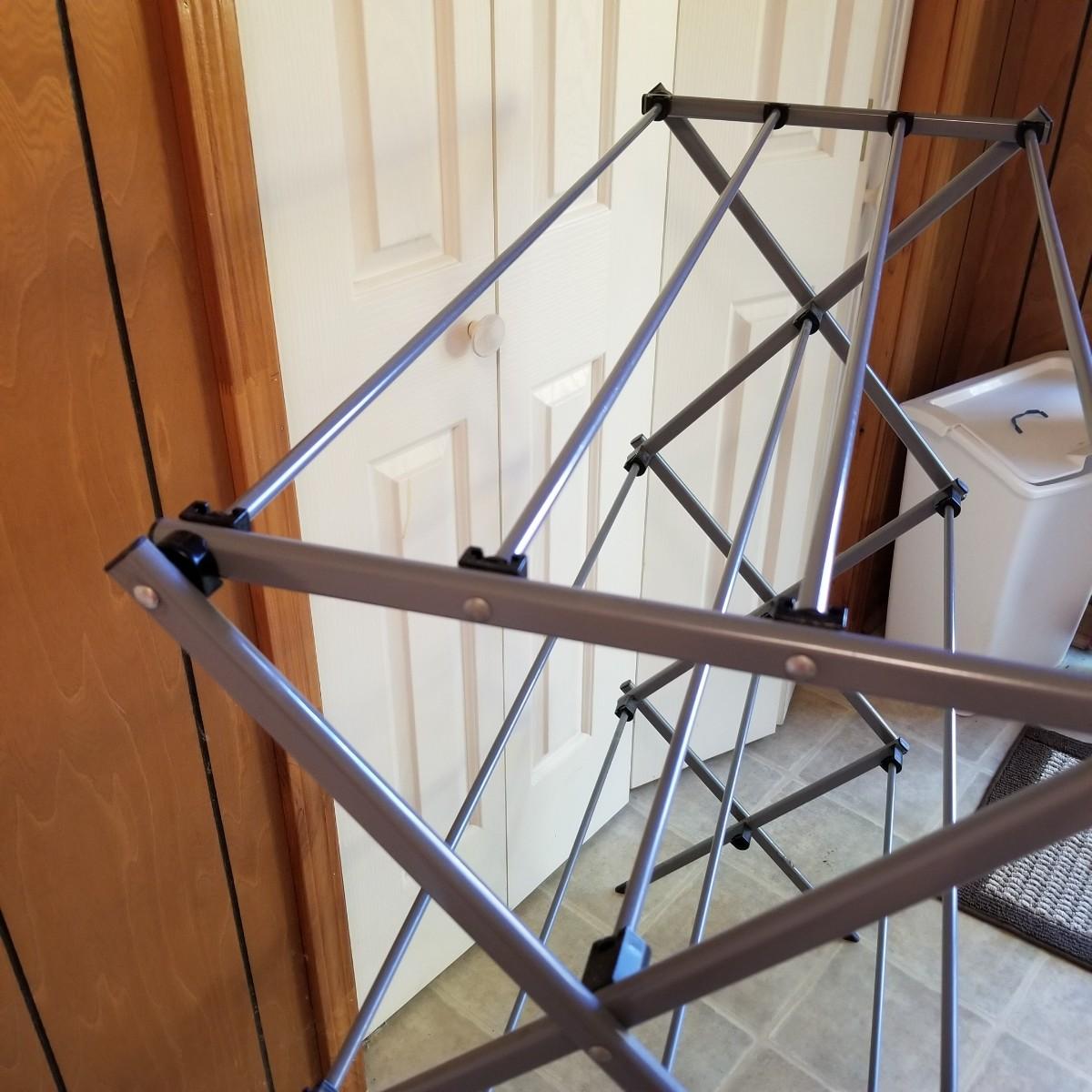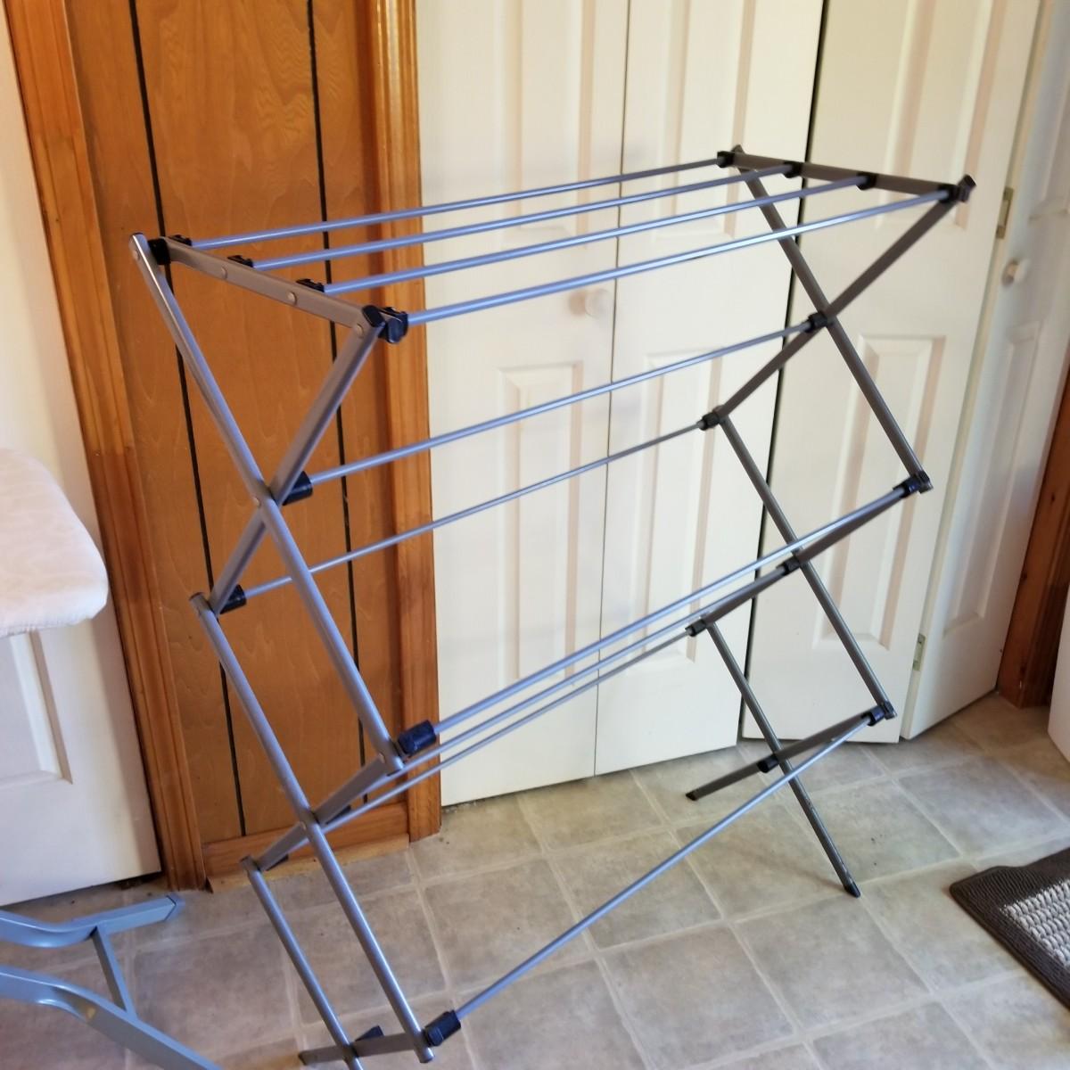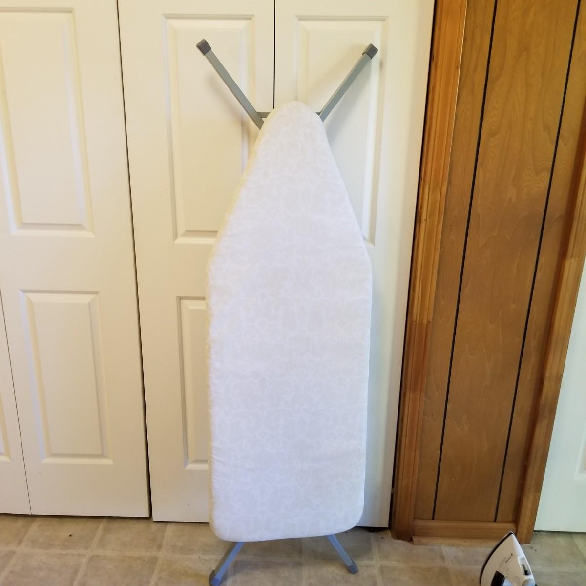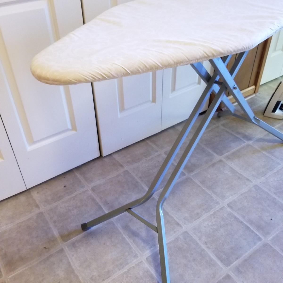 One ironing board, iron, and drying rack. Black & Decker 640S steam iron, worked when tested. One adjustable metal drying rack 35" x 15" x 45". Drying rack folds up for easy storage. And one ironing board with cover, 48" x 28". See photos for details. Local pickup only.