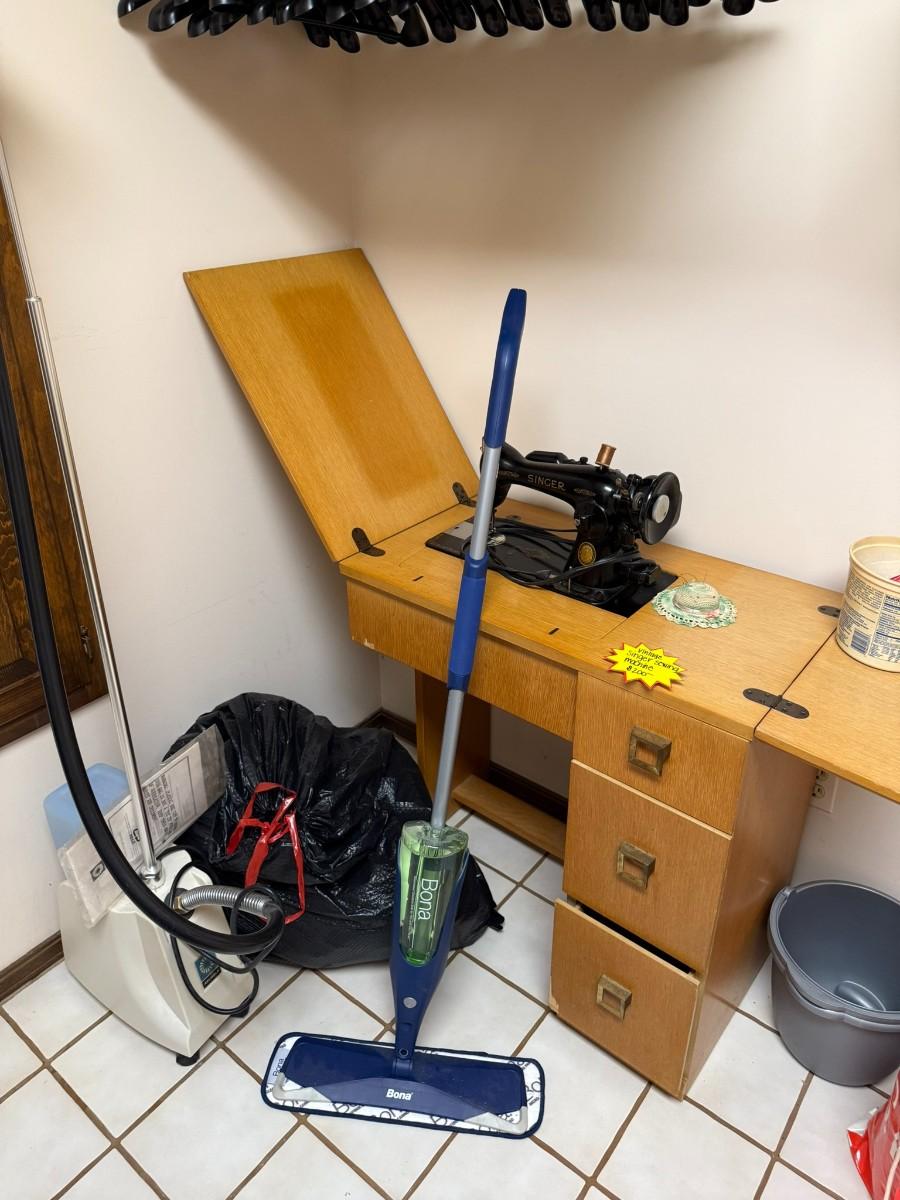 Singer Sewing Machine from 1952 - sewing cabinet has various notions