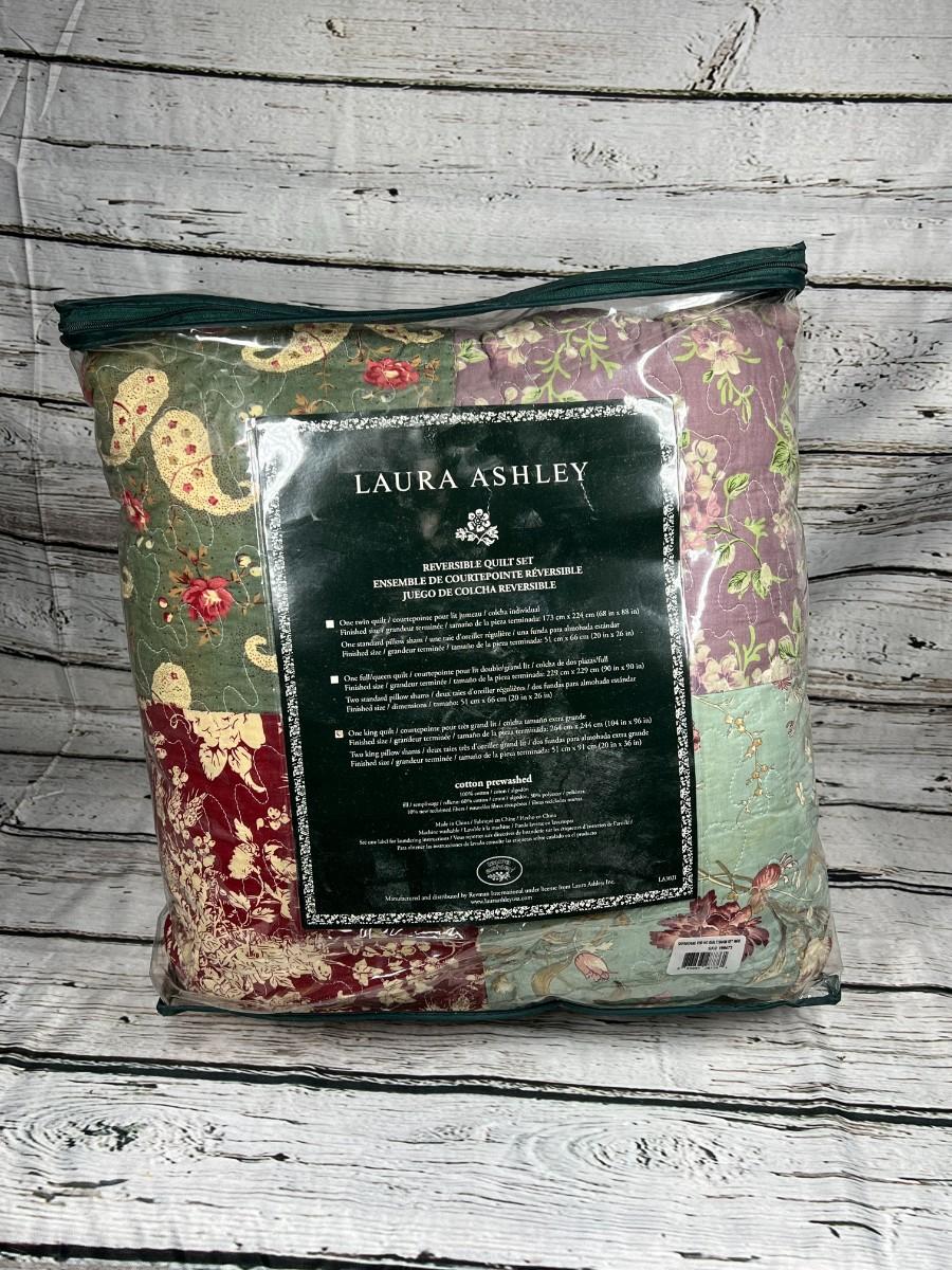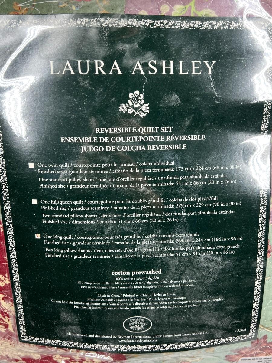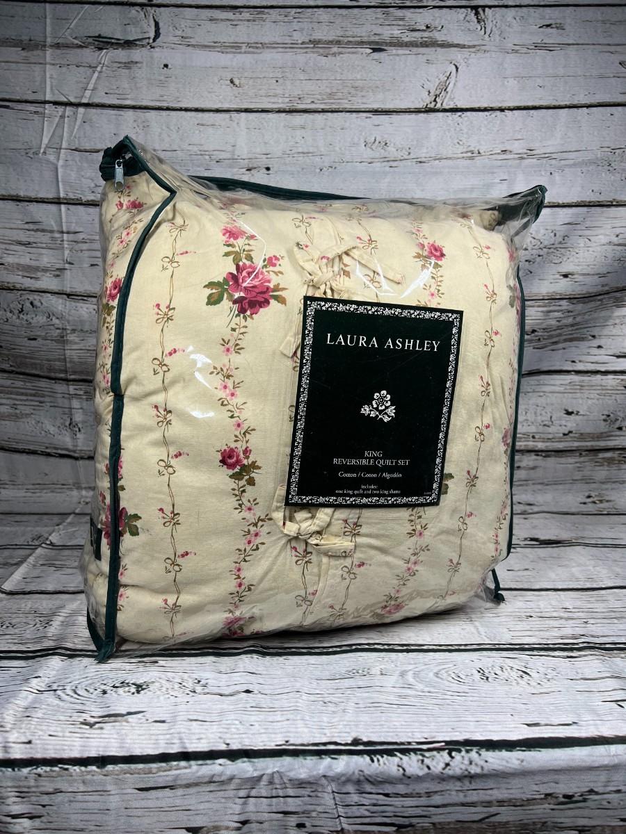 Laura Ashley Reversible King Sized Quilt Set, there is no significant damage to the quilt set and is in good useable condition. Check pictures for more details and for sizing.