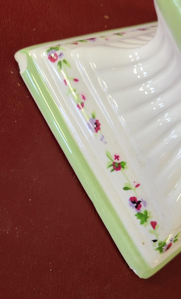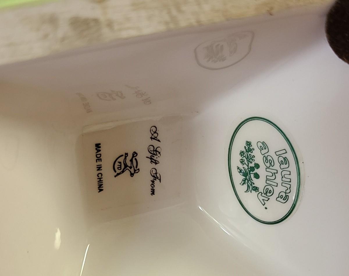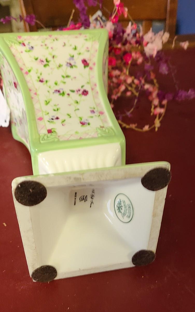 Laura Ashley Vase with Silk Flowers  9 inches tall  (some cracks)