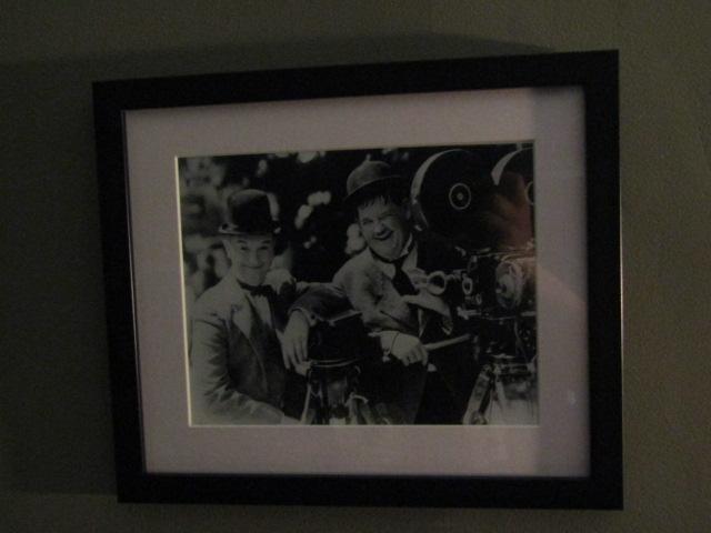Laurel and Hardy Behind the Scenes Black and White Framed Print 21"x27"