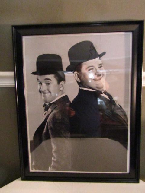 Laurel and Hardy Black and White Framed Print 21"x27"