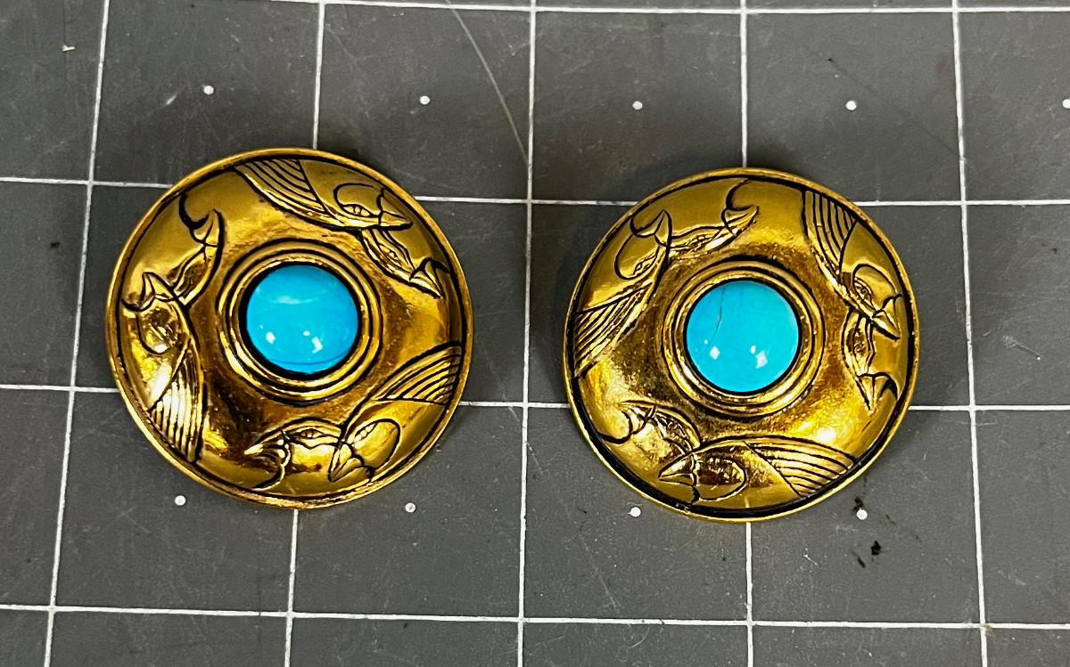 Laurel Burch Clip on Earing of Bird and Turquoise Gold Tone