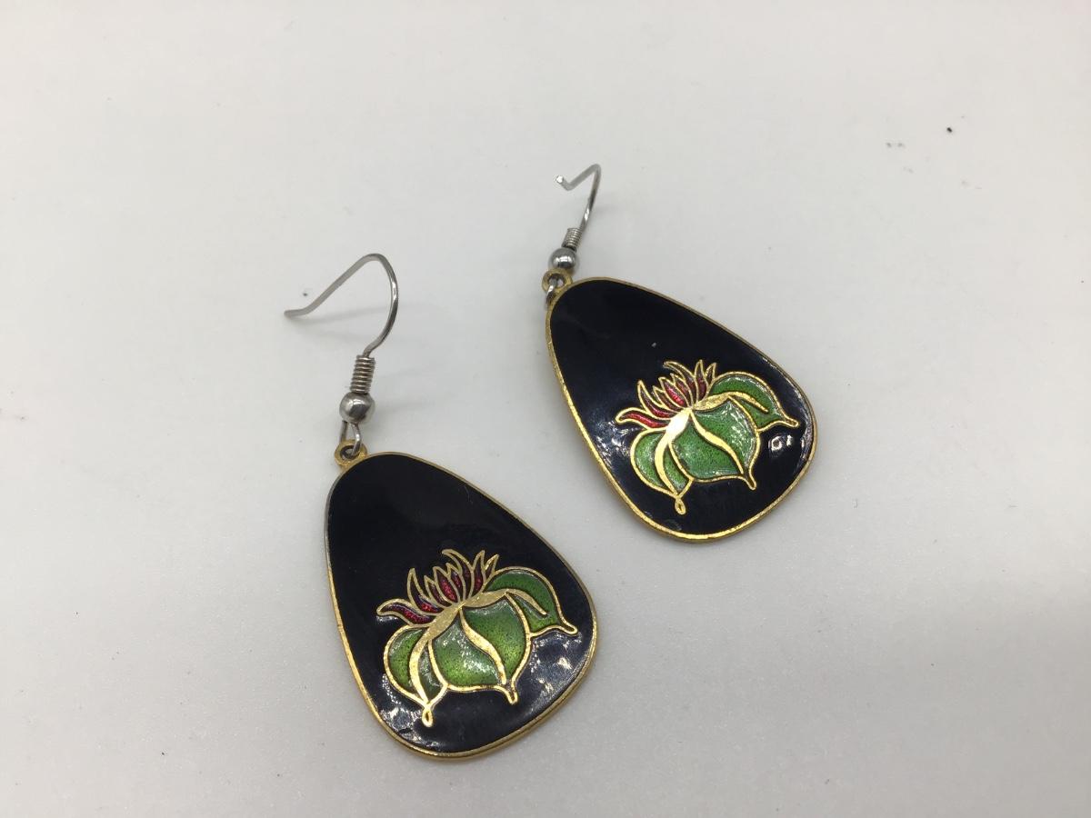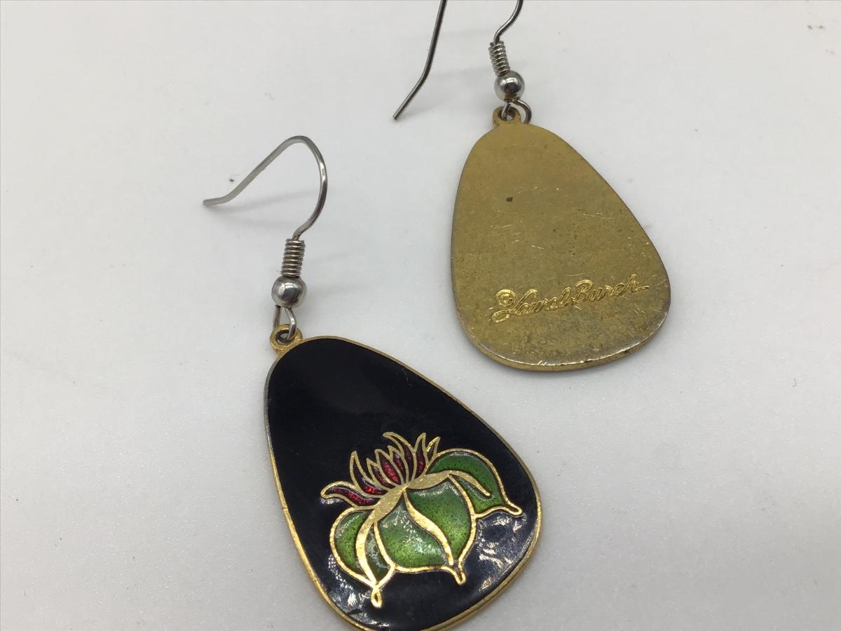 Laurel Burch Floral Earrings Enamel, Gold Tone. Signed