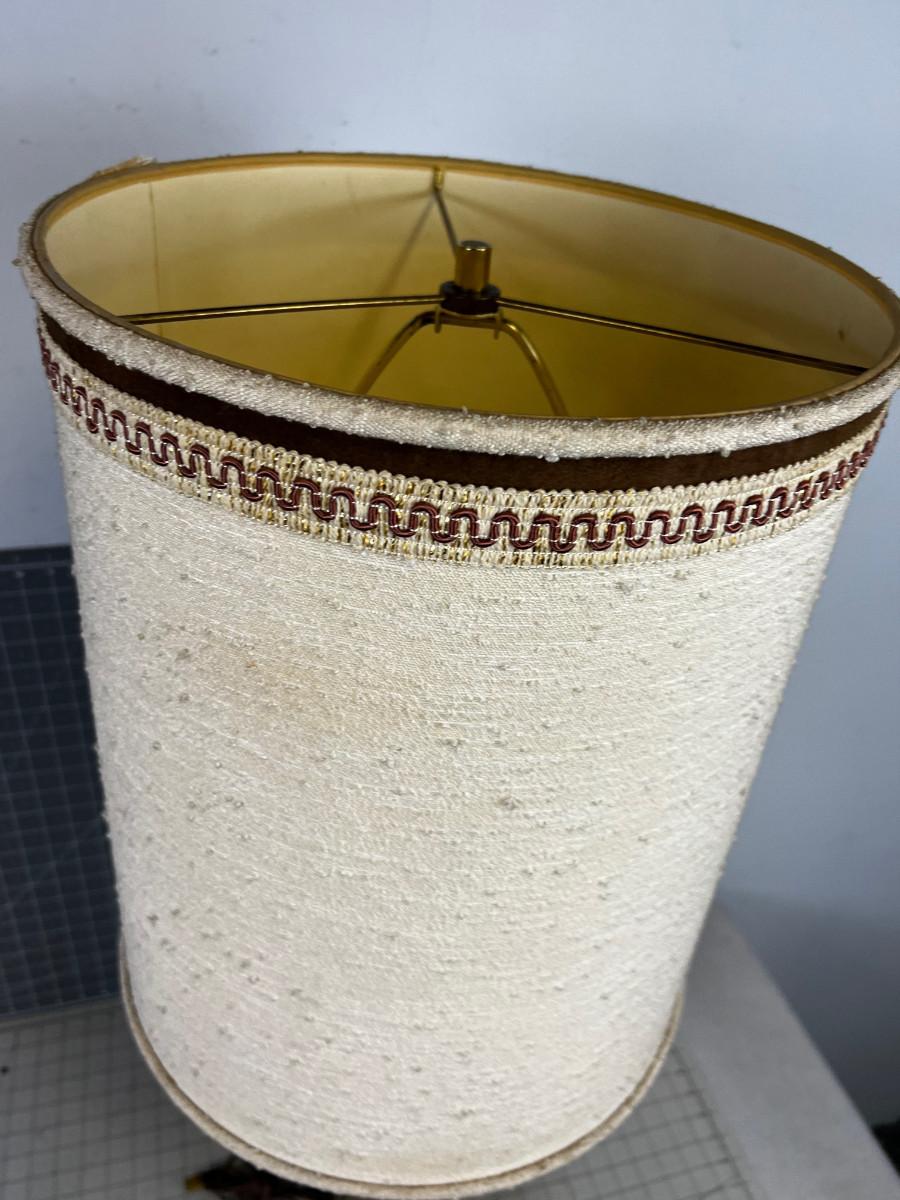 Used. Works! The Shade may need updated as it has some damage. 36" Tall