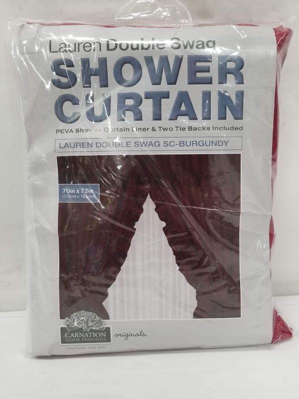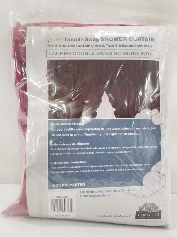 Lauren Double Swag Shower Curtains - 70"x 72", Burgundy - New