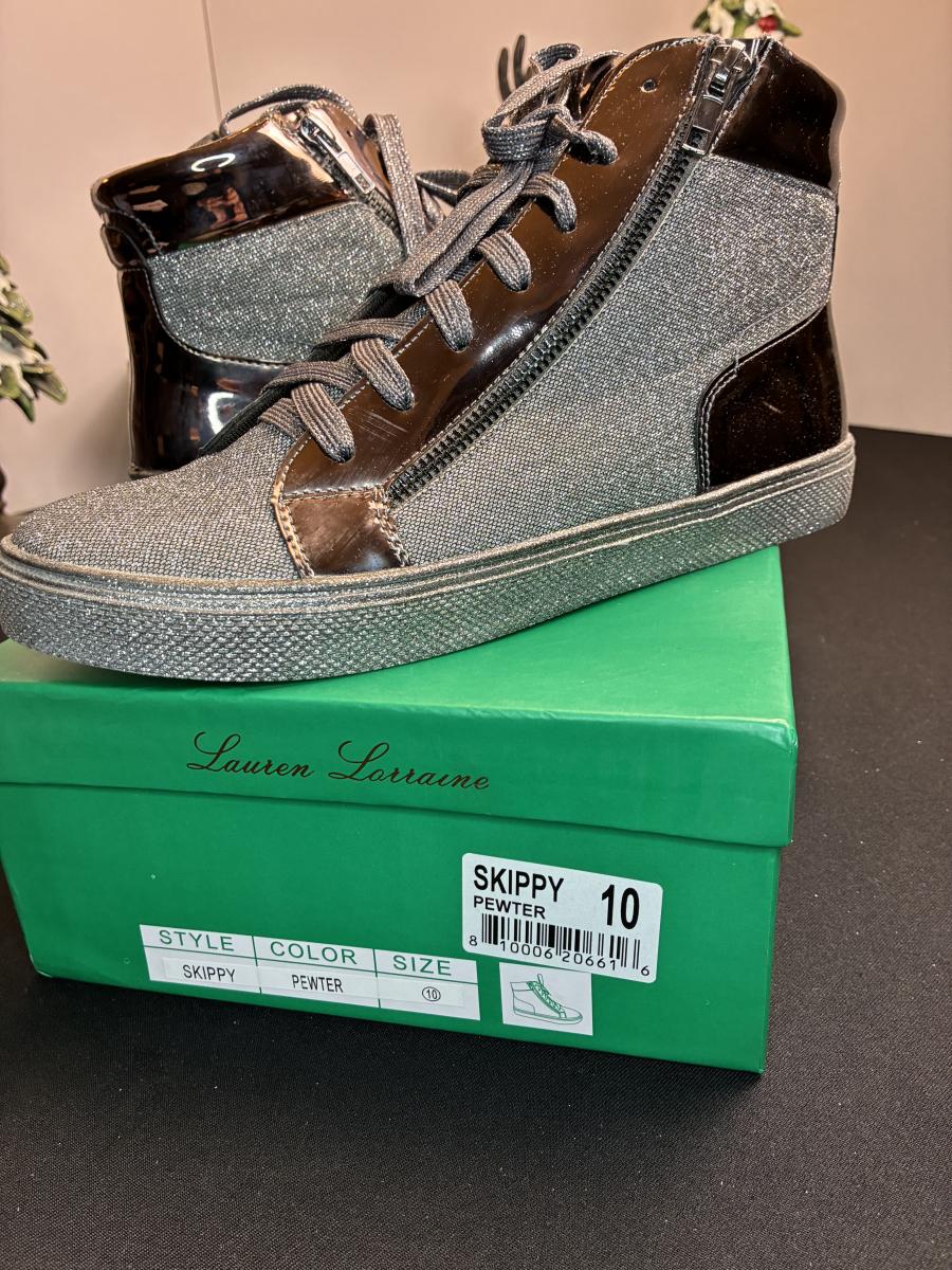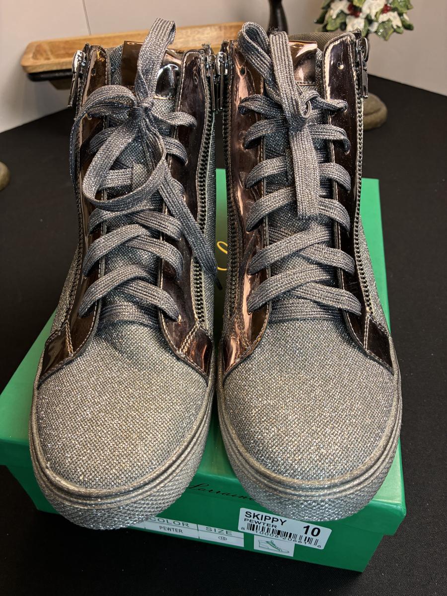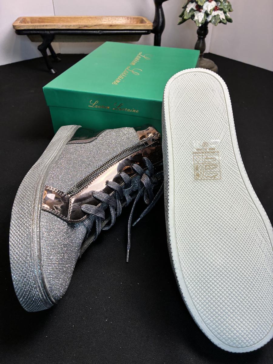 Lauren Lorraine Pewter Glitter Tennis Shoe 10