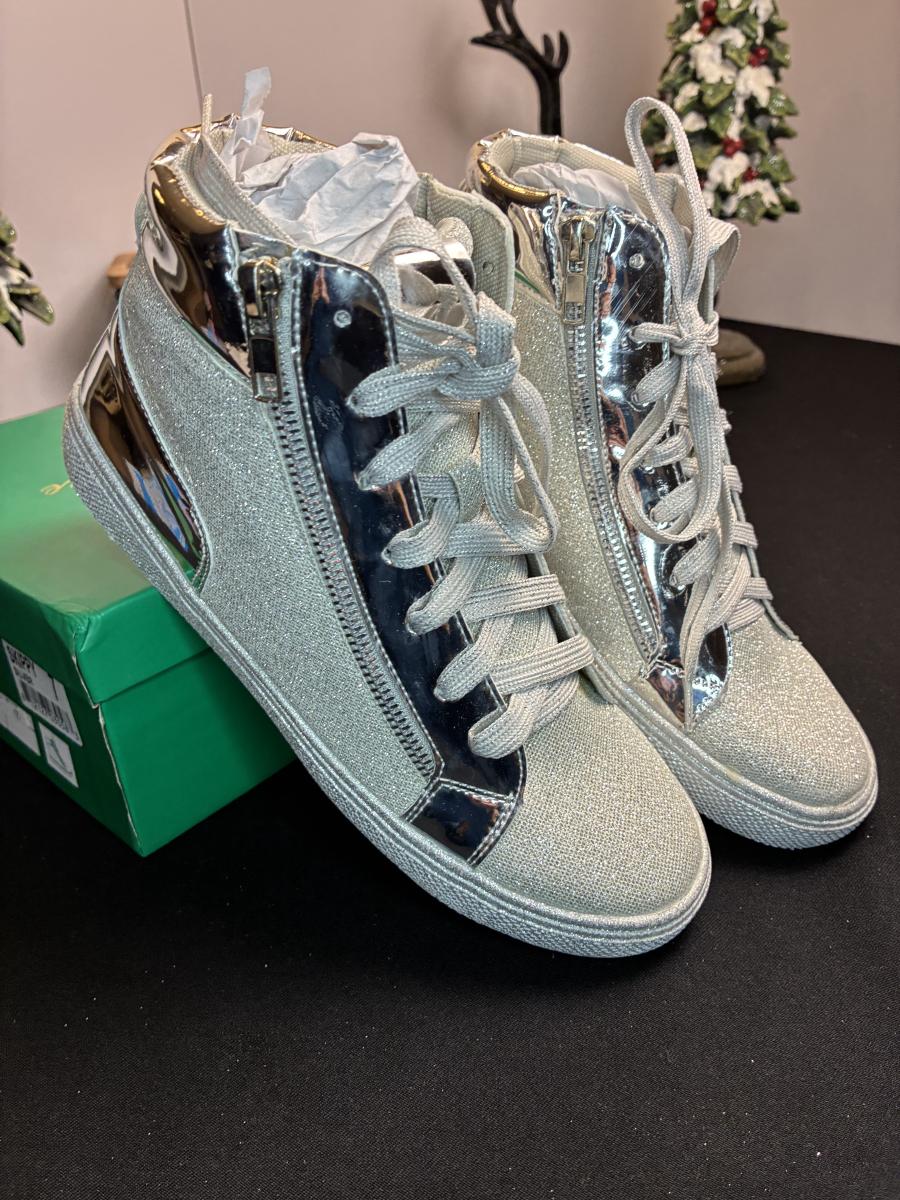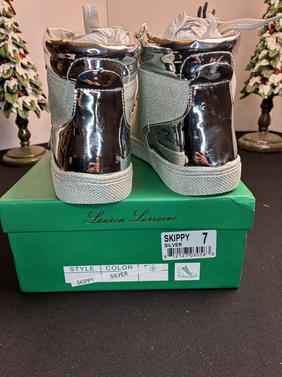 Lauren Lorraine Silver Glitter Tennis Shoes 7