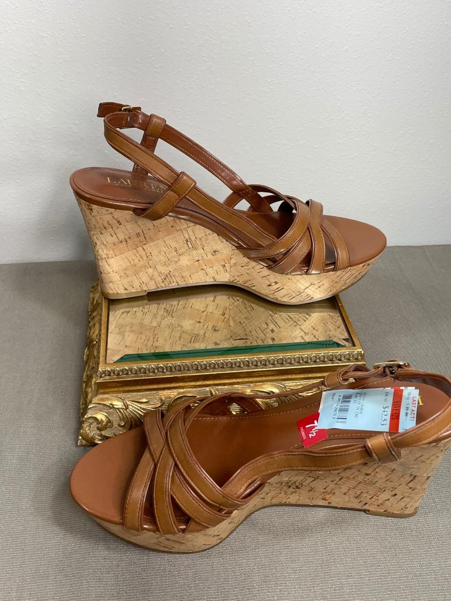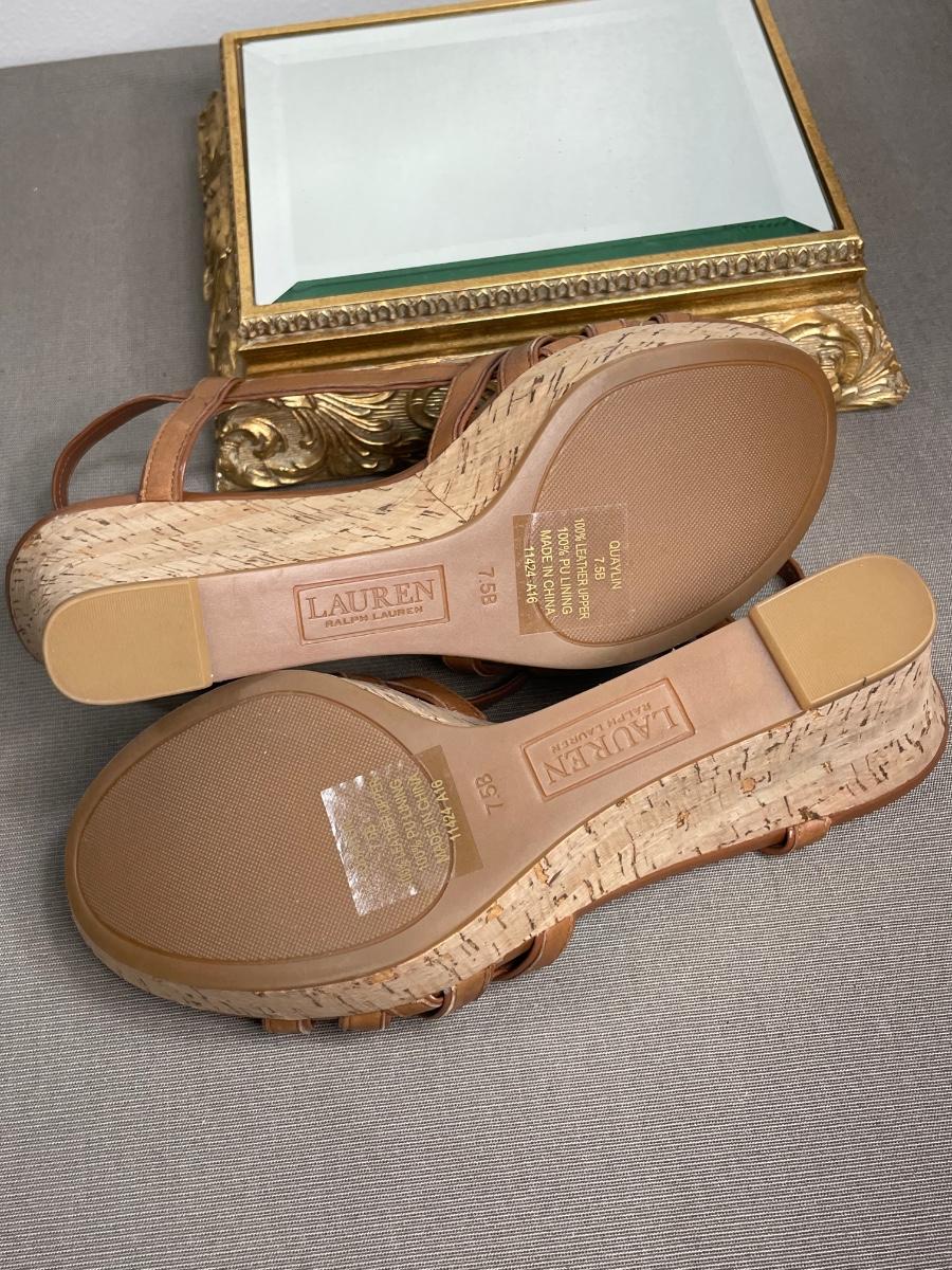 Lauren Ralph Lauren Platform Cork Leather Sandals NEW! 7.5M