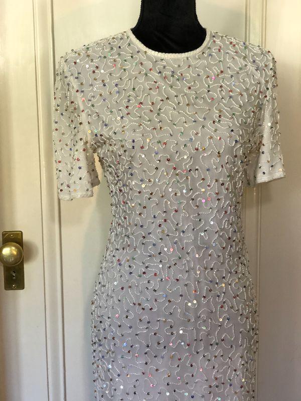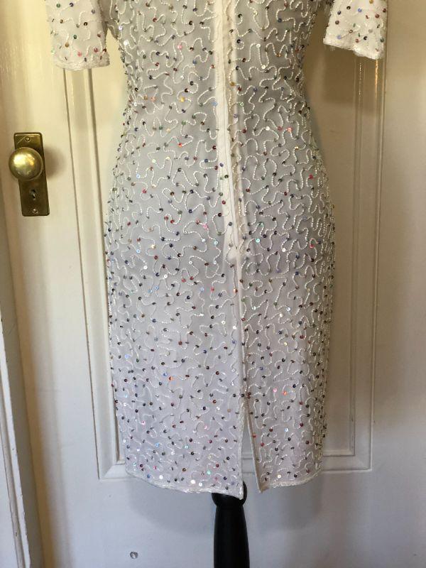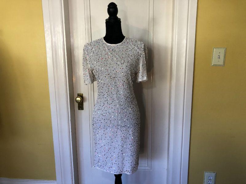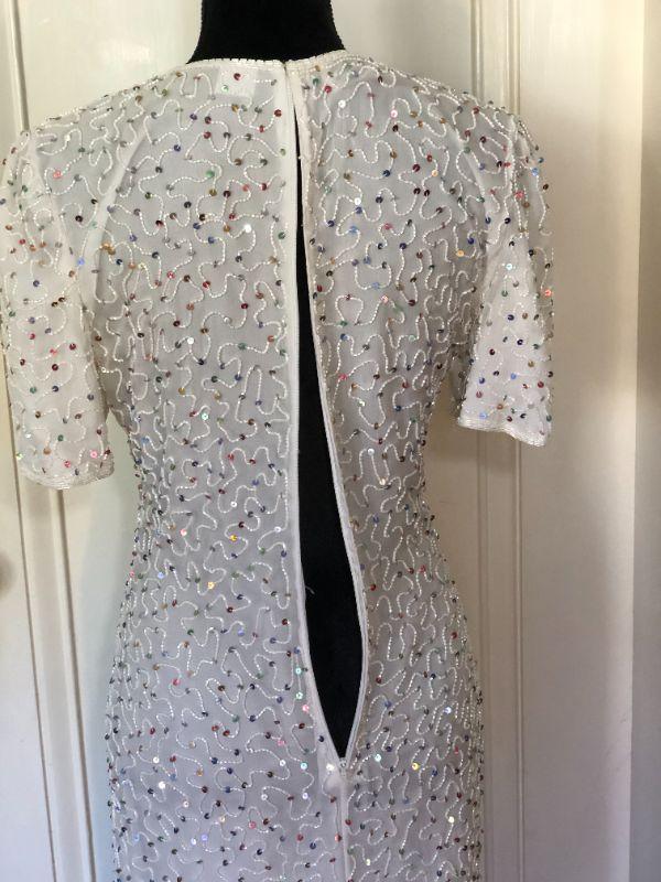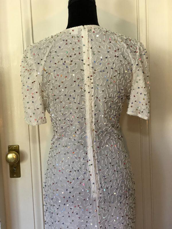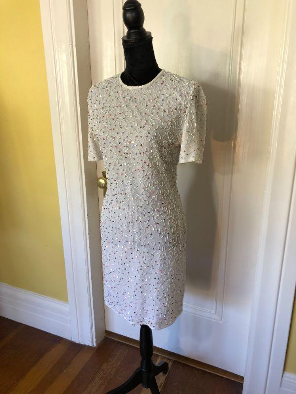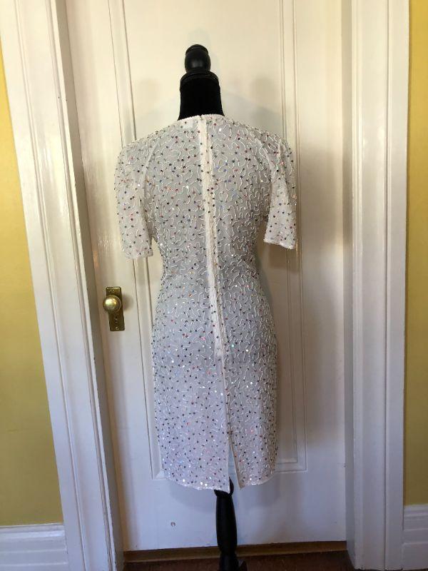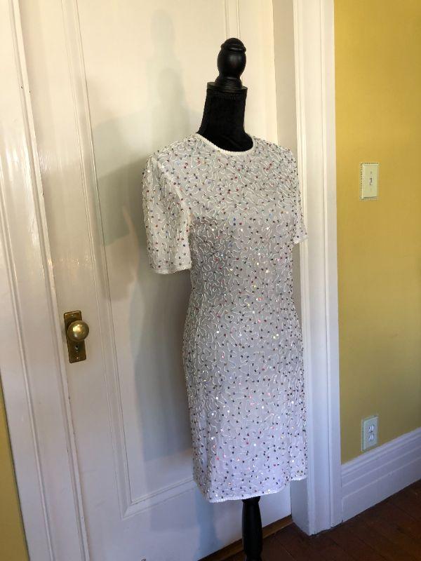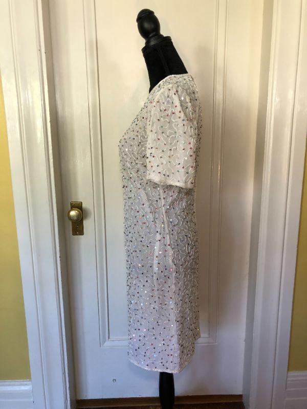 Laurence Kazar White Dress with Multicolor Sequins Size Small