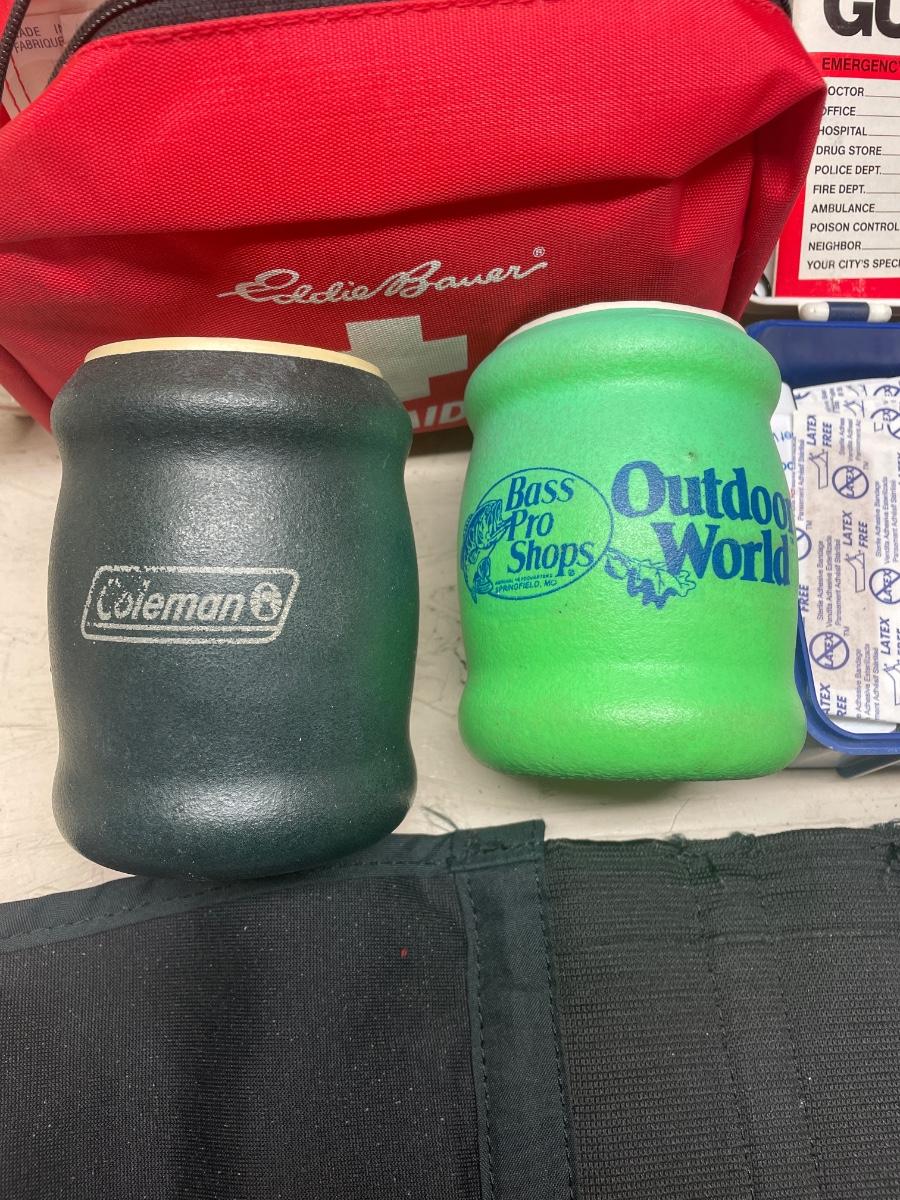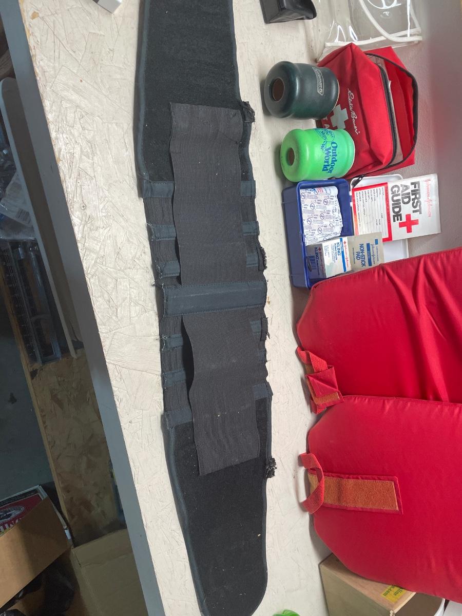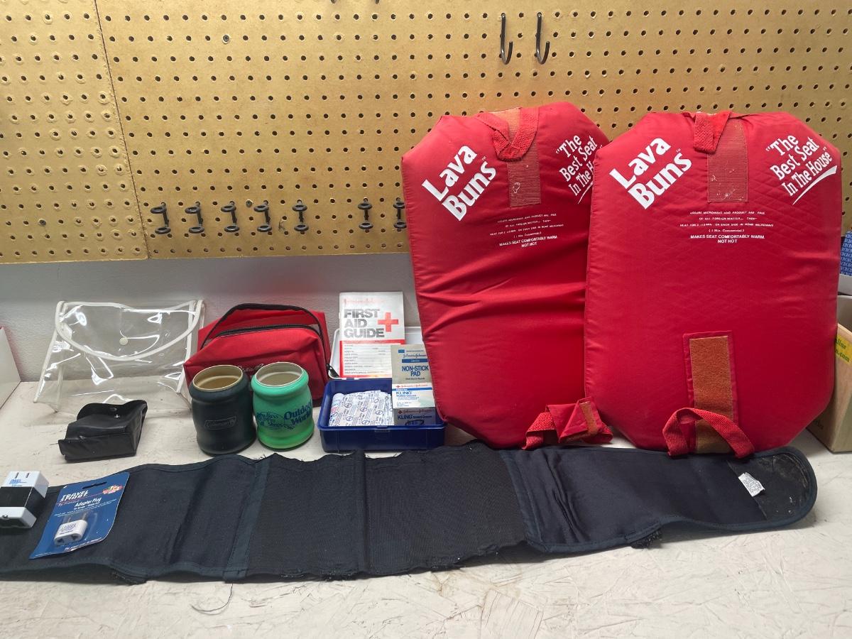 Lava Buns, first aid kits, can coolers, back supporter and adapter plugs