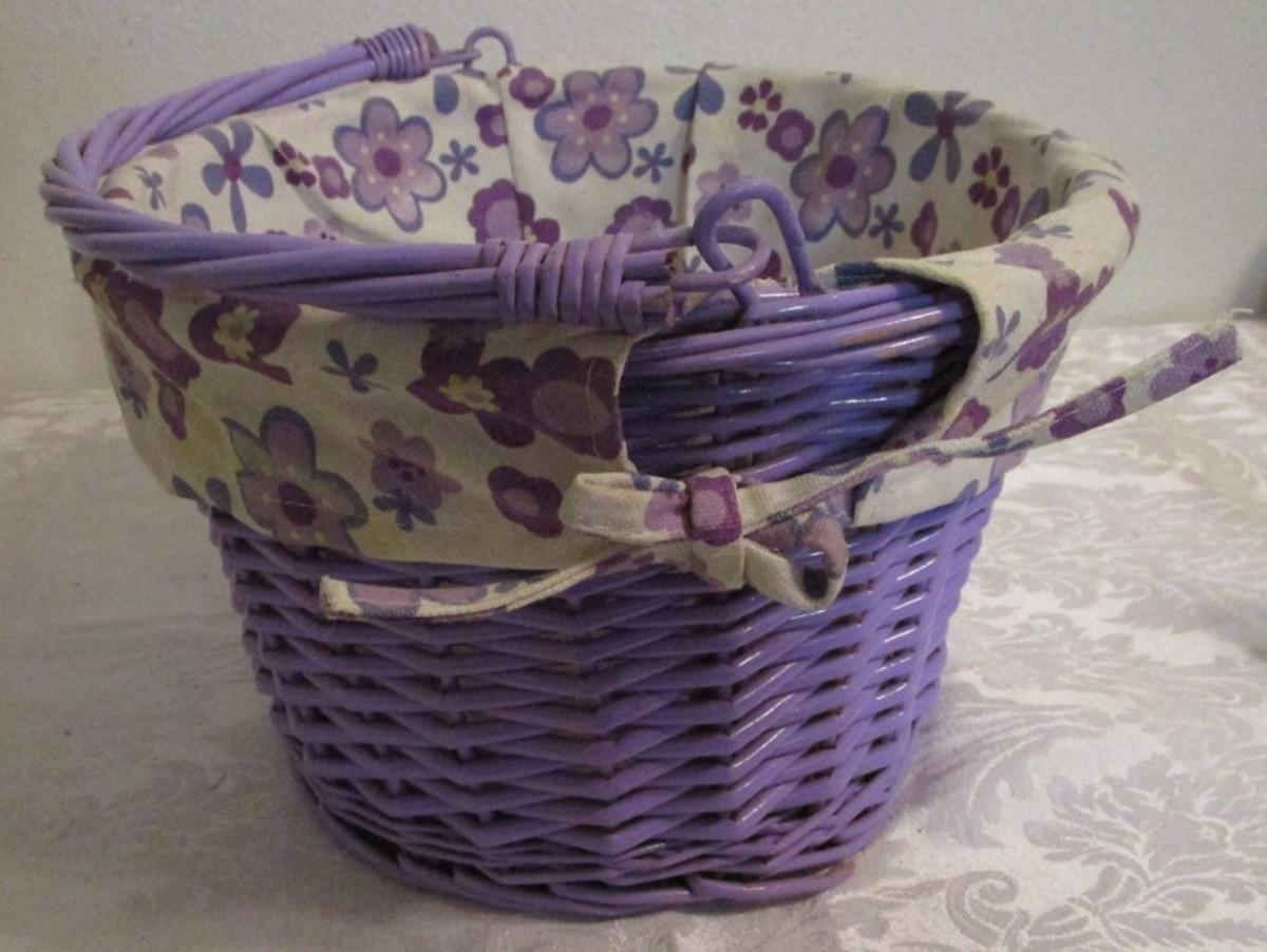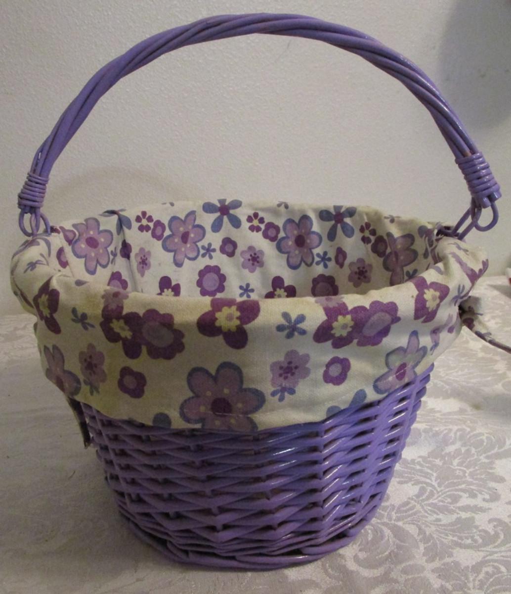 Lavendar basket with removable floral fabric liner