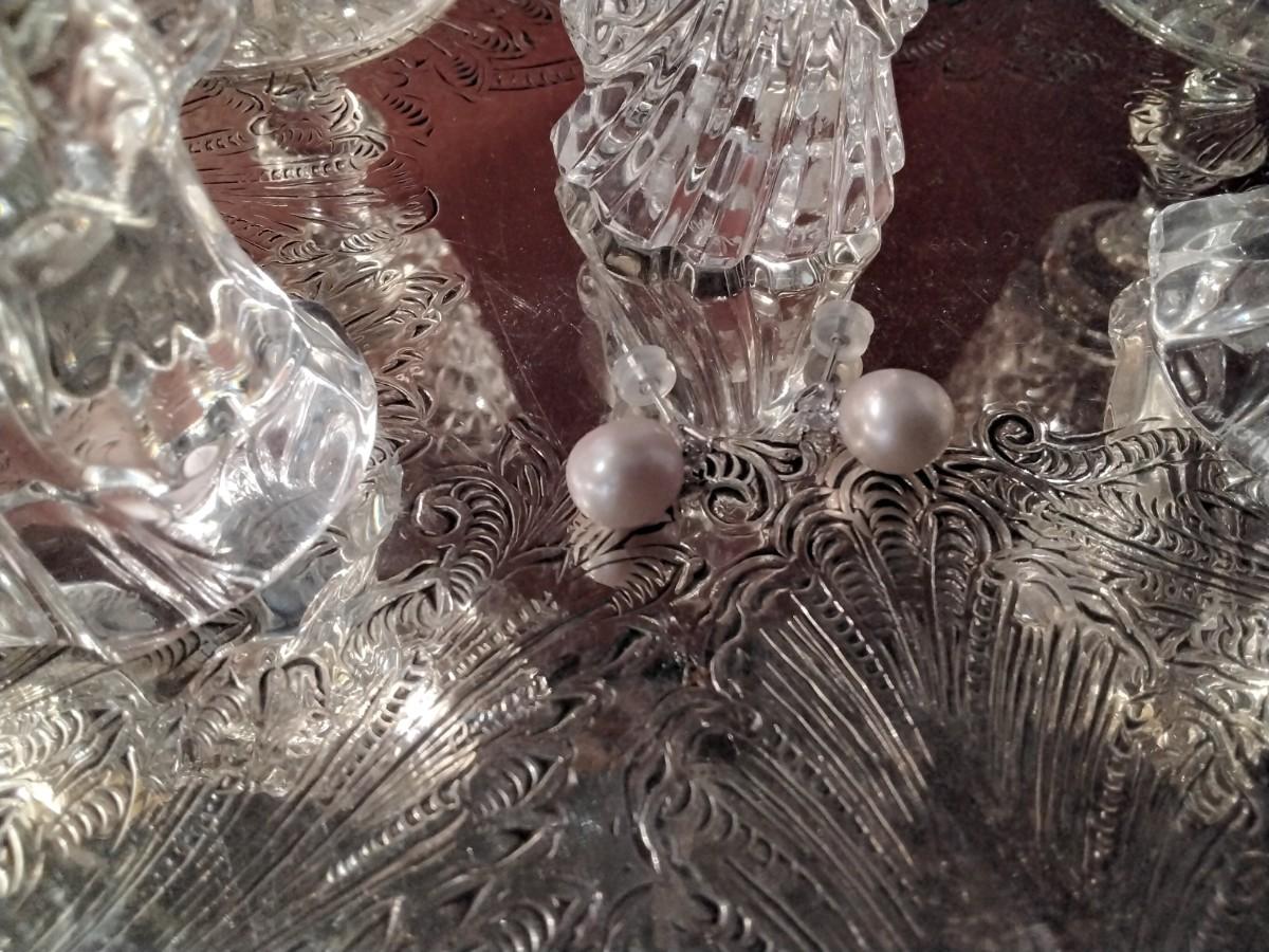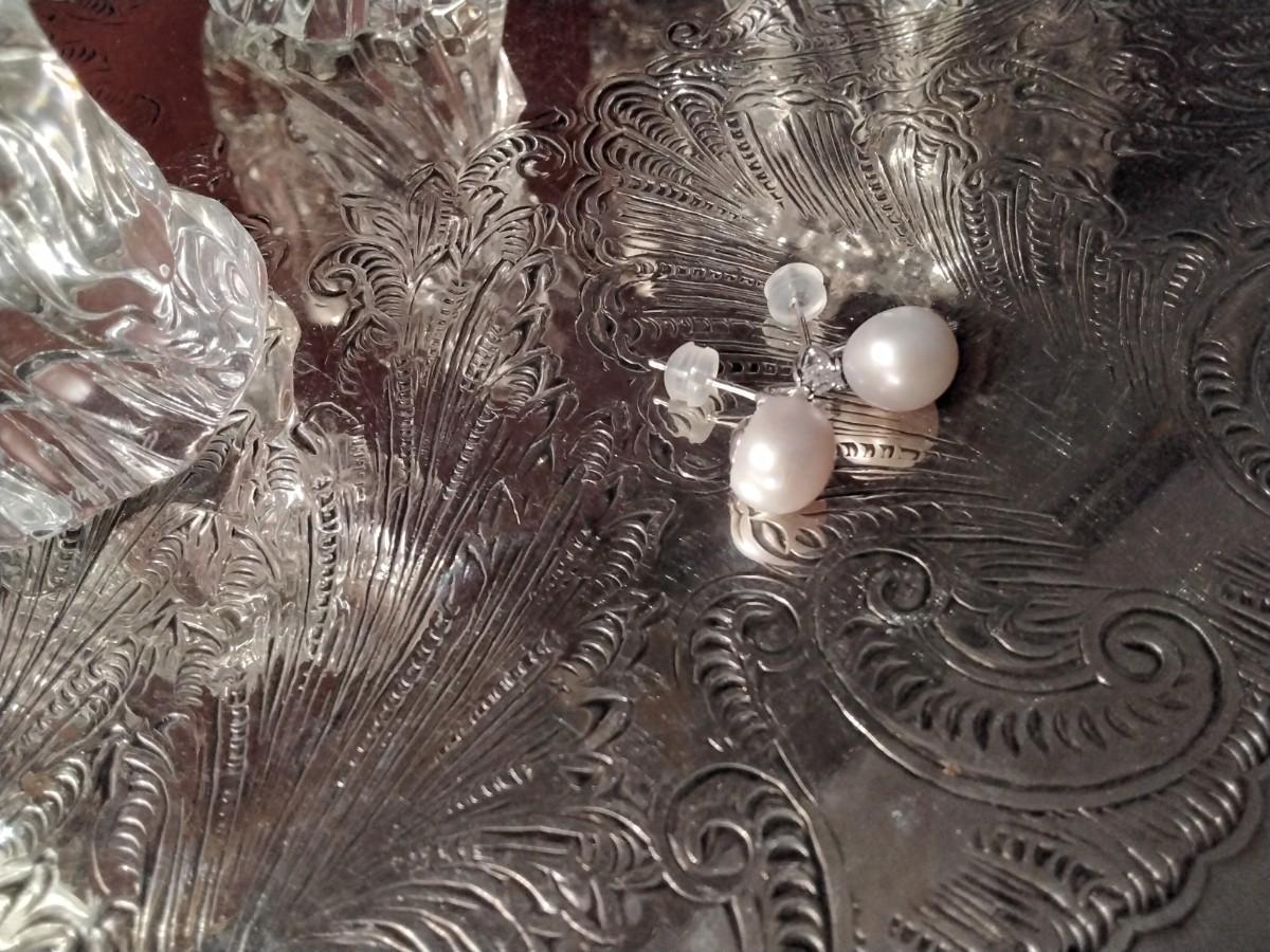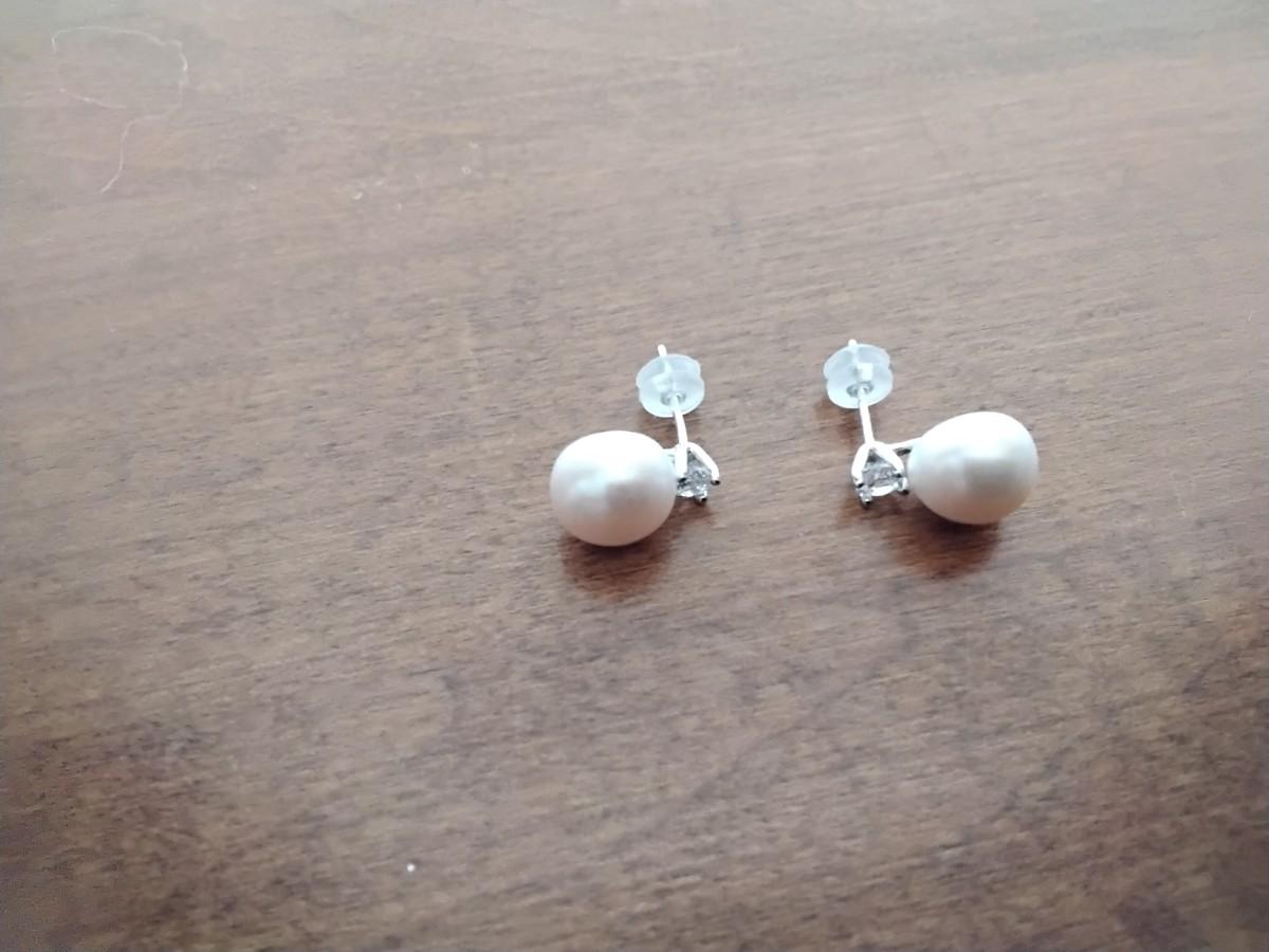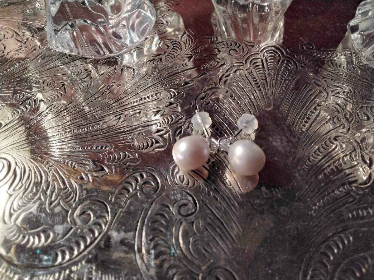 Lavender Akoya with zircon accent sterling silver post earrings