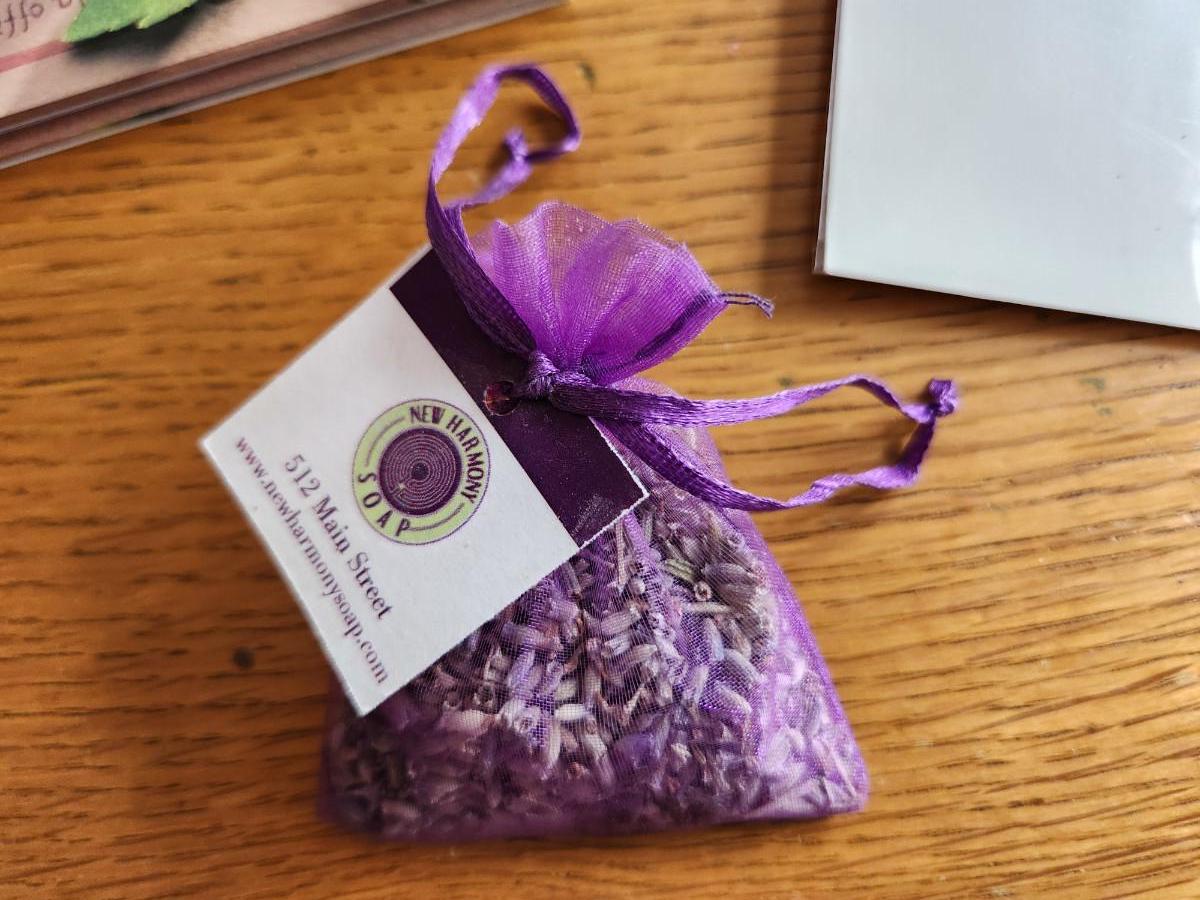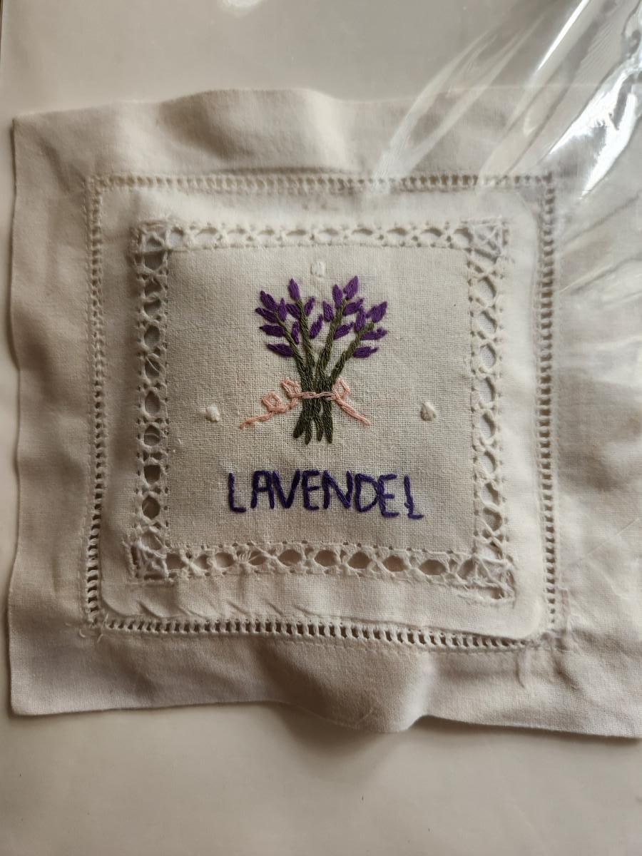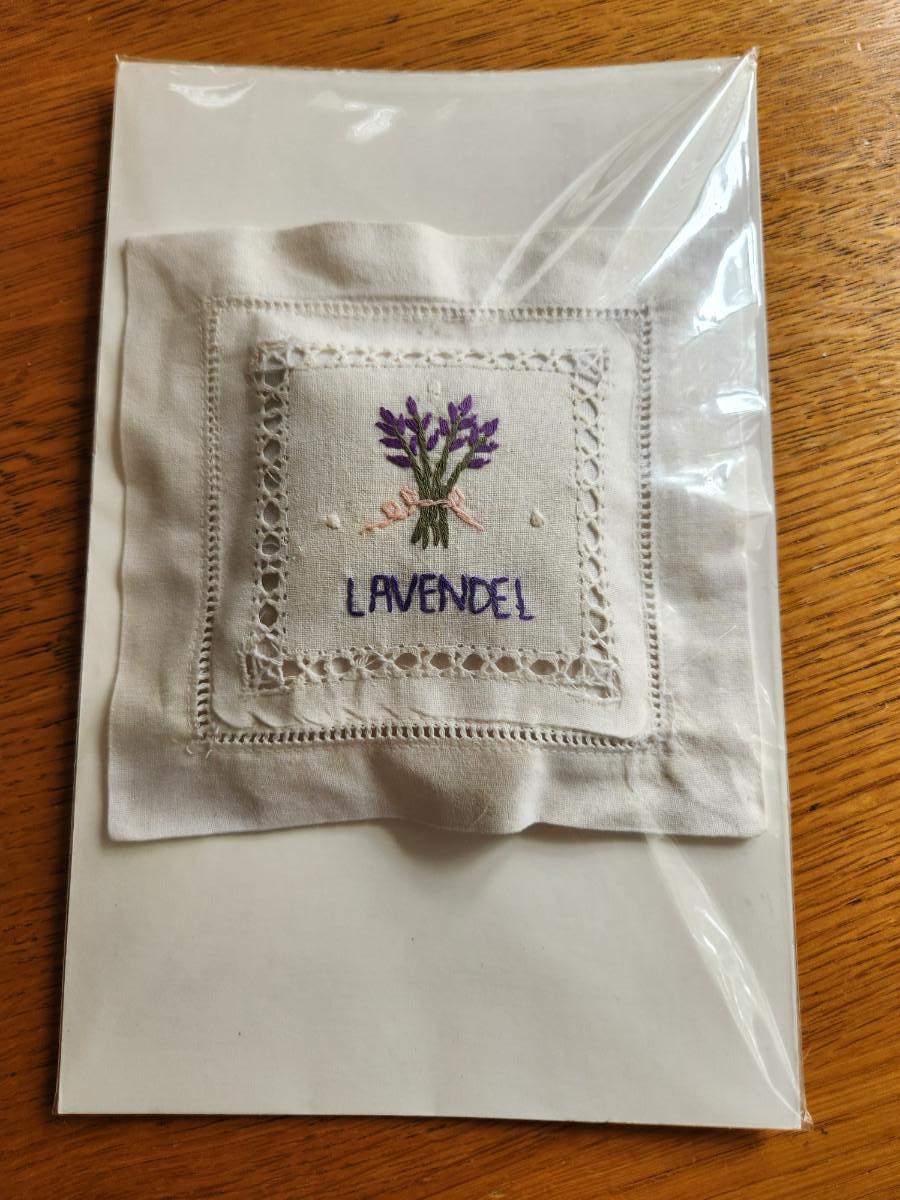 This auction lot is a Lavender Celebration. The offering includes two Lavender books, a small sachet of lavender flowers from New Harmony, IN and a crisp, French Linen Pillow embroidered with a Lavender motif and stuffed with Lavender. Great items for so many uses.