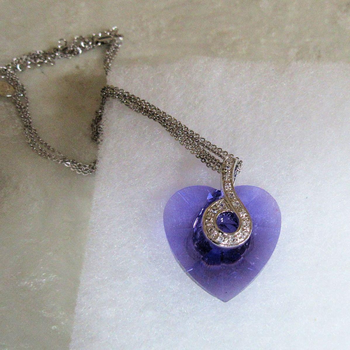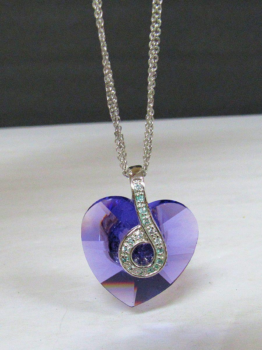 Lavender Colored Heart On Multi Strand 925 Silver Chain With Chain Extender