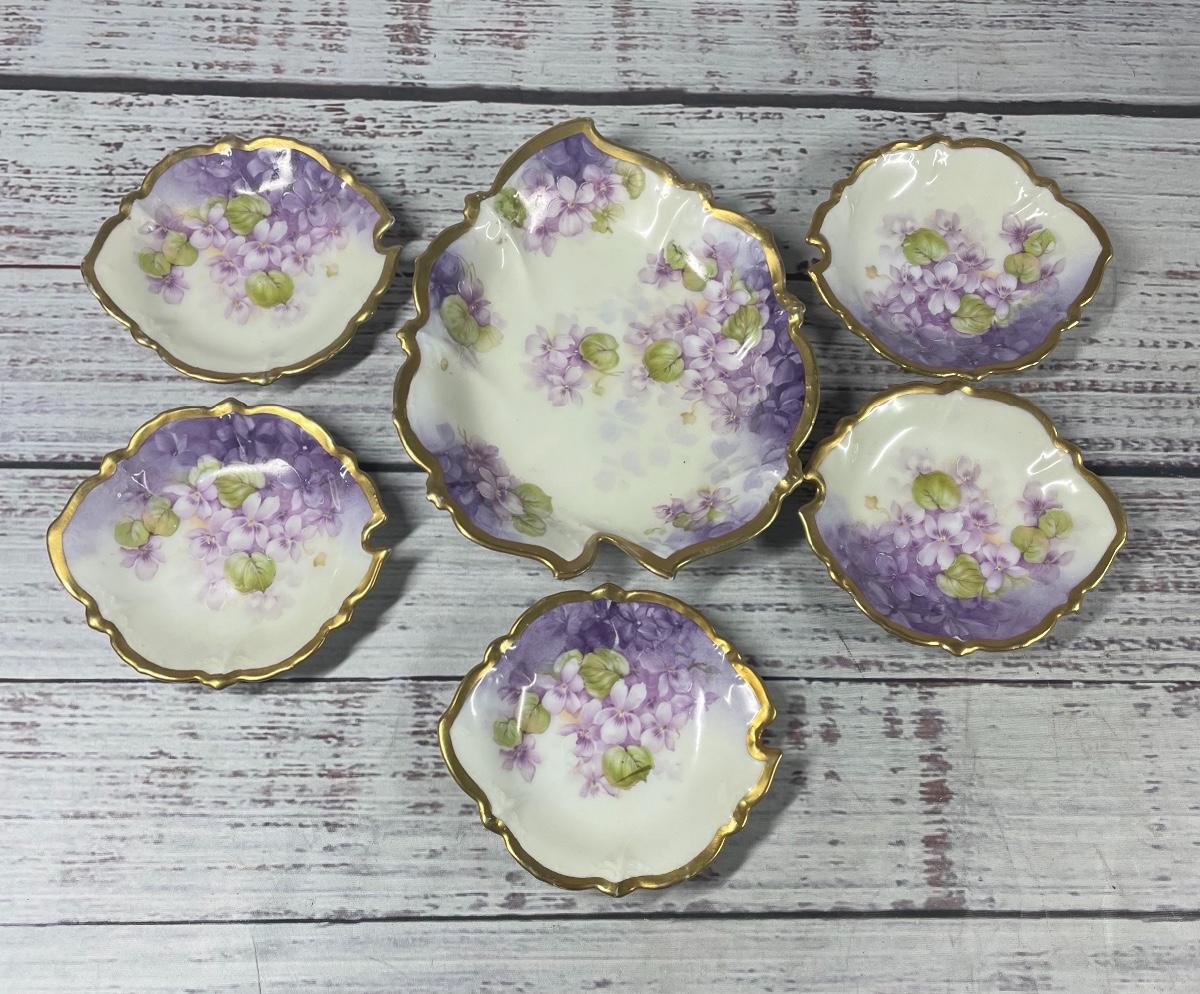 Lavender Floral Violets Ceramic Serving Plates Saucers Teabag Lemon Wedge Butter Pats