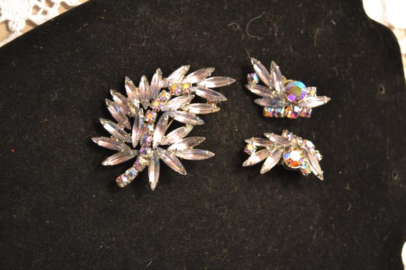 Unfortunately the photos do not capture the stunning lavender color this set reflects. All rhinestones are in tact... excellent vintage condition