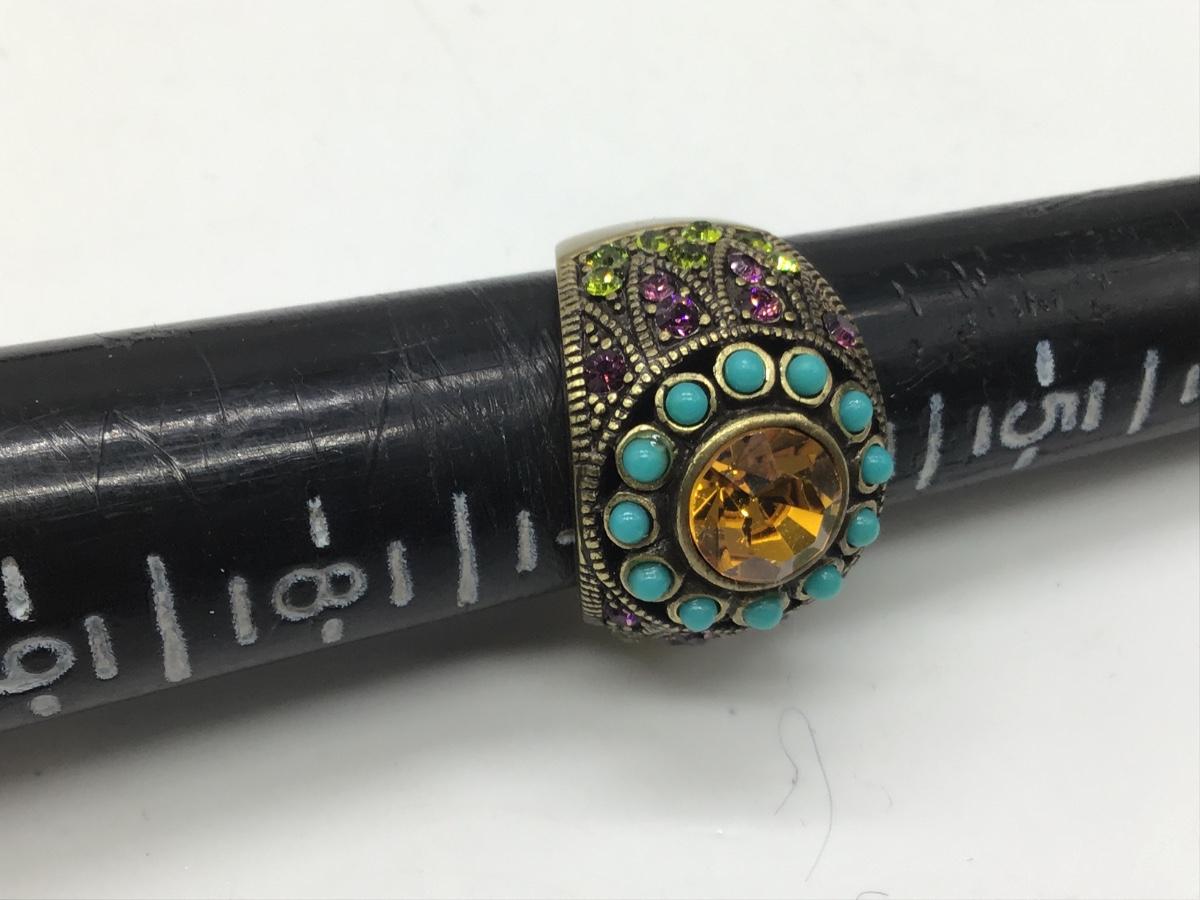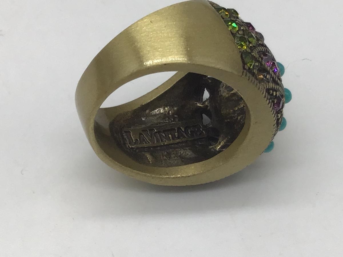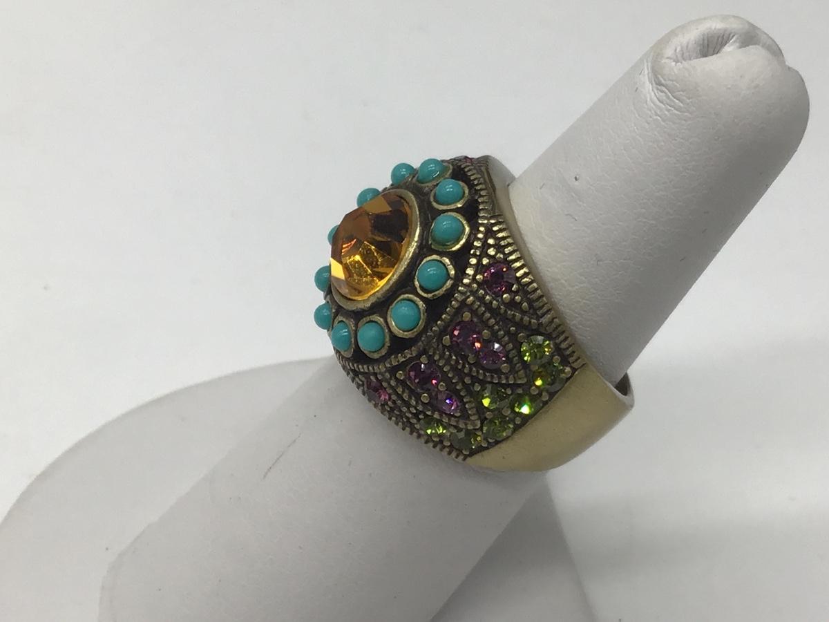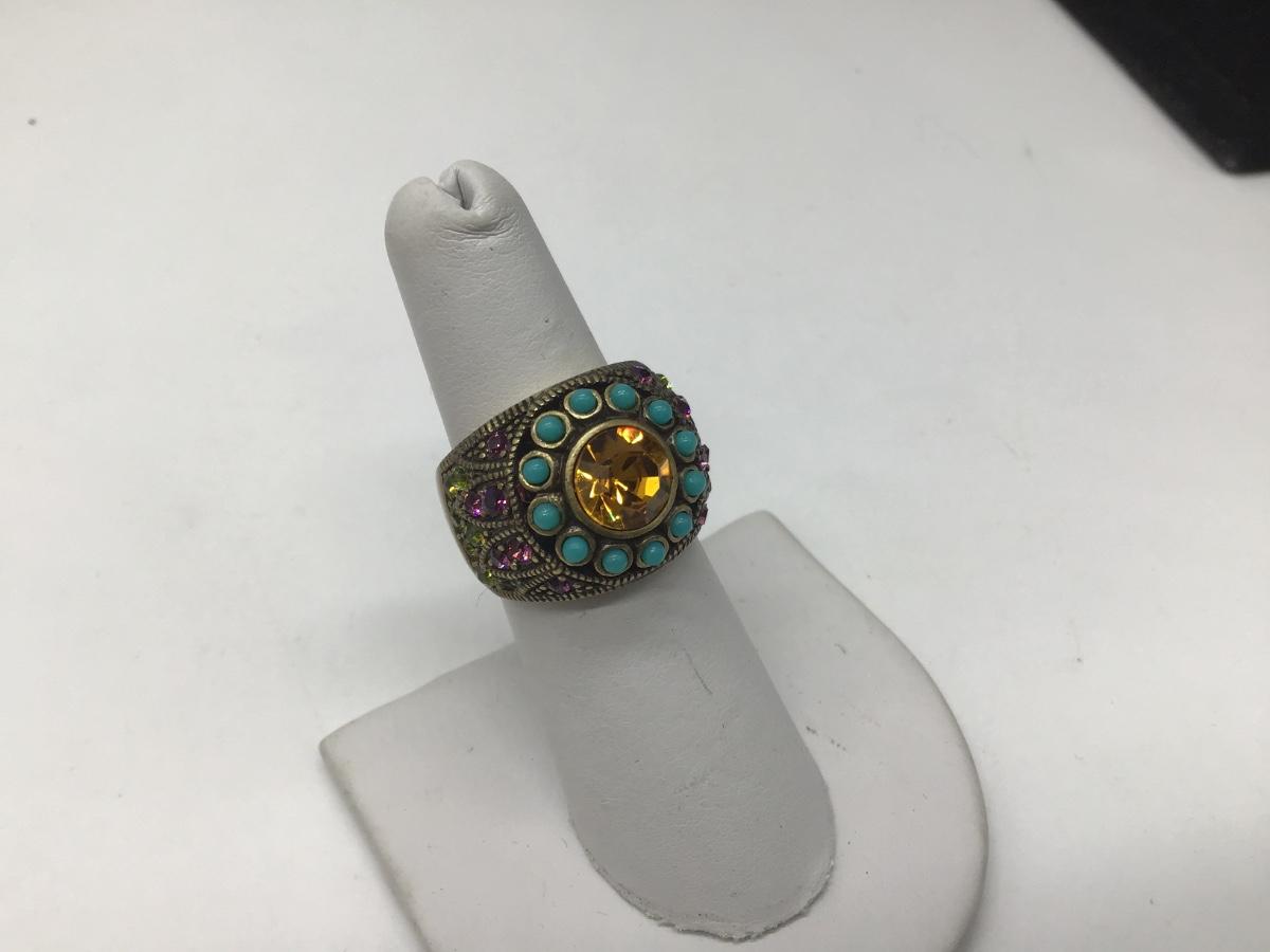 LaVintage Ring Turquoise Citrine Amethyst Peridot Crystals Antique Goldtone