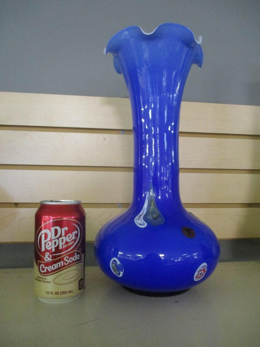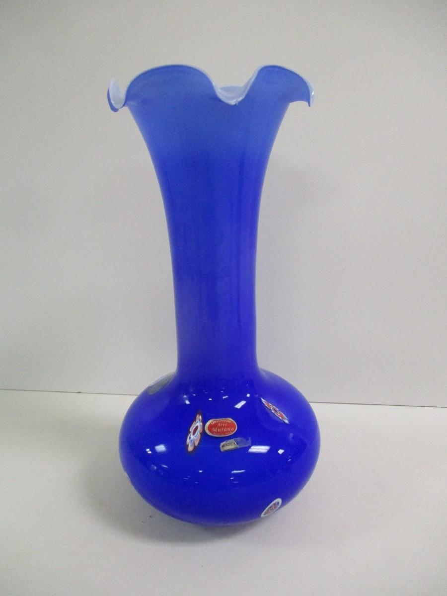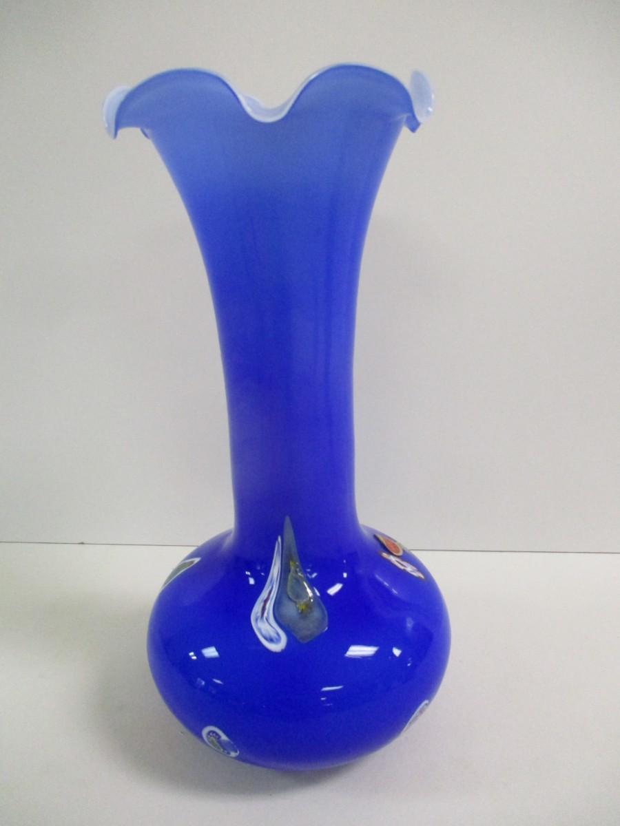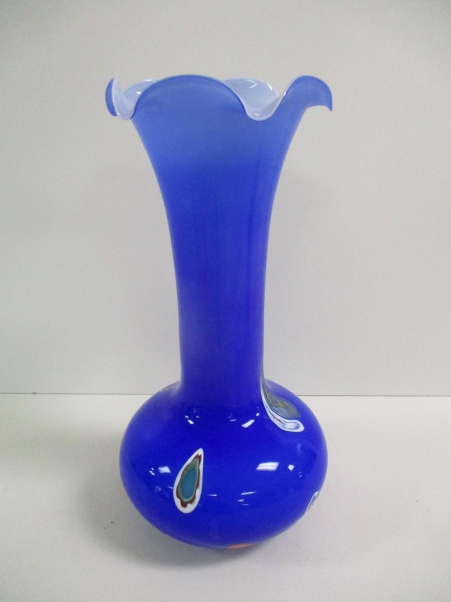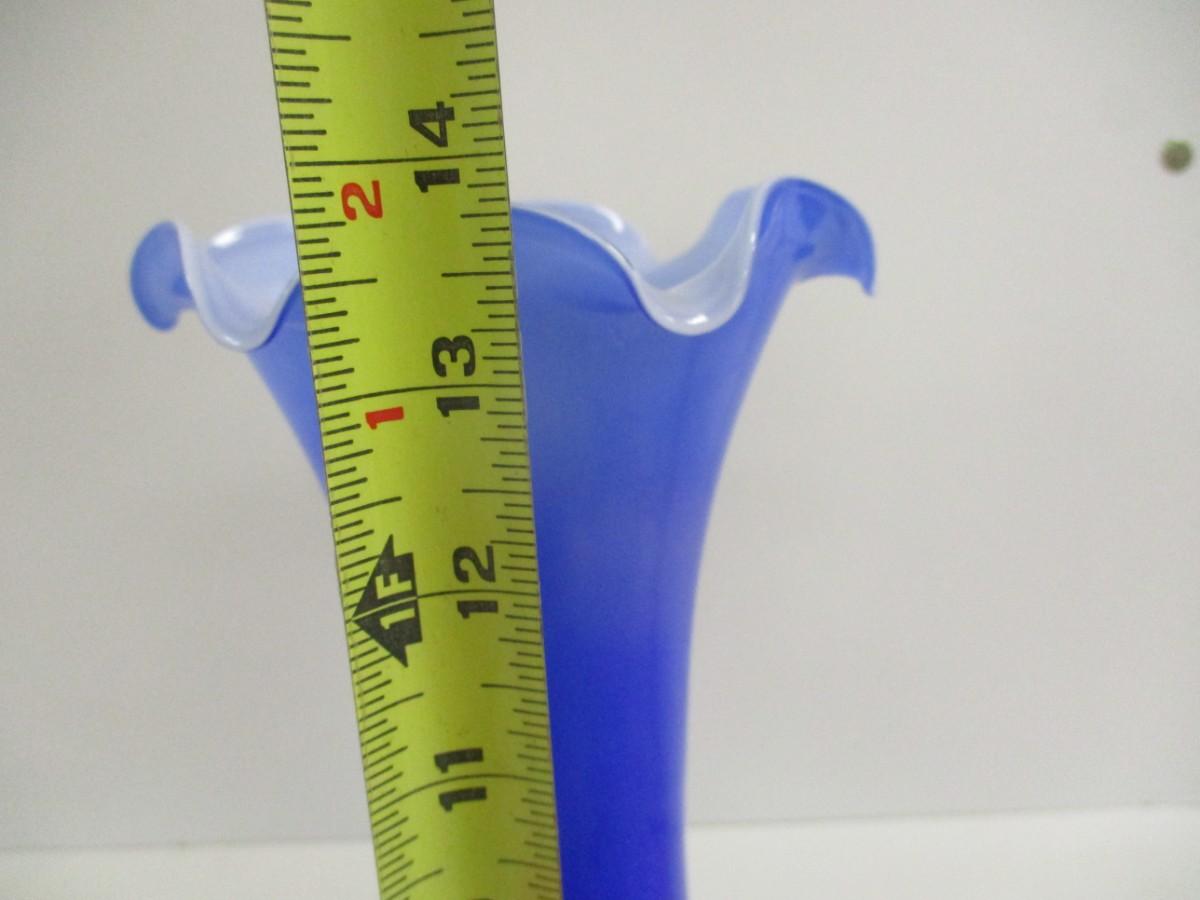 Lavorazione Arte Murano Made In Italy Blue Ruffled Edge Hand Blown Approx 13 3/4" Tall #5