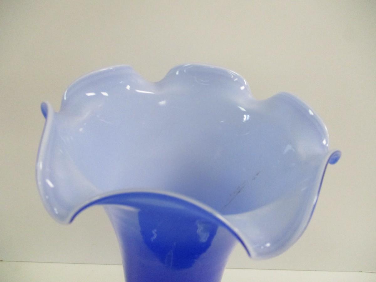Lavorazione Arte Murano Vase Made In Italy Blue Ruffled Edge Hand Blown Approx 13 3/4" Tall #5