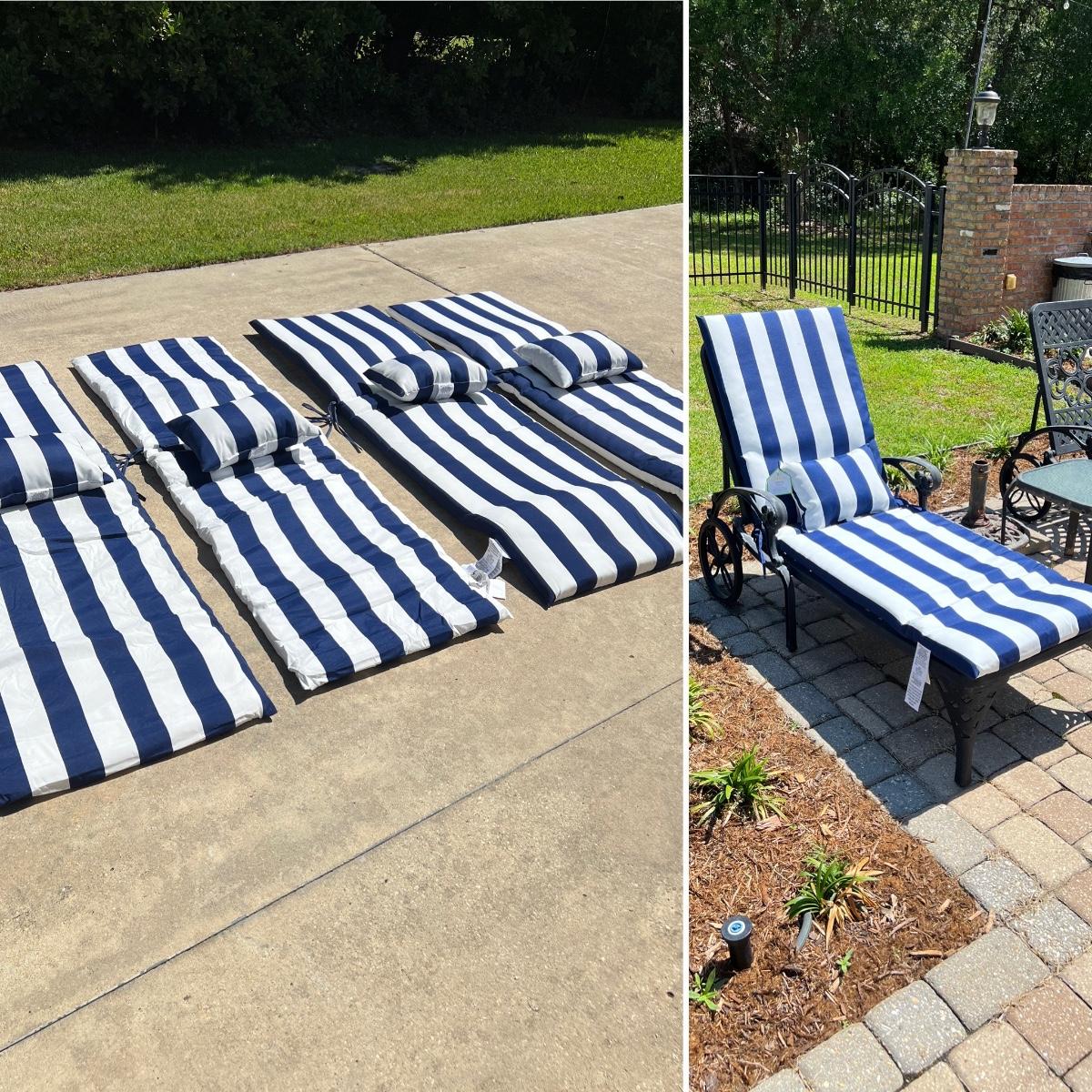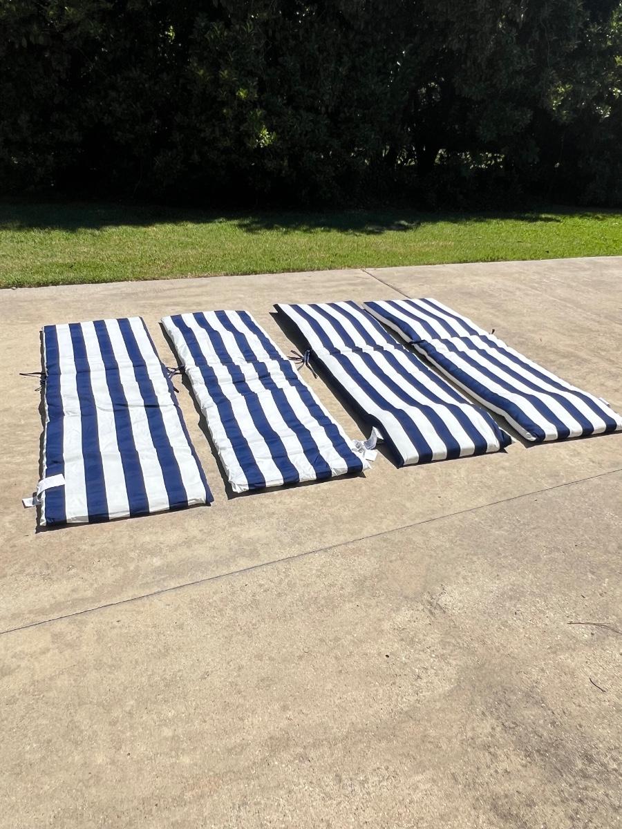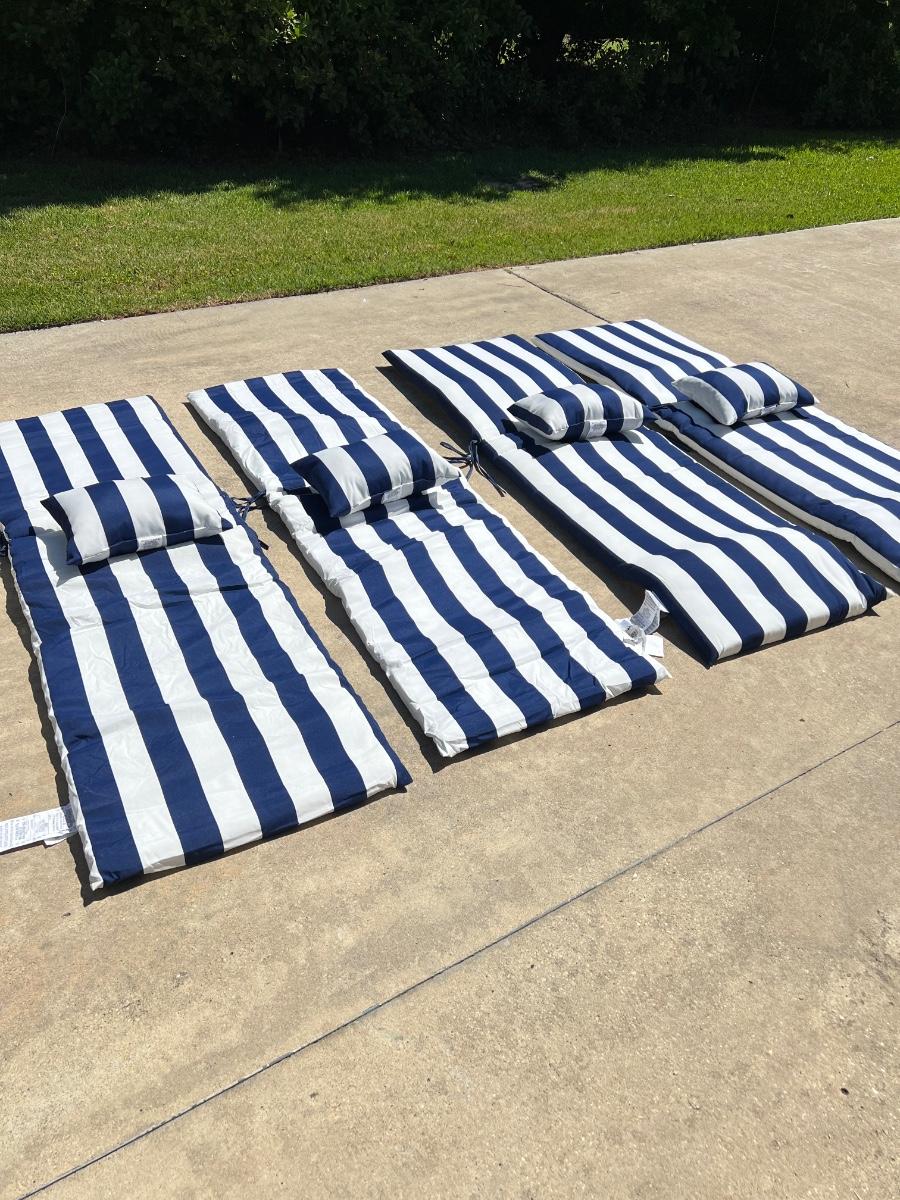 BRENTWOOD ORIGINALS ~ Outdoor Chaise Lounge Cushions & Pillows ~ Like New ~ Blue and White