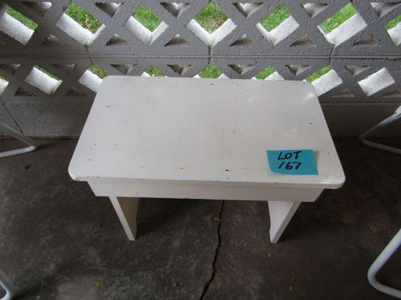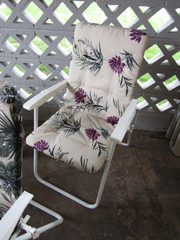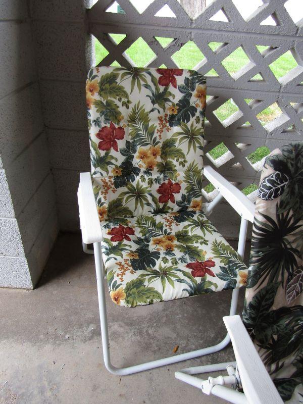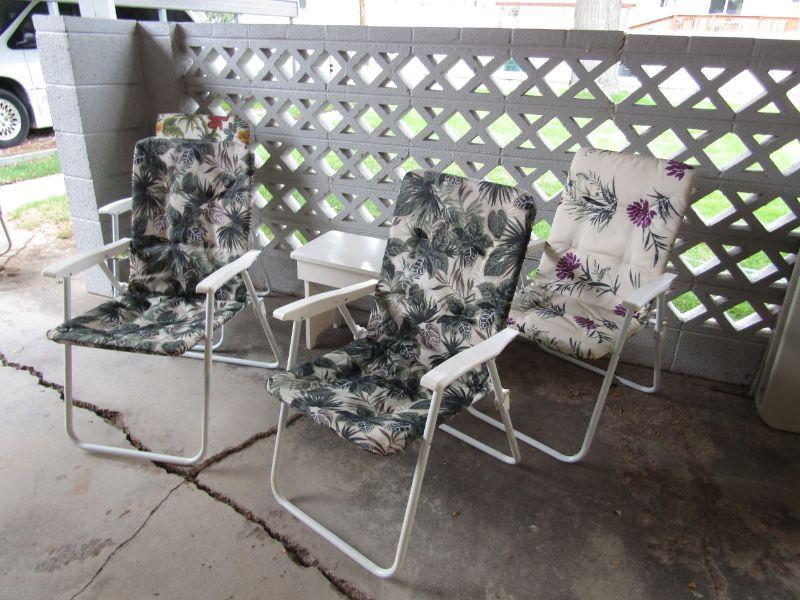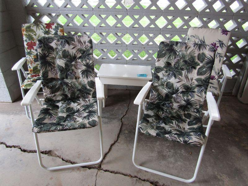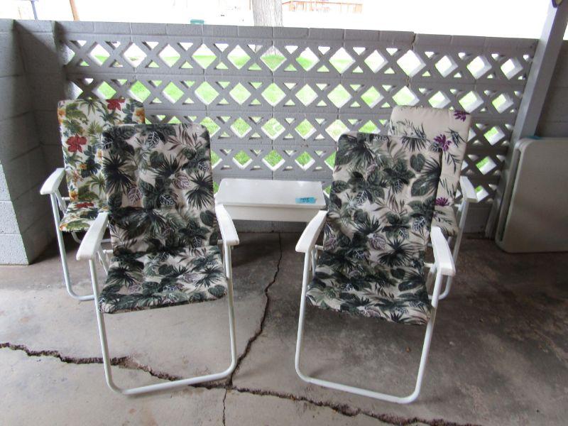SMAII WOODEN SIDE TABLE AND 4 FOLDING LAWN CHAIRS