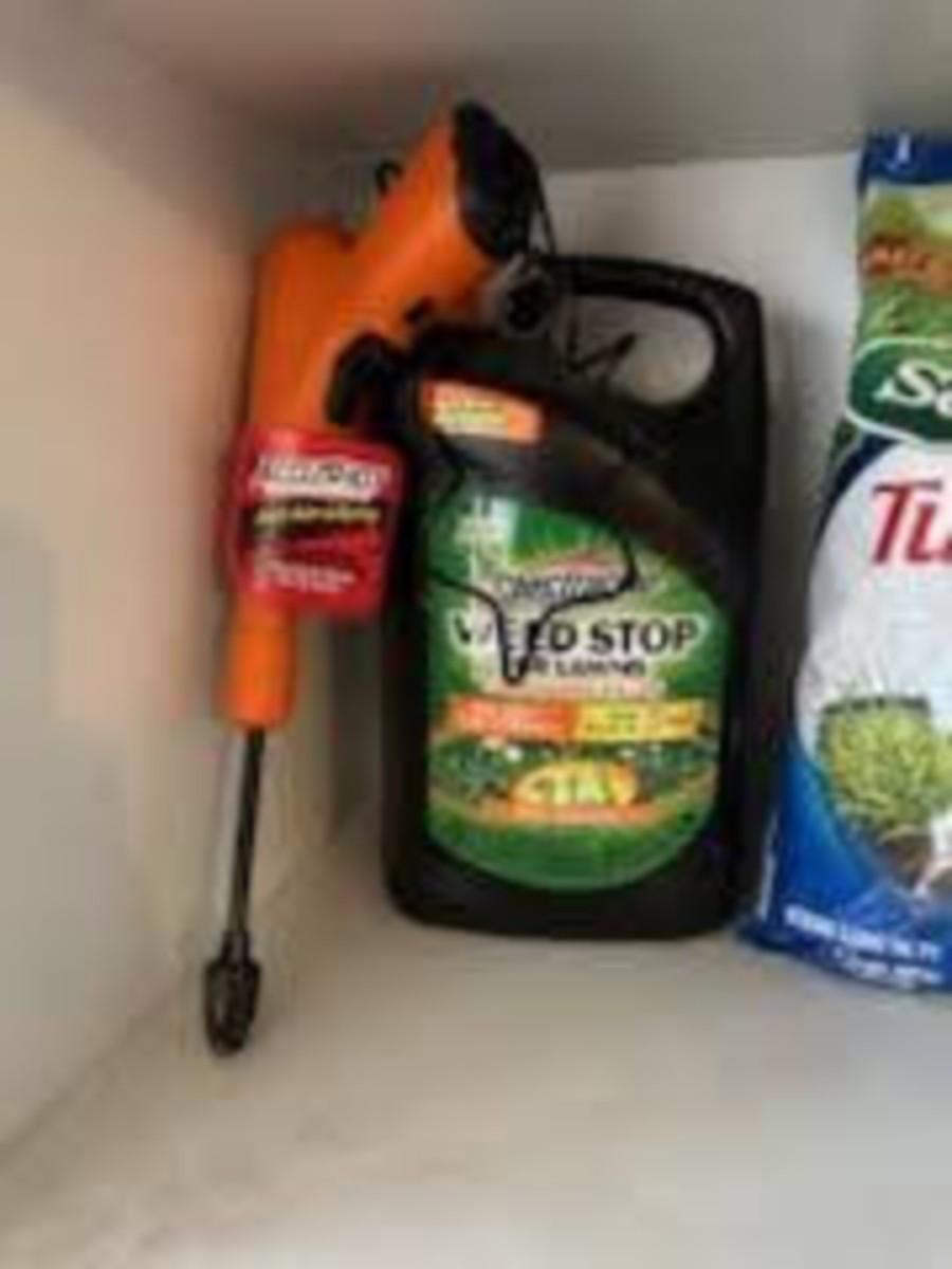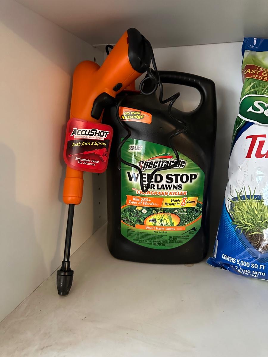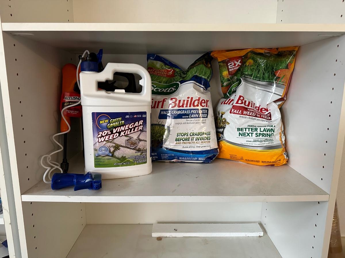 LAWN FERTILIZER, WEED STOP AND A YARD SPRINKLER