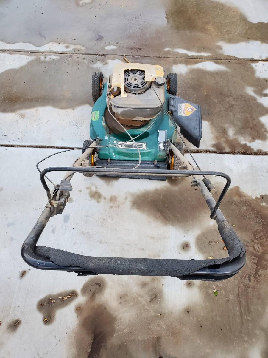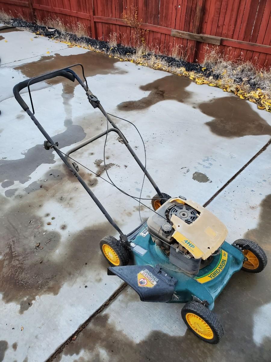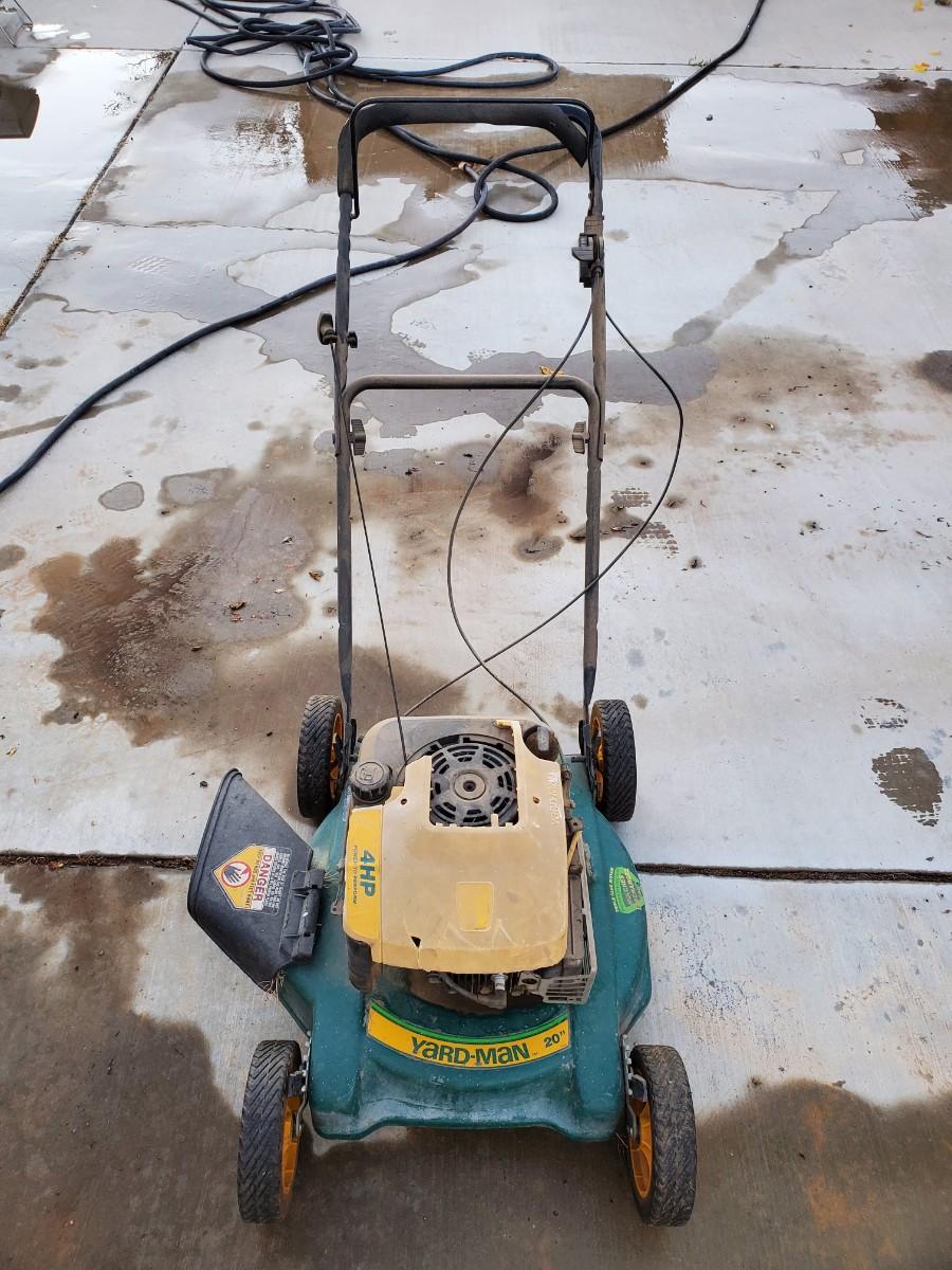 4 HP Yard-Man Lawn Mower - Has not been started in over 10 years. Plastic housing on top is no longer attached.