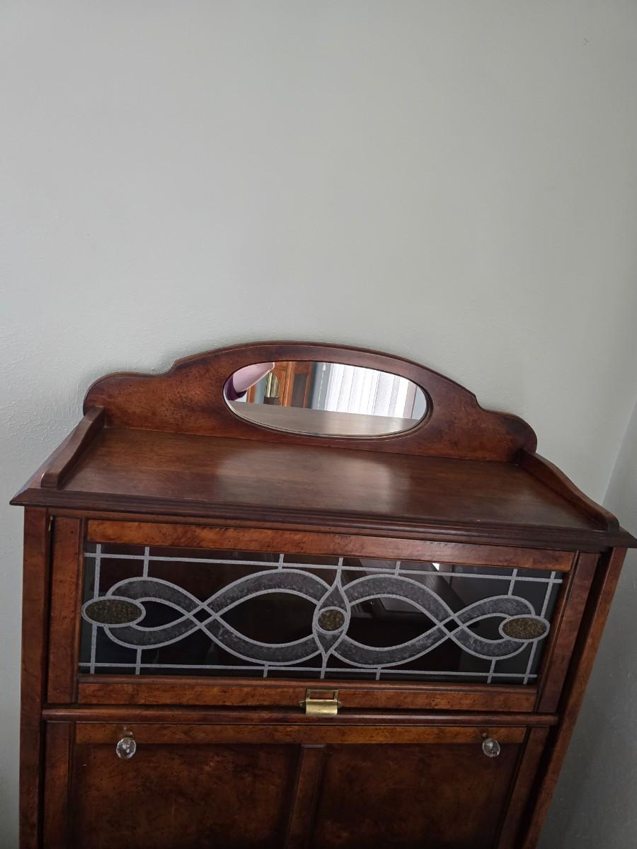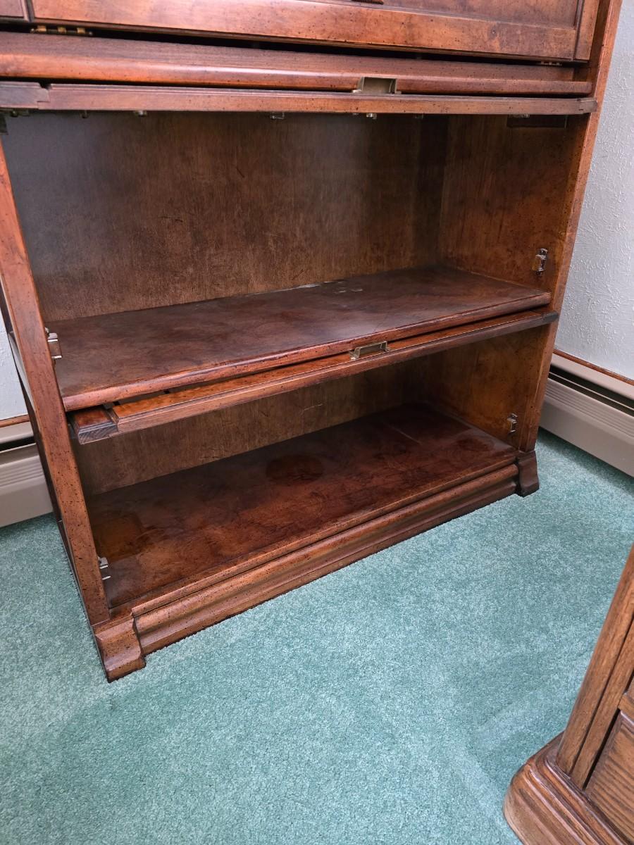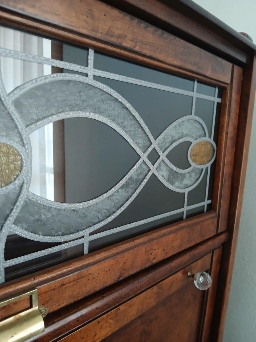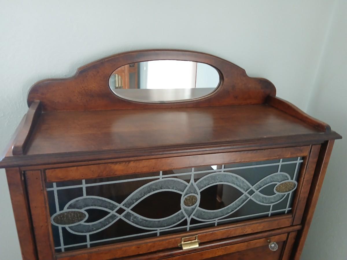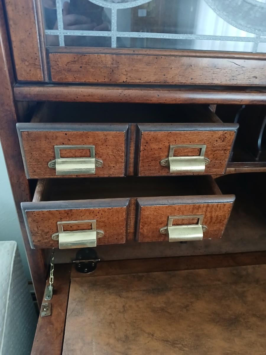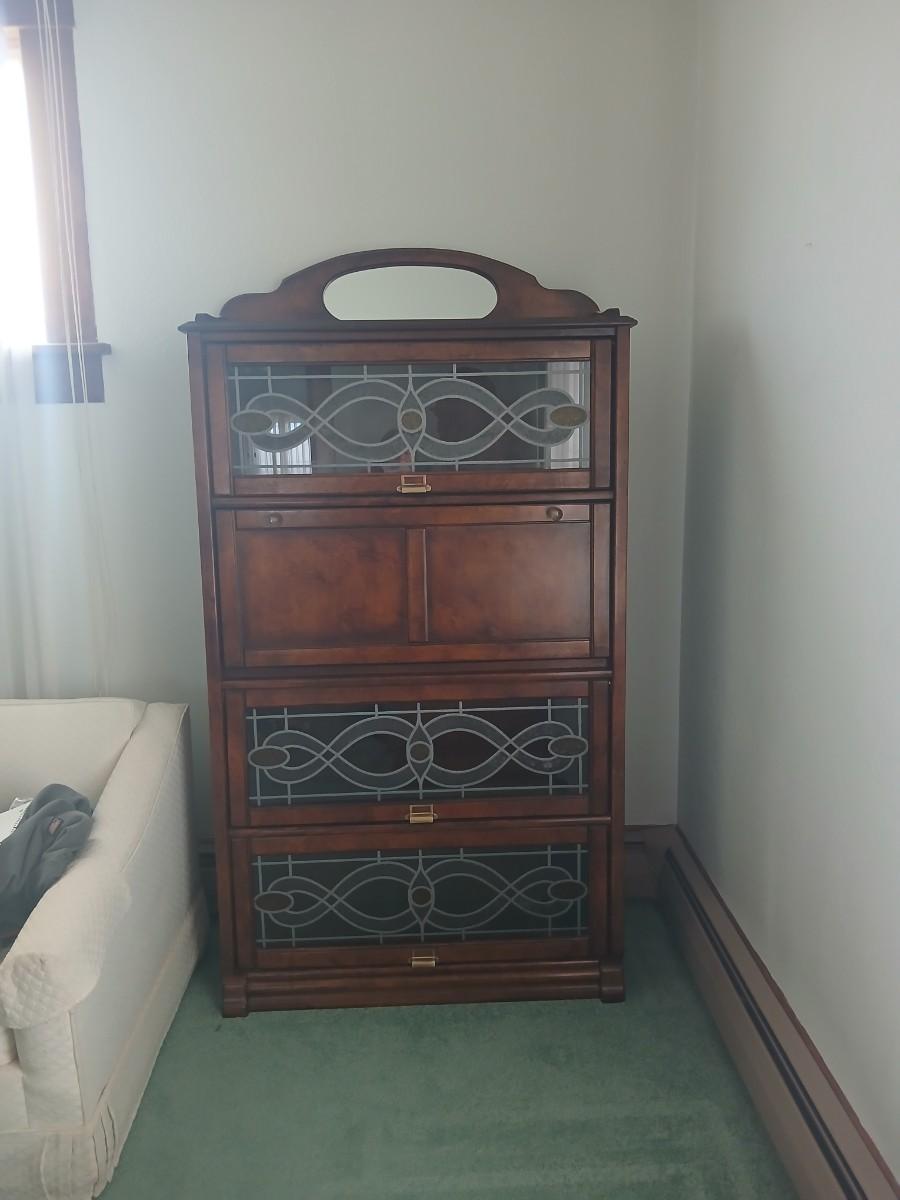 Barrister bookcase and secretary desk / bureau combination with intricate leaded stained-glass doors waterglass pattern