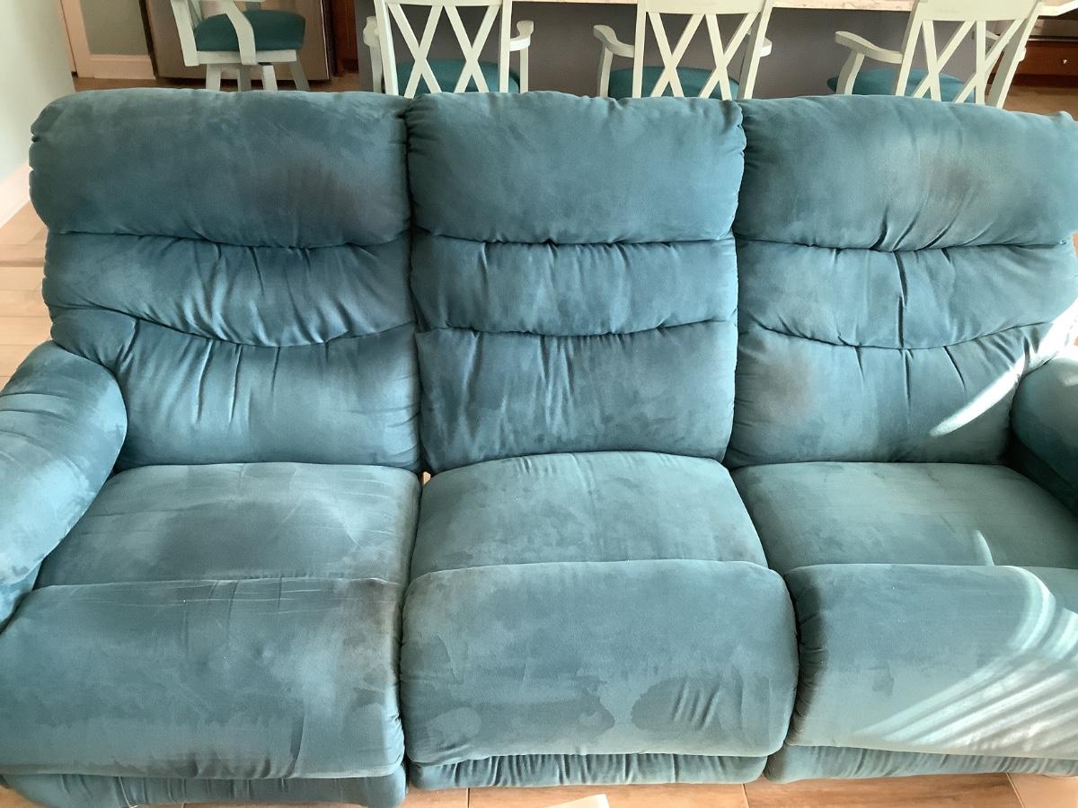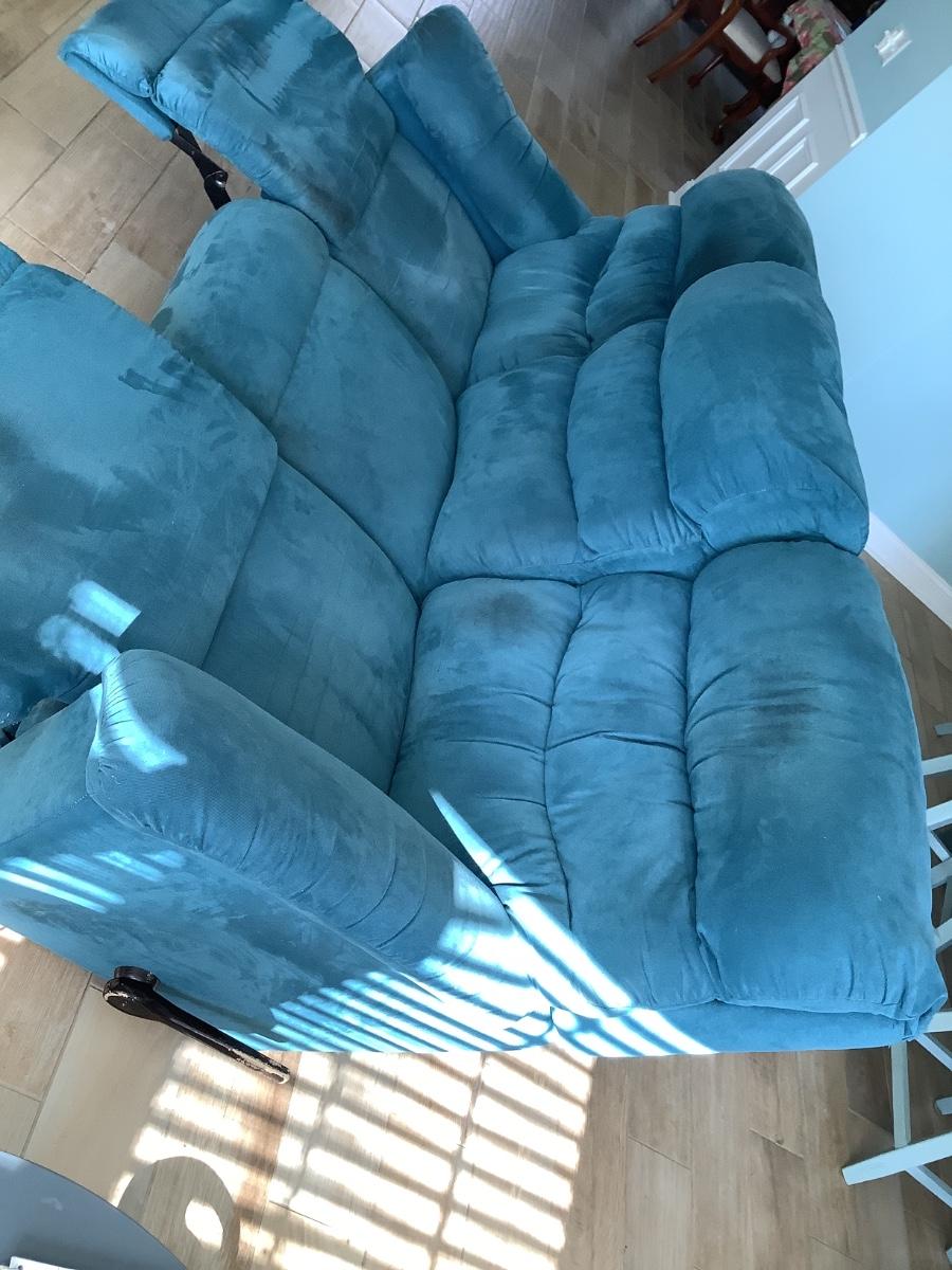 La-Z- Boy  double recliner couch, polyester fiber blend 40”H, 80”L, 40”W