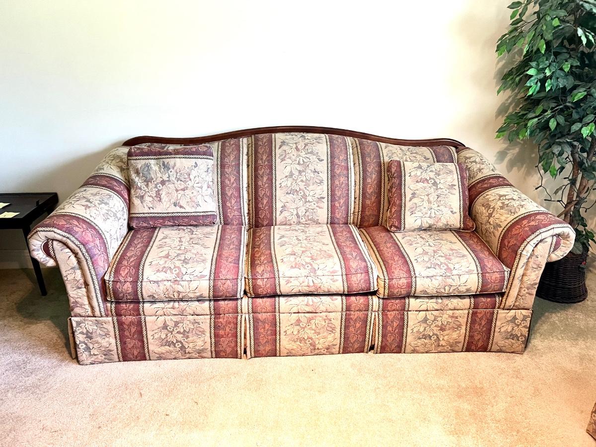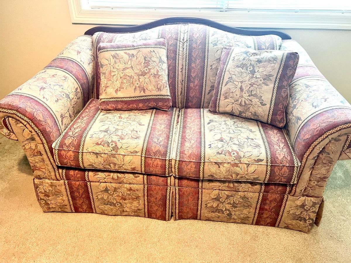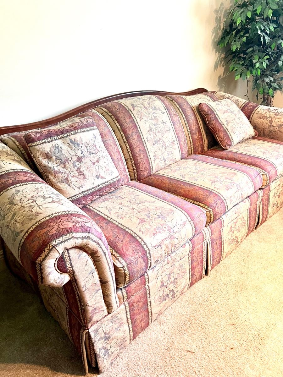 LAZ-A-BOY Sofa & Love Seat. Was used in a guest seating area, very clean. No dips in cushions. Couch measures 36 inches tall, 89 inches long and 36 inches deep. Floor to seat at 16 inches. Loveseat measures 36 inches tall 66 inches long, 36 inches deep. Floor to seat measures at 18 inches.