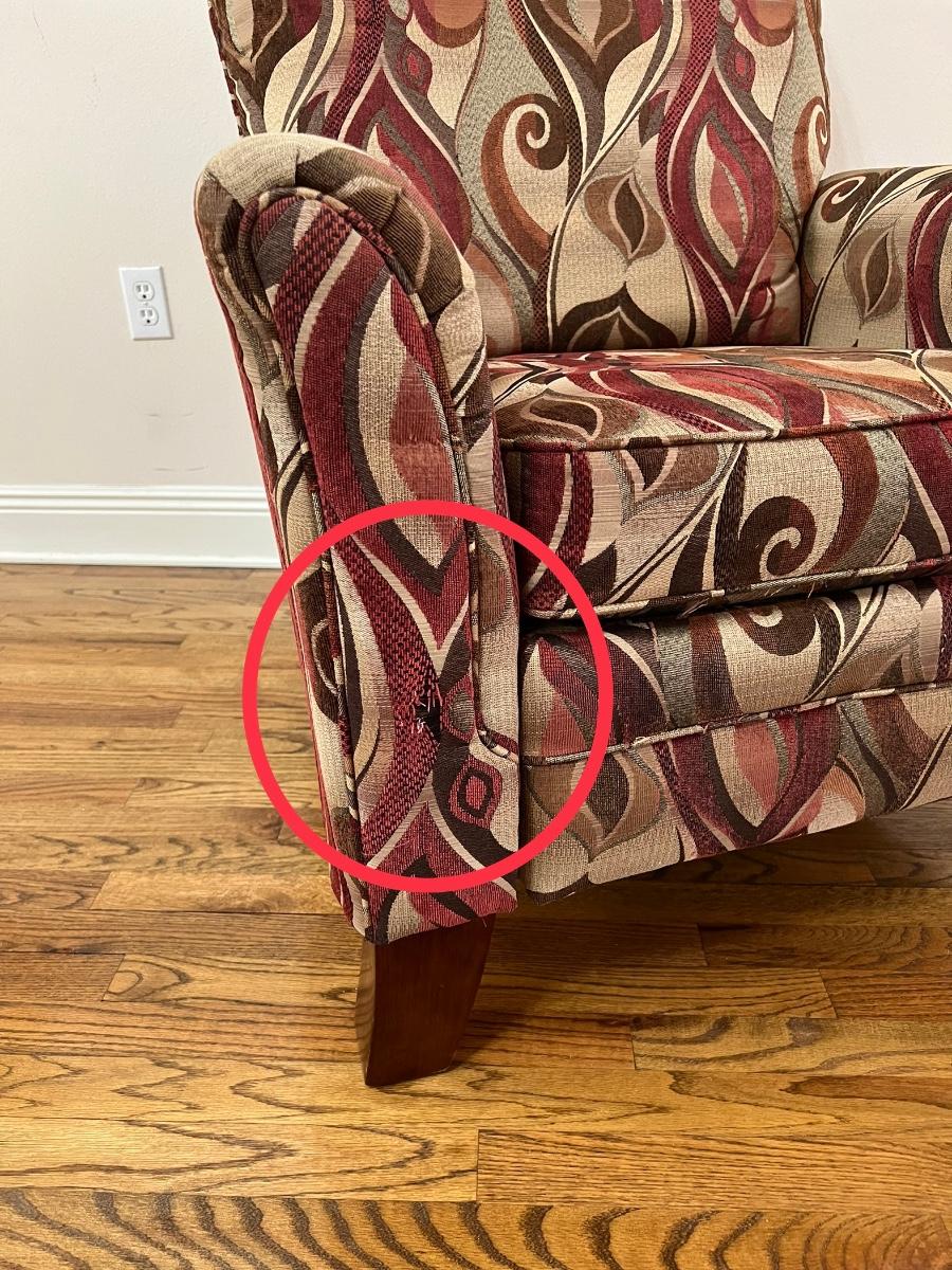 Has been deodorized, sanitized, & disinfected ~ Owner had small dog ~ Has minor wear in front, see photos ~ 40” H x 36” W x 37” D