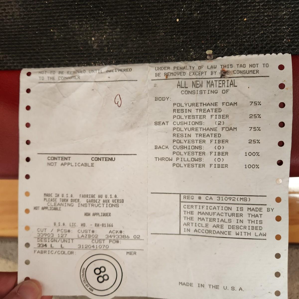 La-Z-Boy Light Red Loveseat Sofa 64x36x34