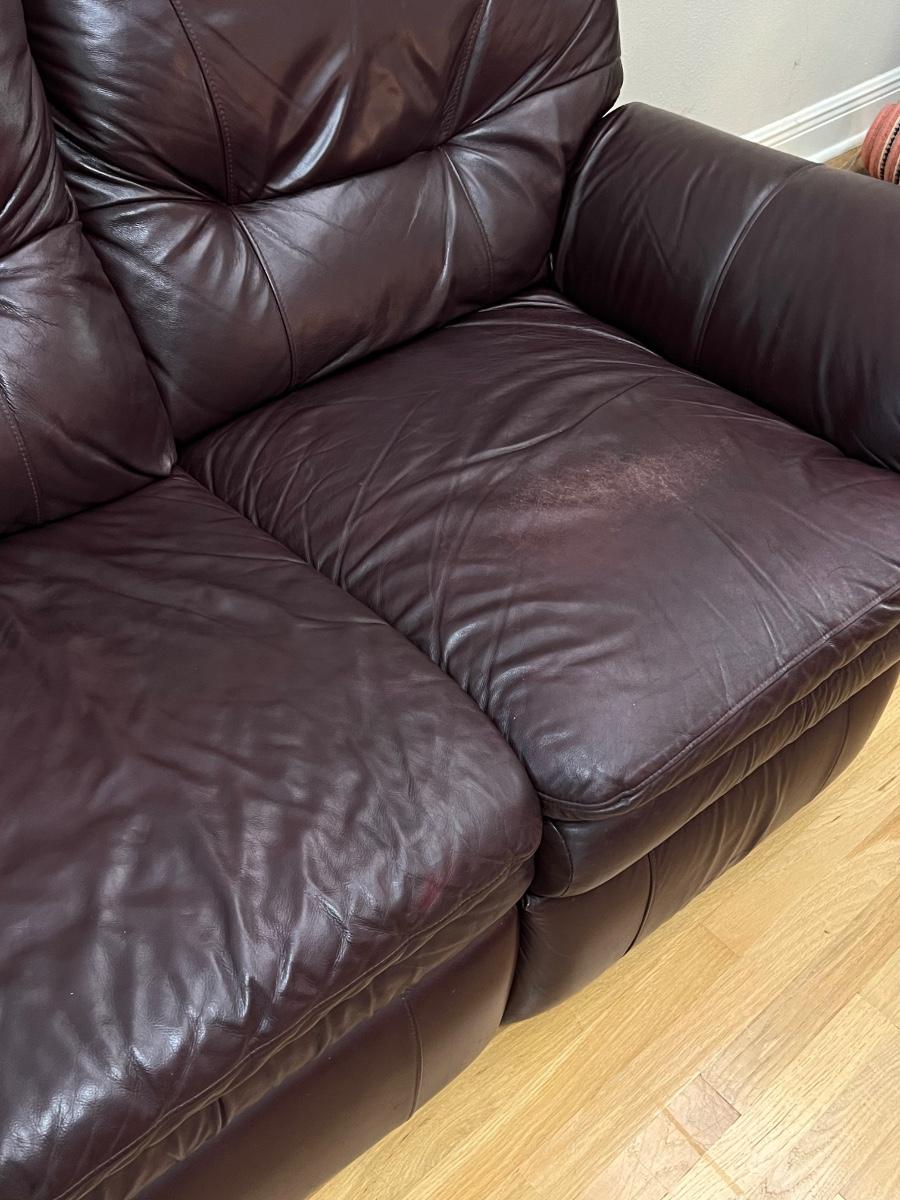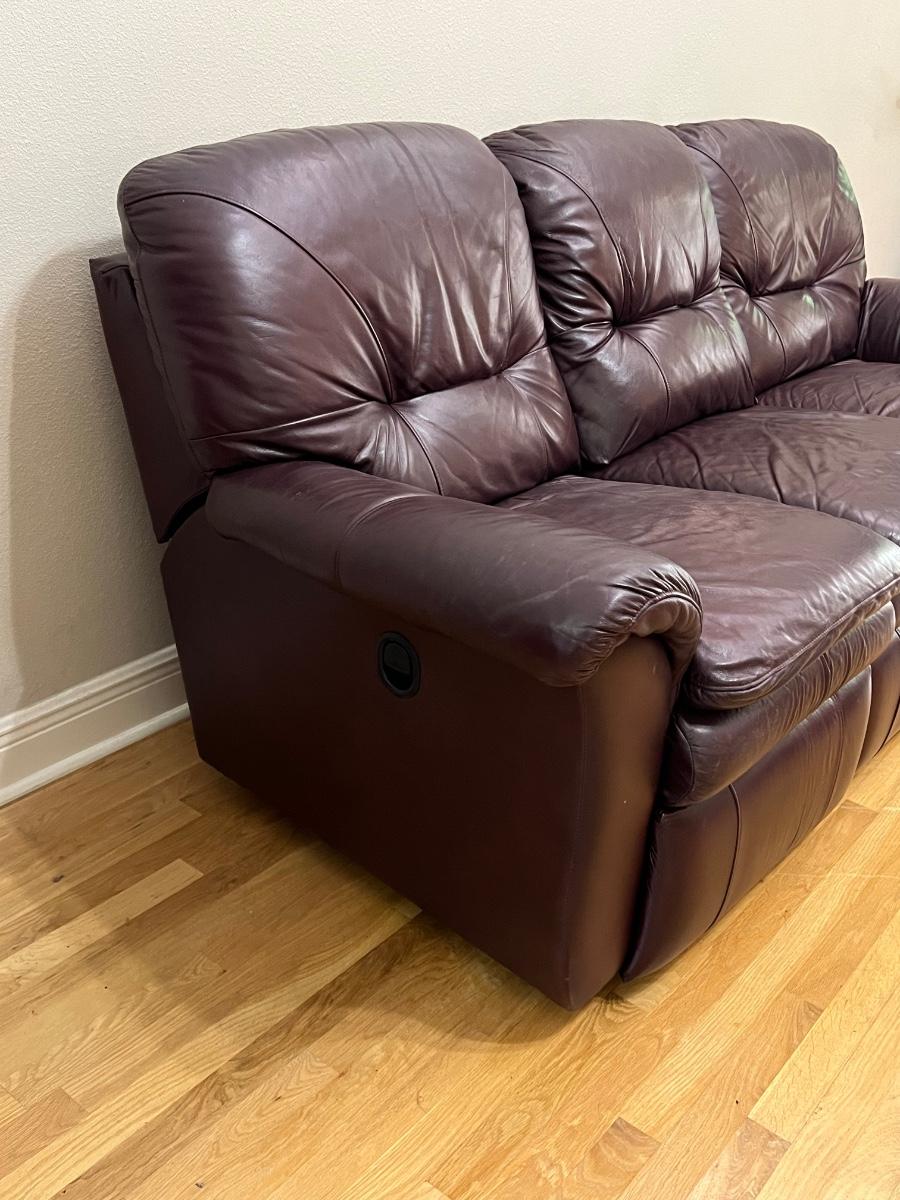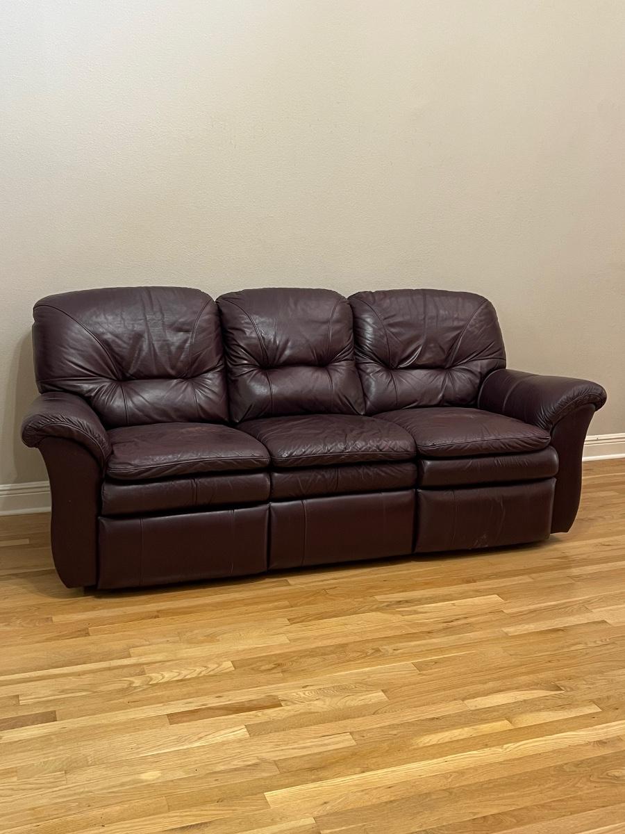 Deep Burgandy in color ~ Has normal wear from use, see photos ~ 40” H x 88” W x 36” D