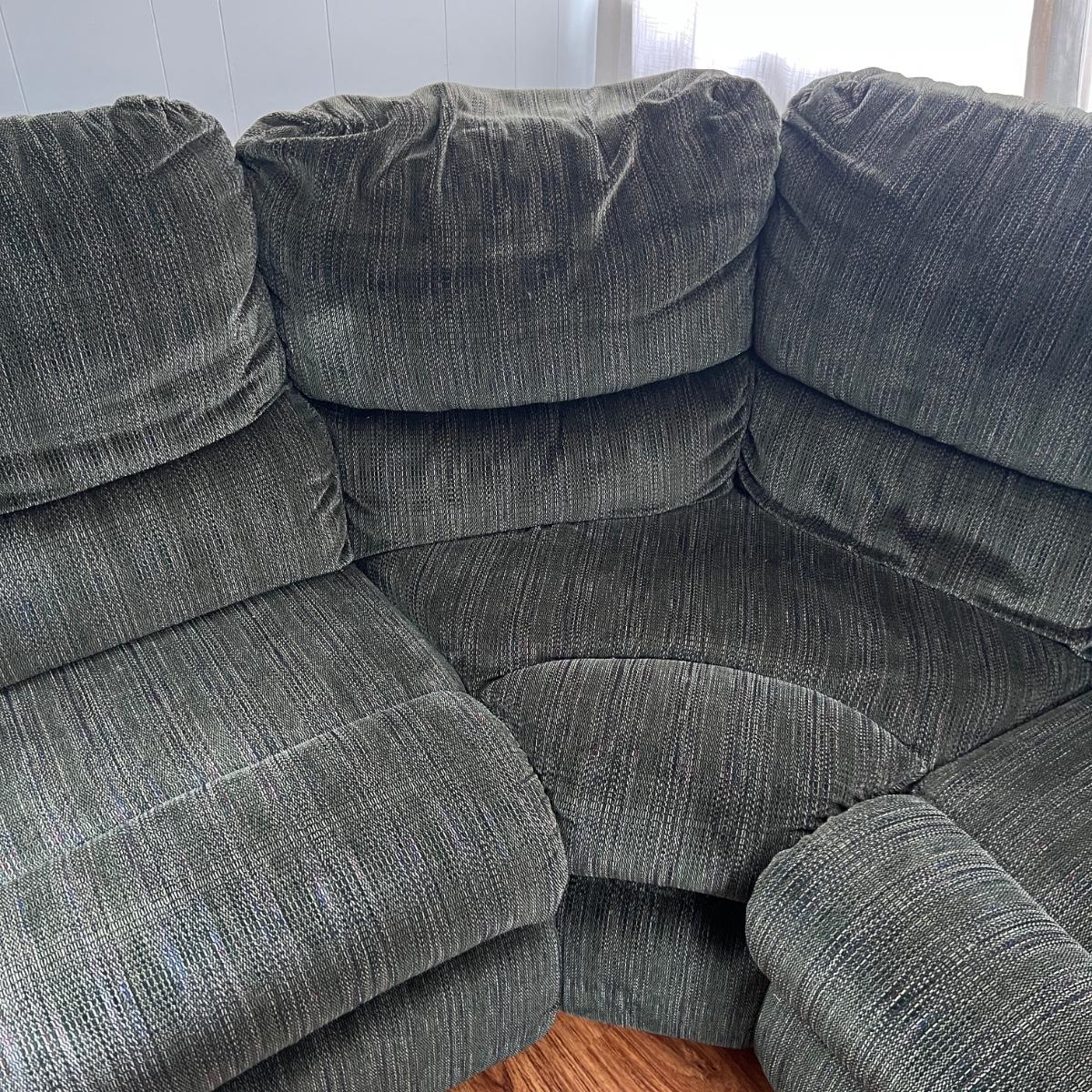Sectional L-Shape approximately 96.0"w x 120.0"d x 37.0"h. In good used condition. Some small spots as shown in pics.