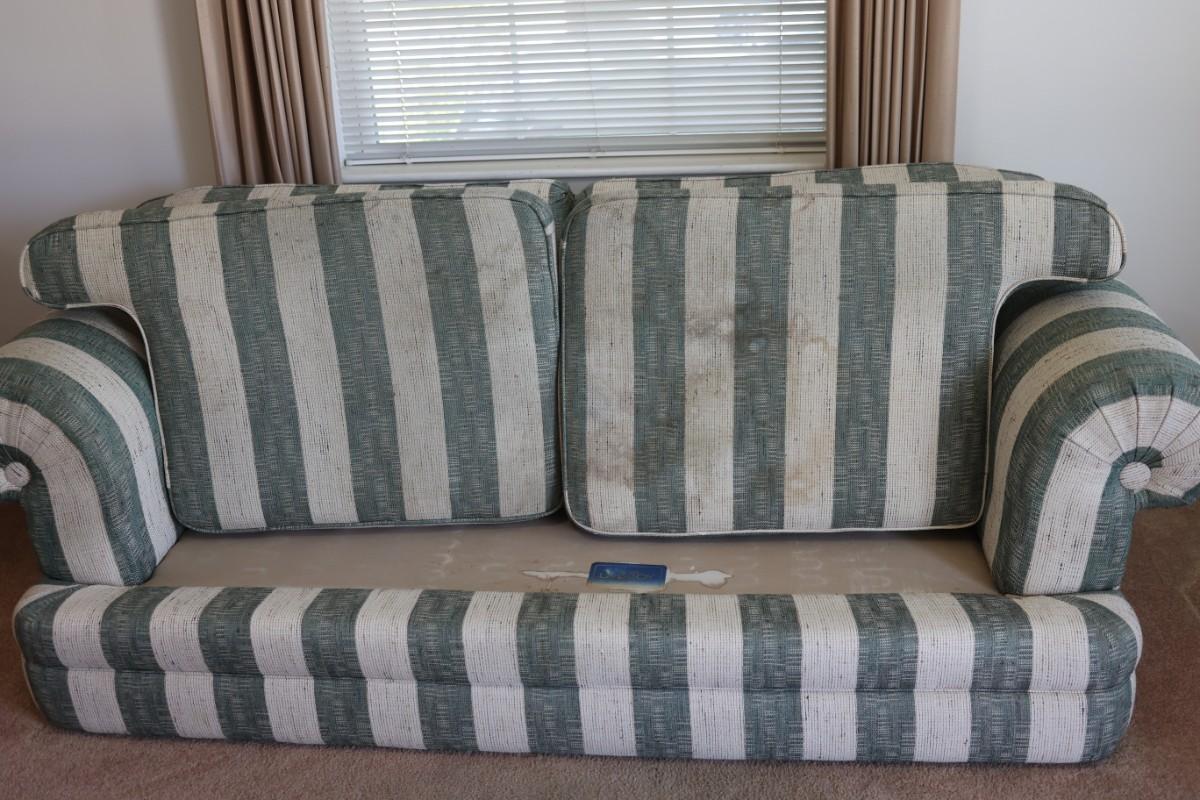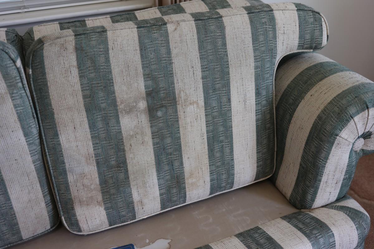 The seat cushions have zippers and can be removed and washed. The seat cushions covers and underneath the cushions have marks, see pictures.