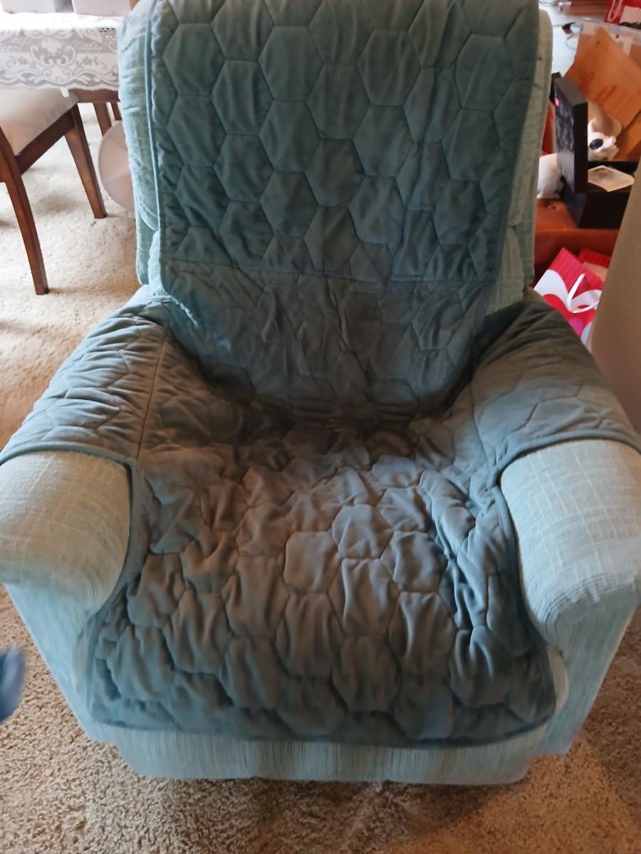 Relax in comfort with this classic La-Z-Boy recliner in a soft teal upholstery. Features plush padding, wide arms, and a manual wood lever for smooth reclining. Perfect for reading, TV time, or an afternoon nap. Clean, well-cared for, and built to last.
