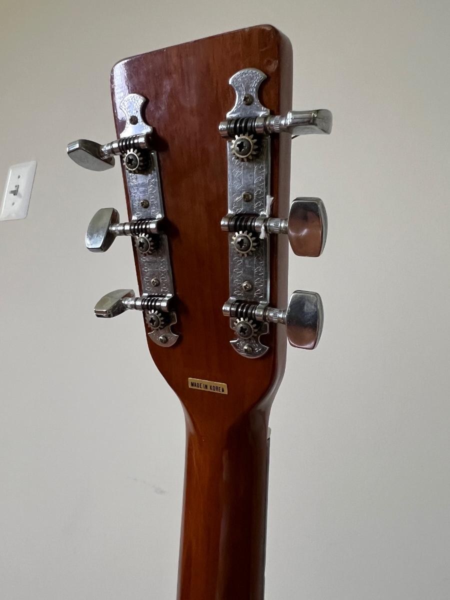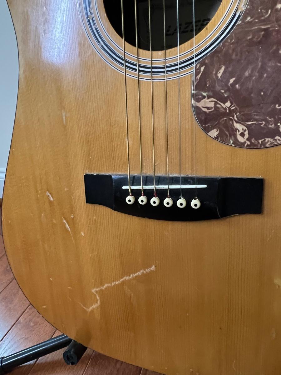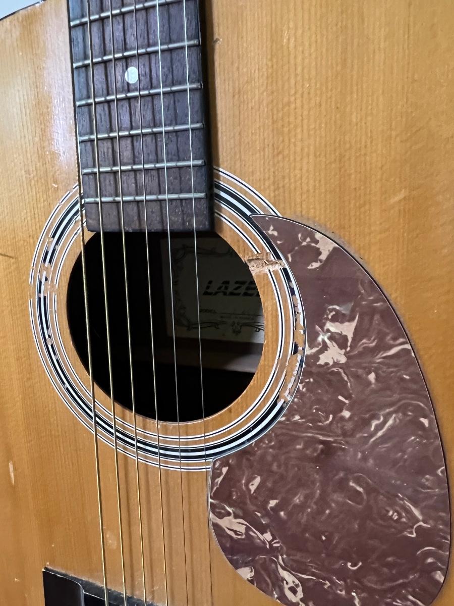 Acoustic 6 string guitar with stand. Has some scratches as shown in the pictures.