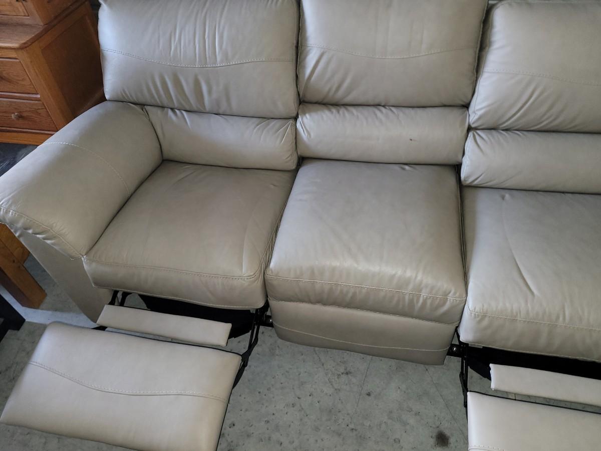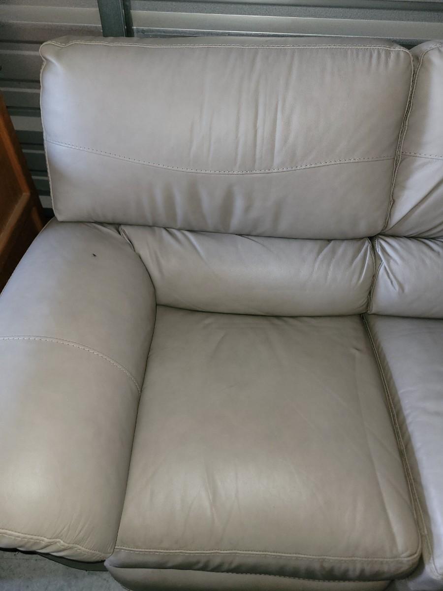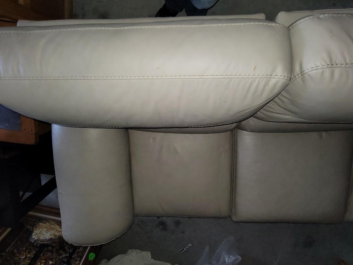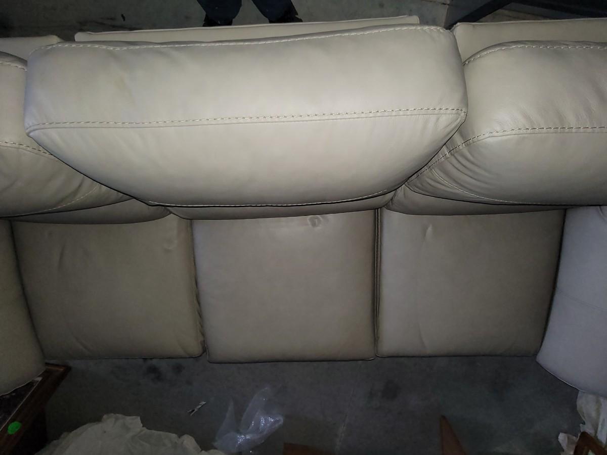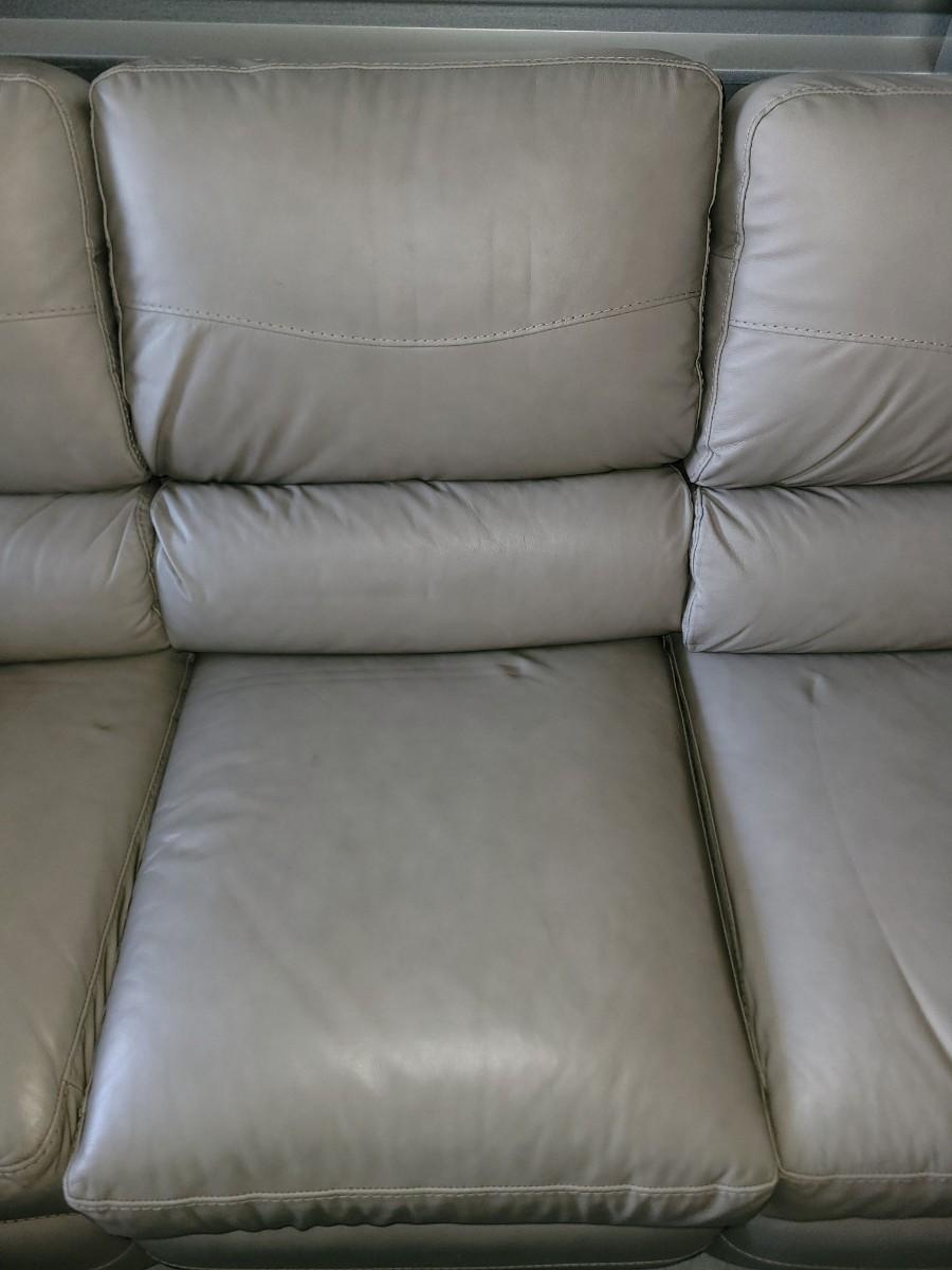 About 88" wide amd a seat height of 19". It had some cardboard boxes sitting on it and those are the seat marks. Looks almost new and the leather seems to be perfect.