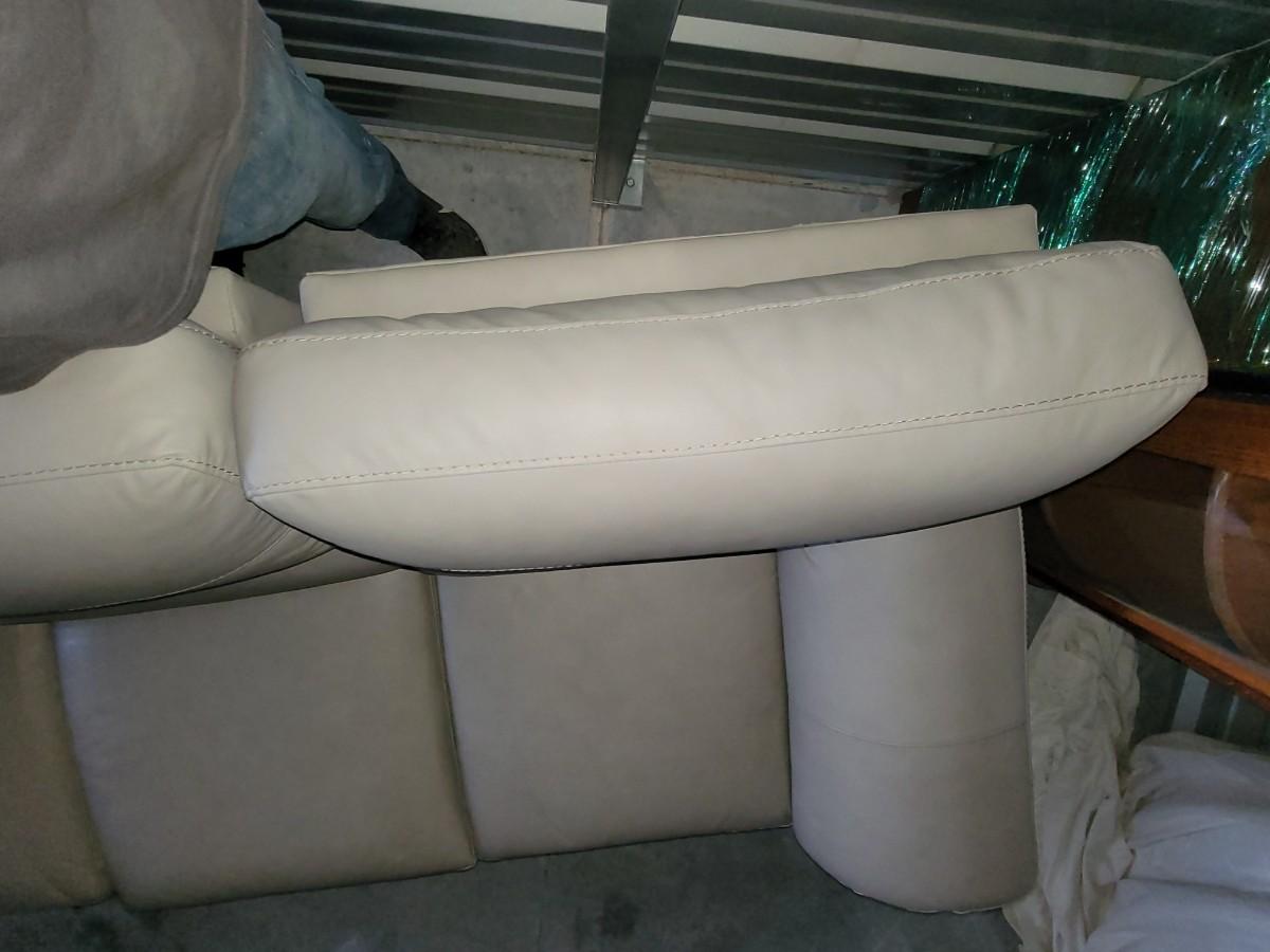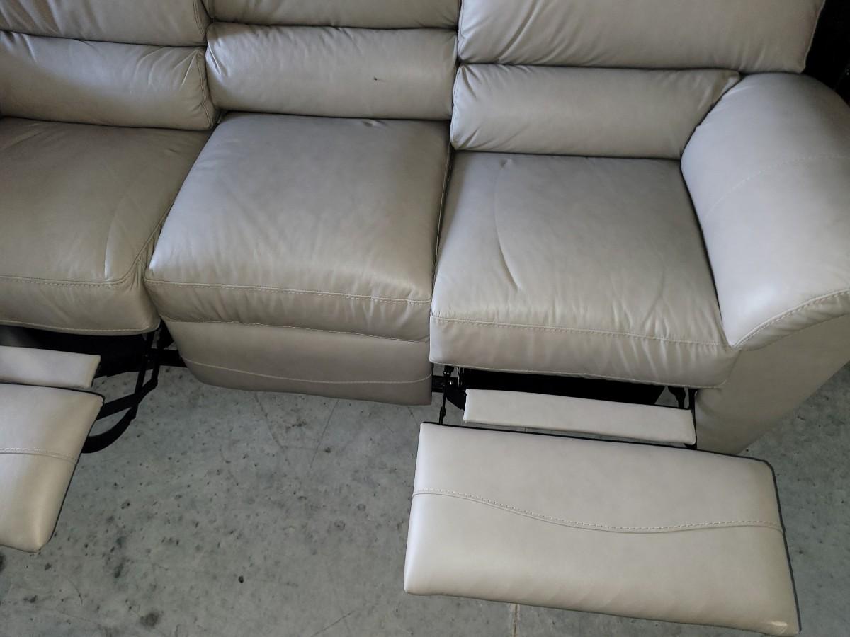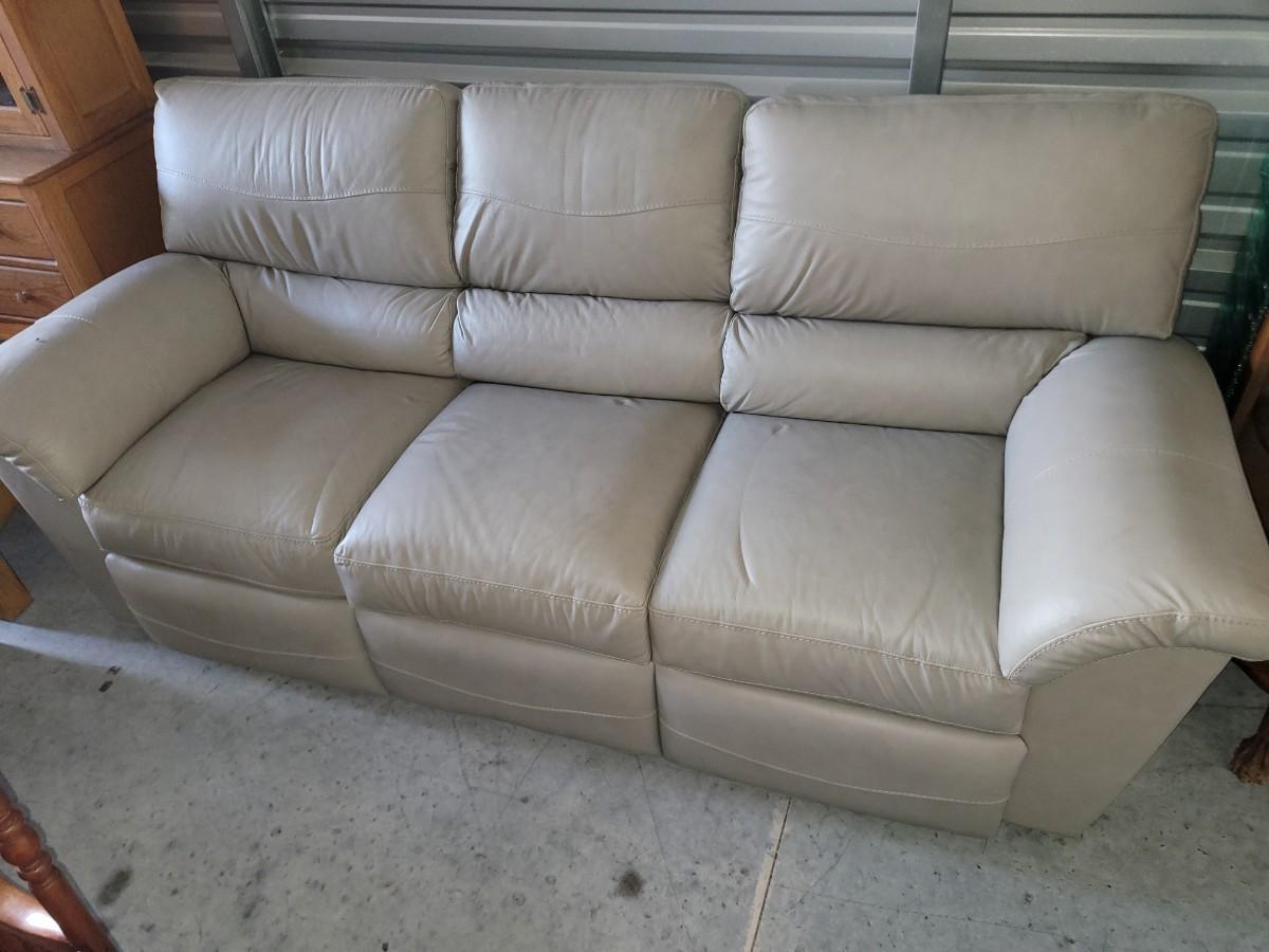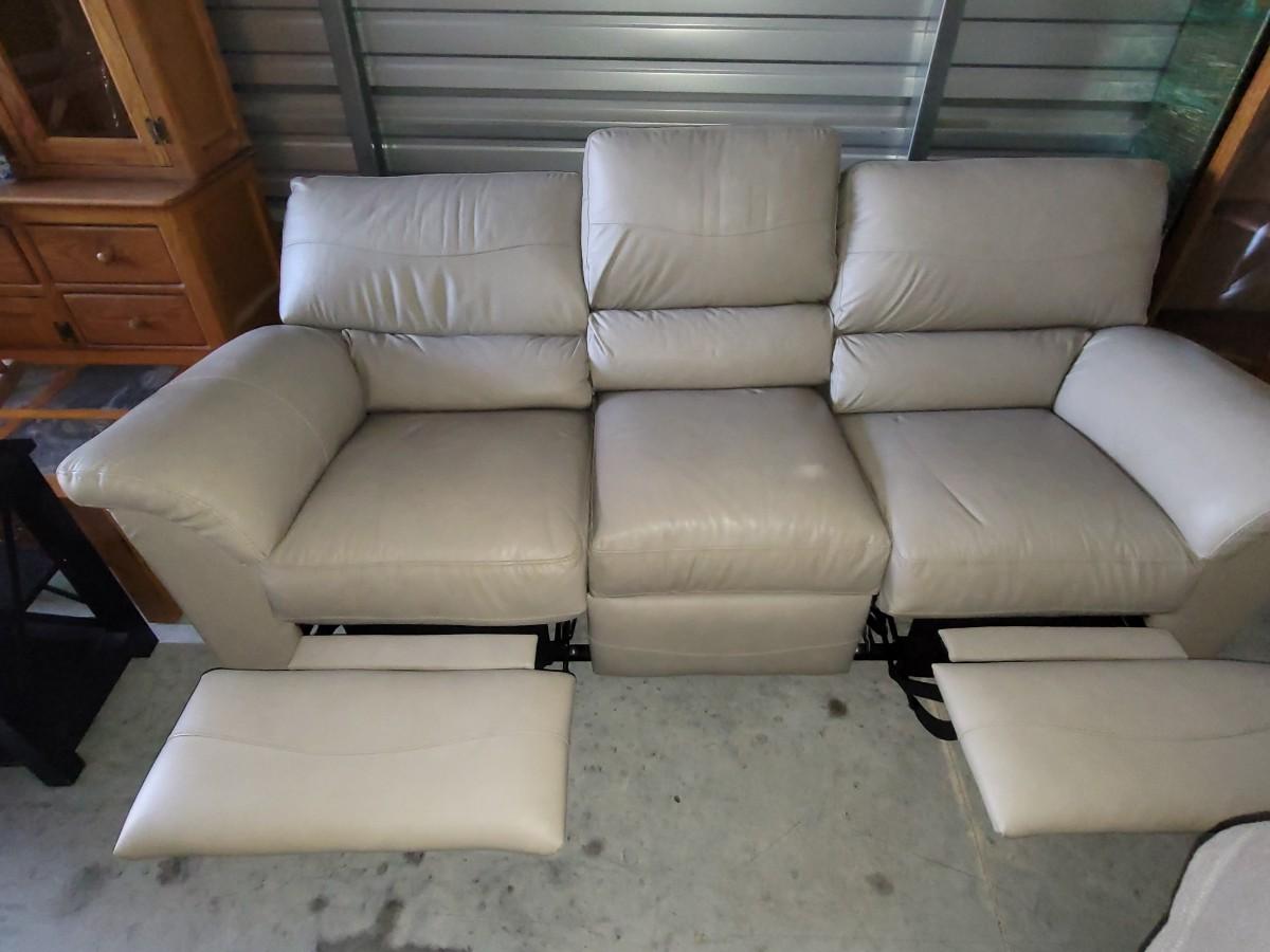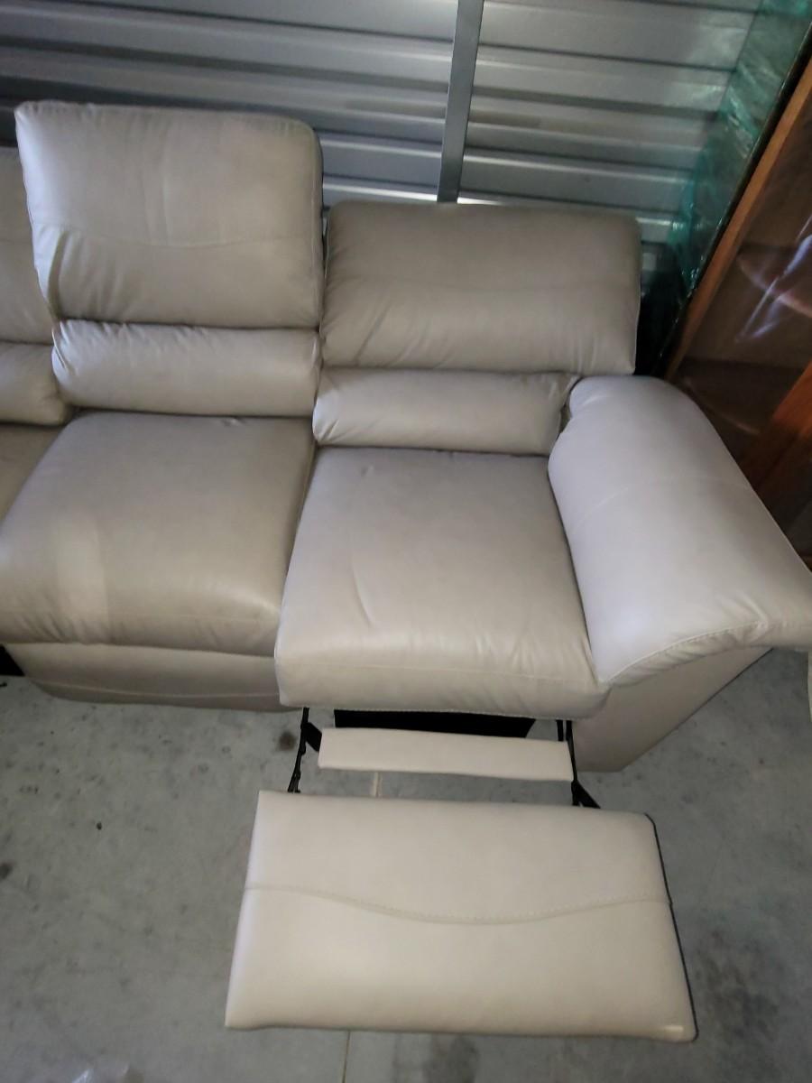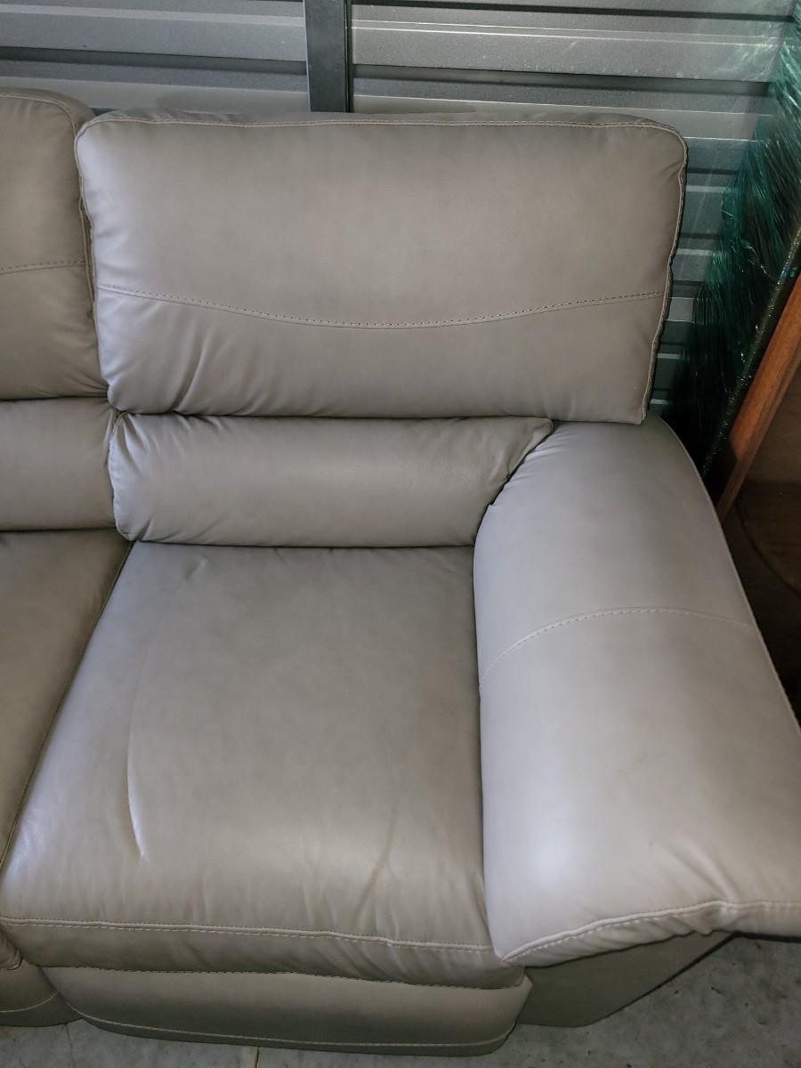 About 88" wide amd a seat height of 19". It had some cardboard boxes sitting on it and those are the seat marks. Looks almost new and the leather seems to be perfect.